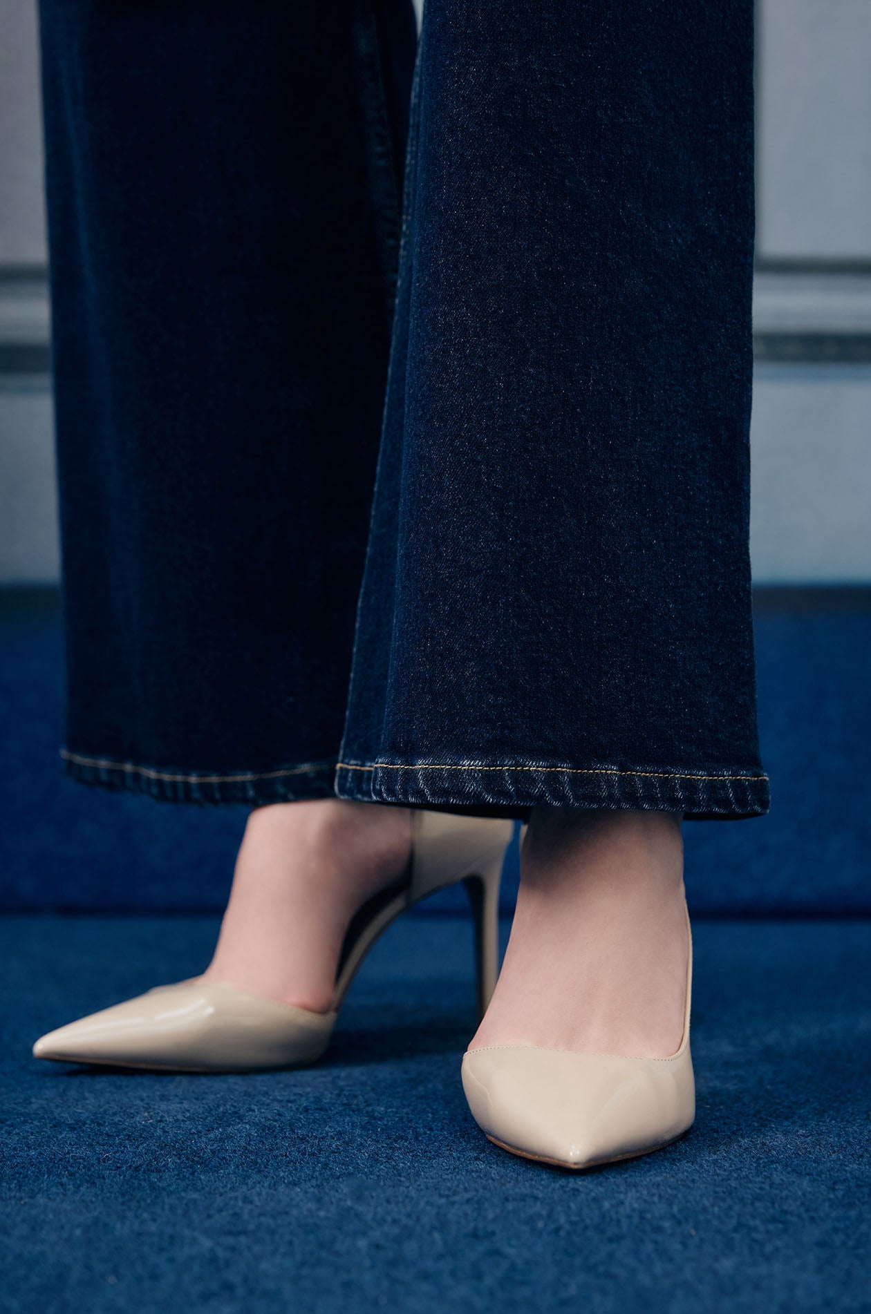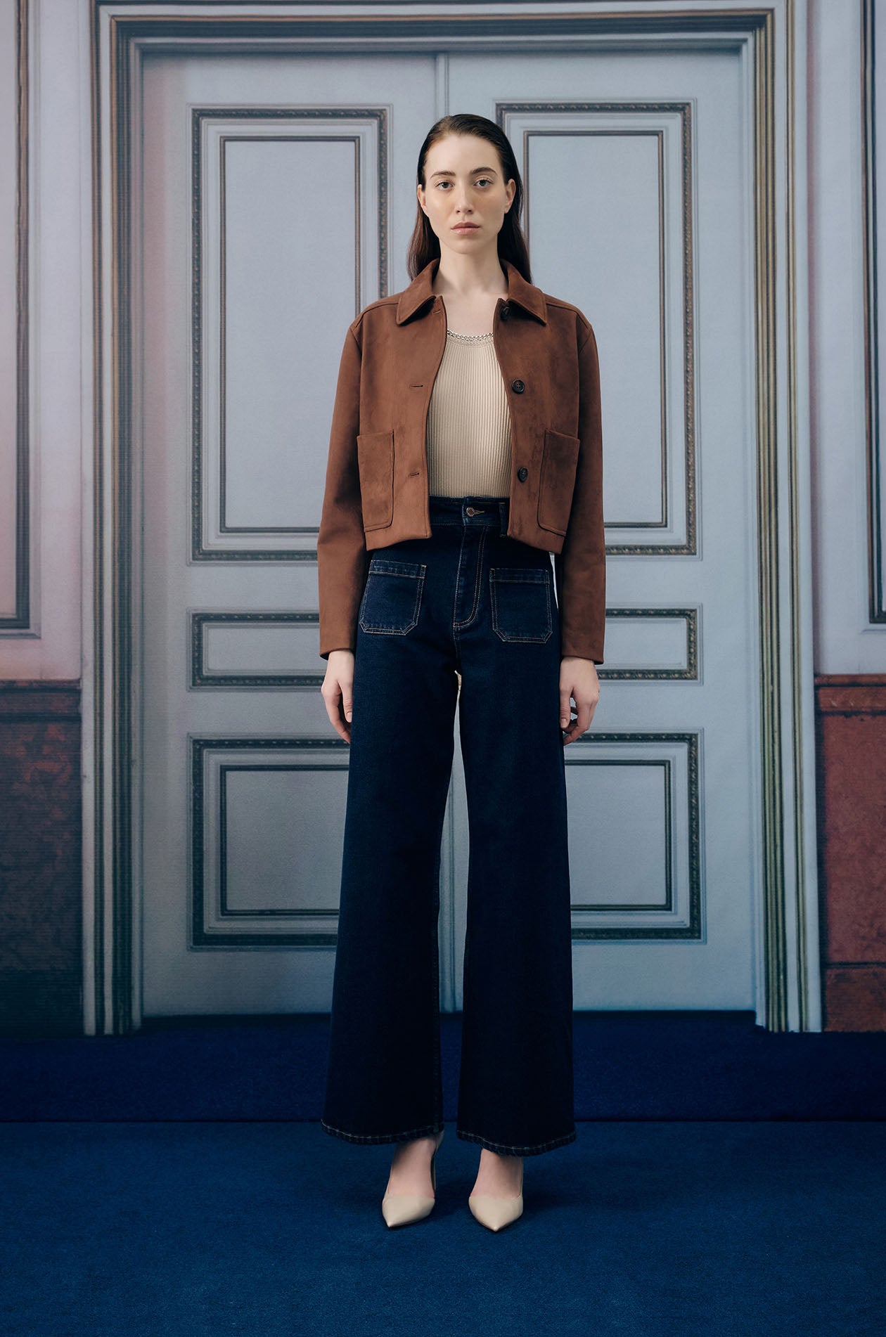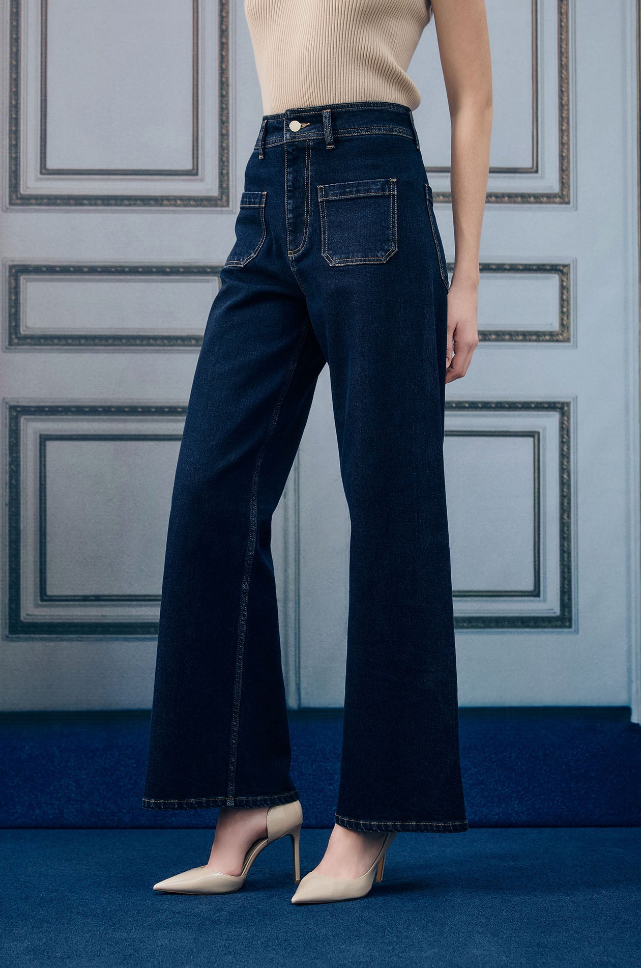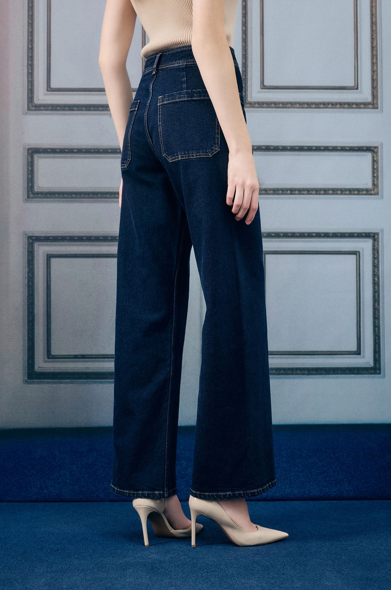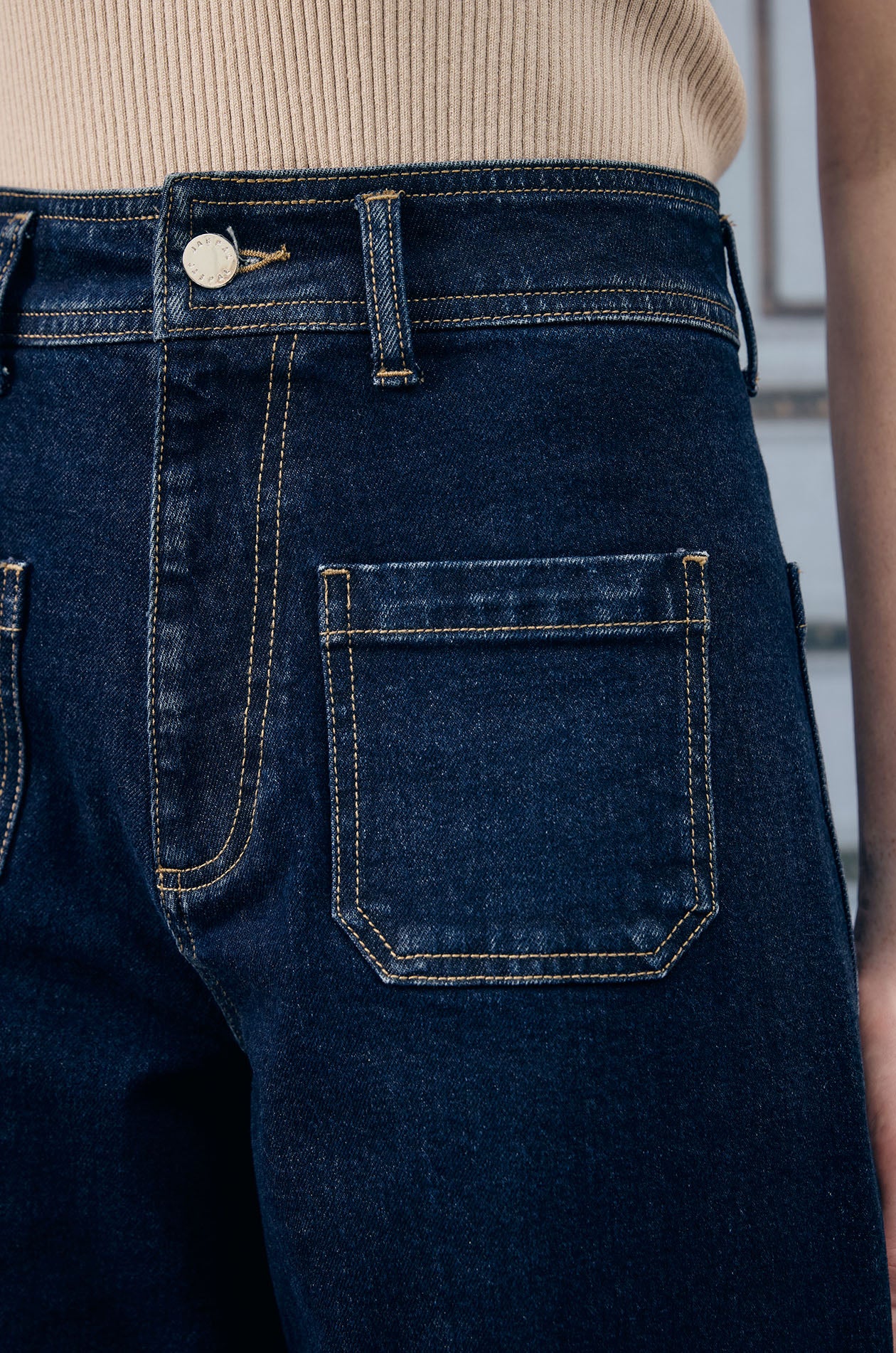 High-rise jeans in denim. Straight legs with vintage-style pockets. Front button and zip closure. Available in indigo.