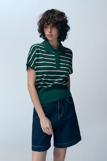 Striped Knit Polo Shirt