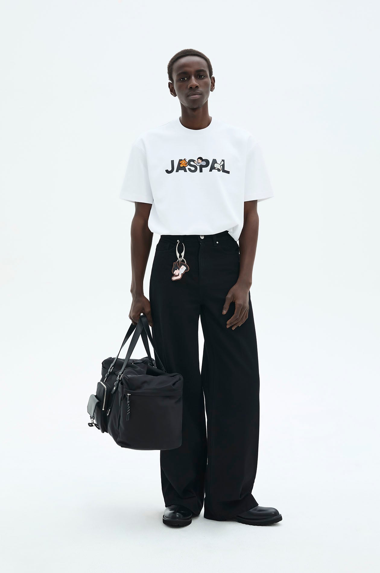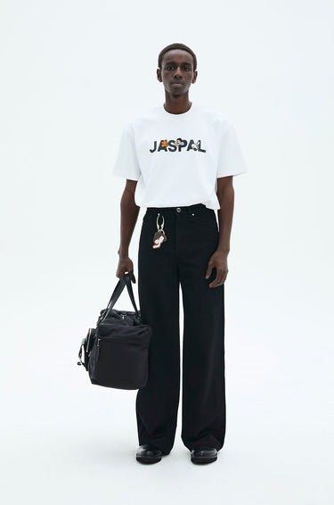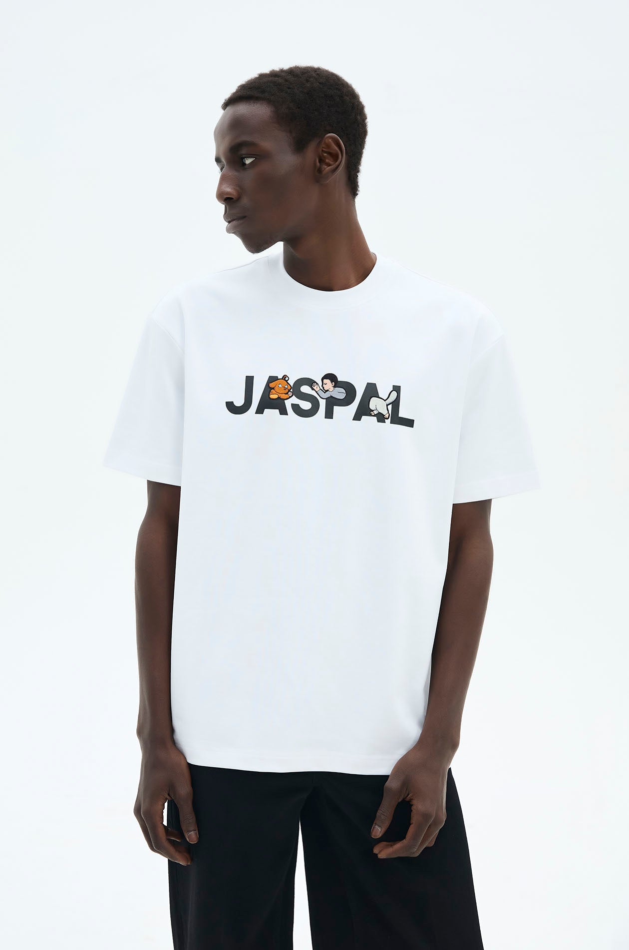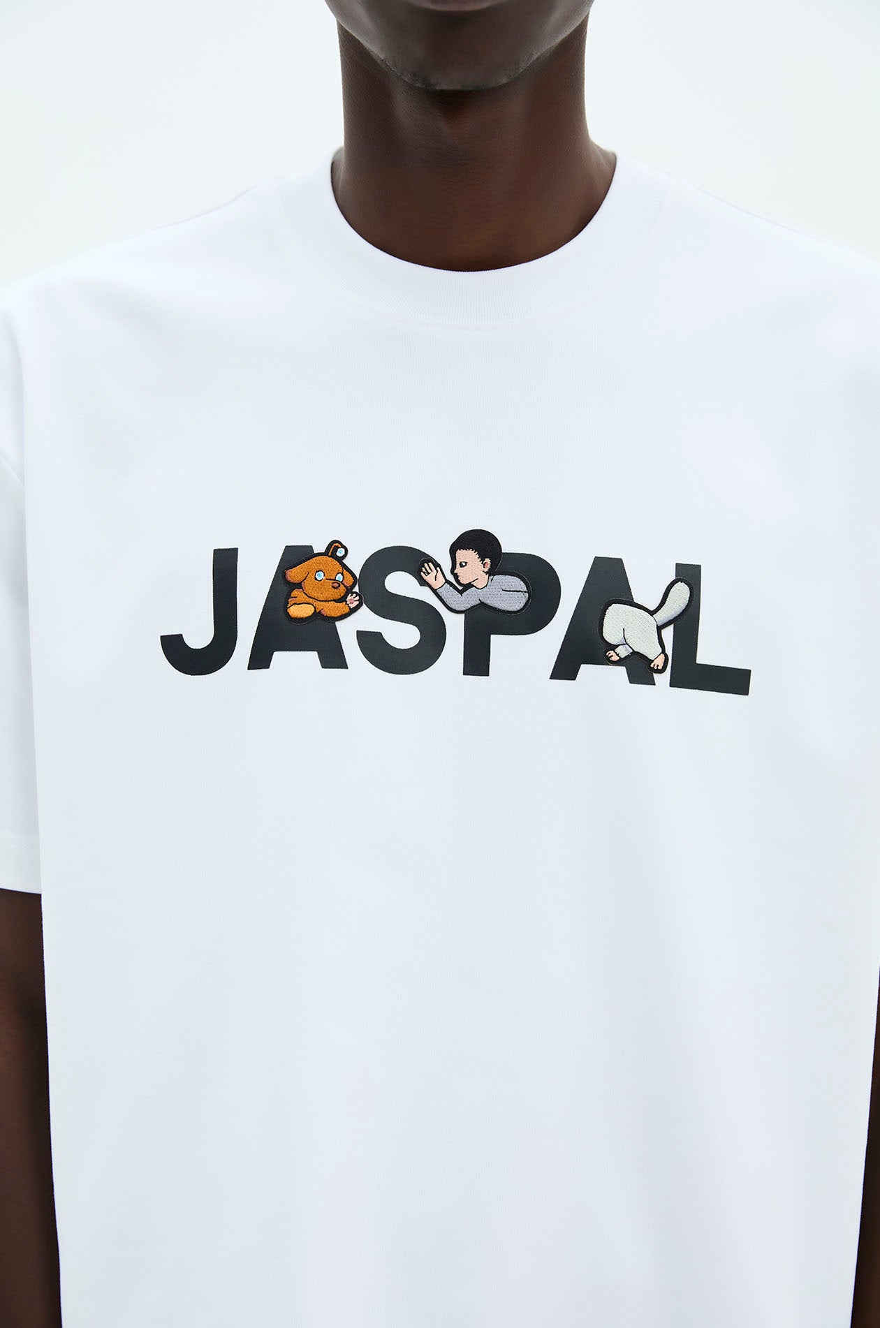 Gongkan x Jaspal | Short-sleeved T-shirt in cotton-blend jersey. Showcasing Jaspal logo with Gongkan’s signature artwork at the front. Relaxed fit wth round neckline. Available in white.