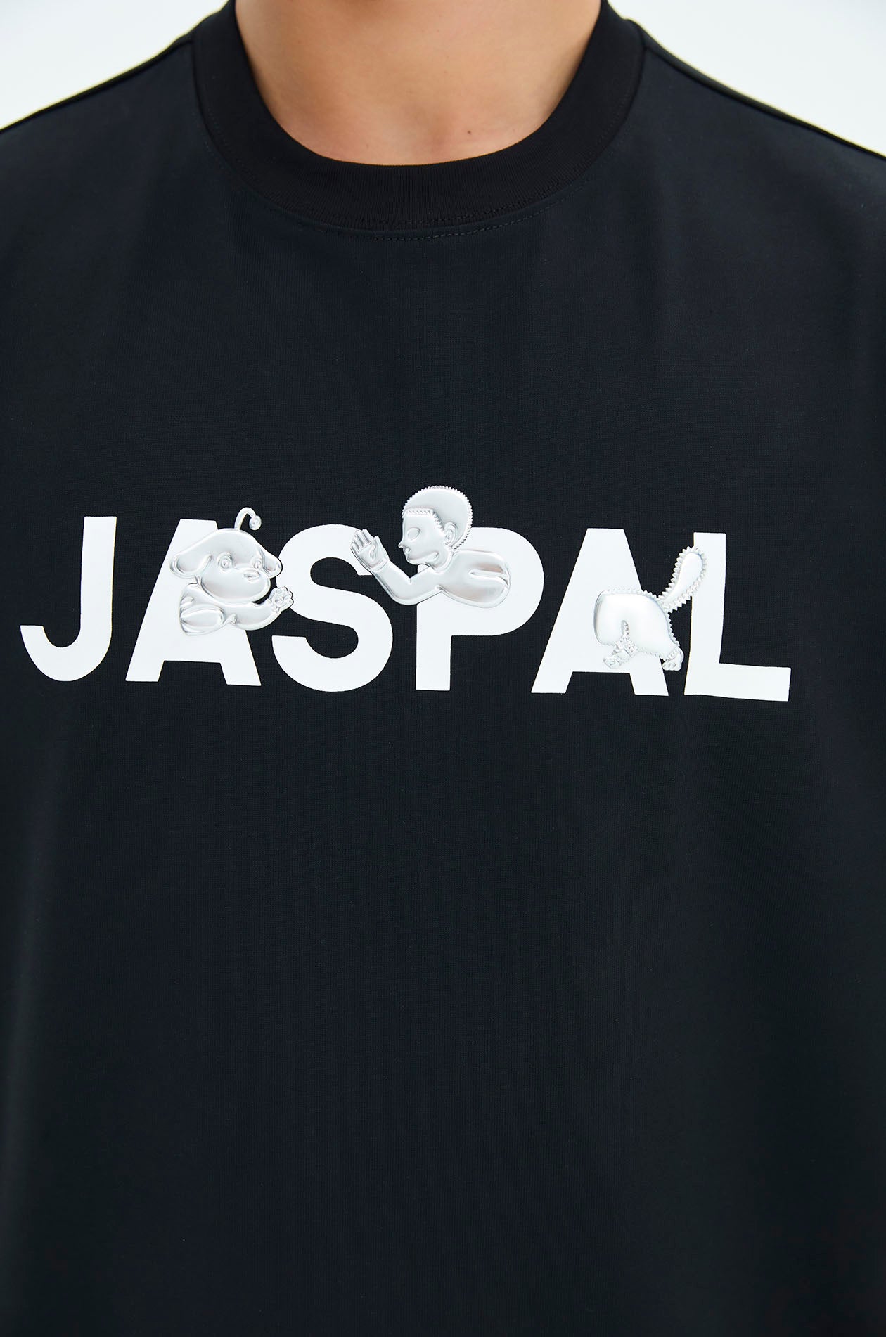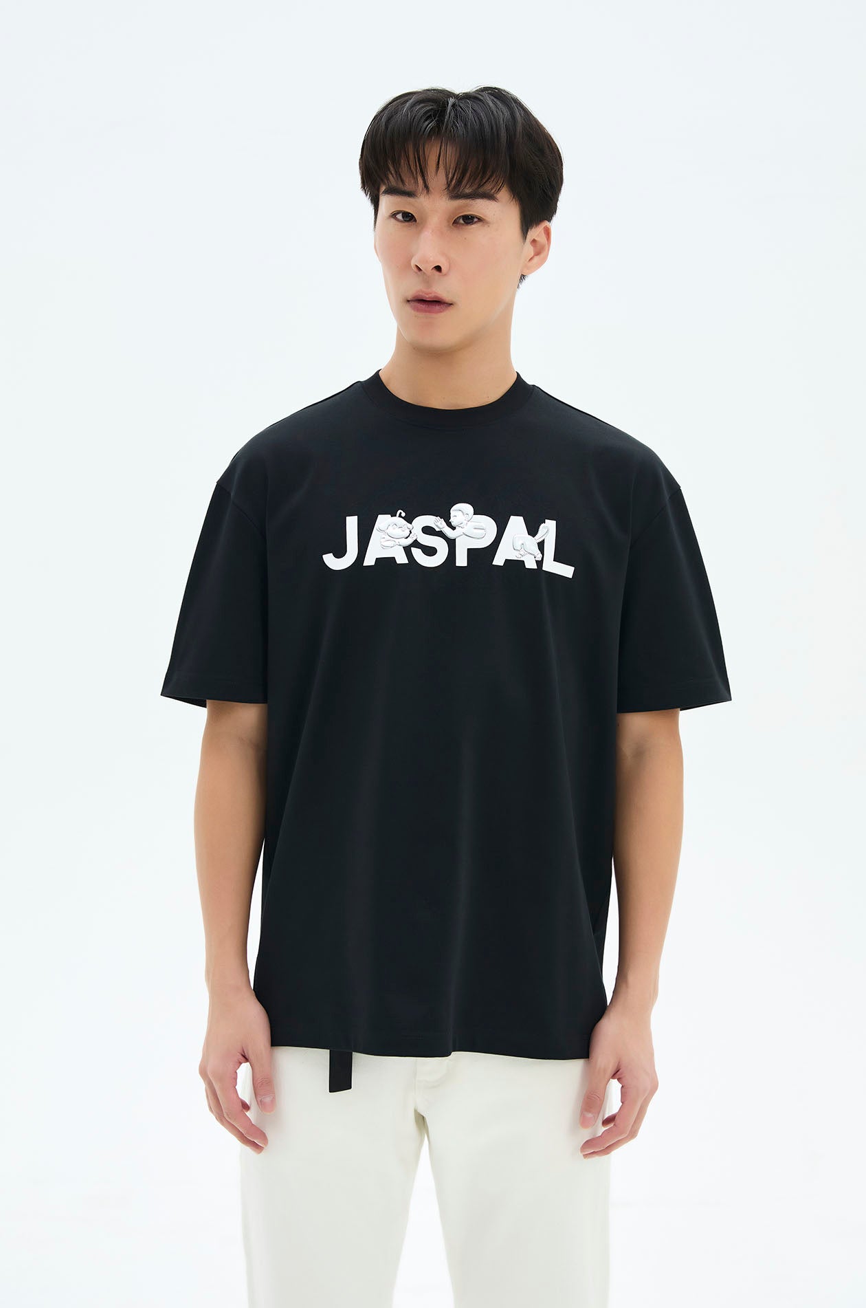 Gongkan x Jaspal | Short-sleeved T-shirt in cotton-blend jersey. Showcasing Jaspal logo with Gongkan’s signature artwork at the front. Relaxed fit with round neckline. Available in black.