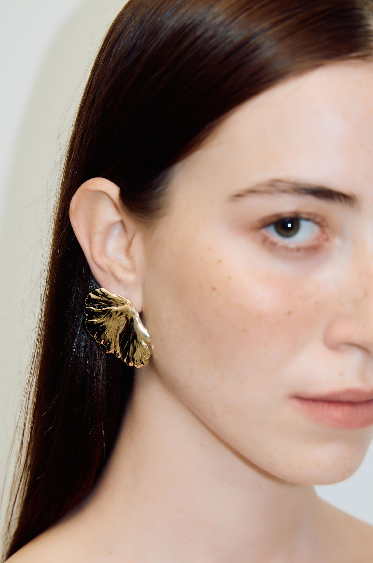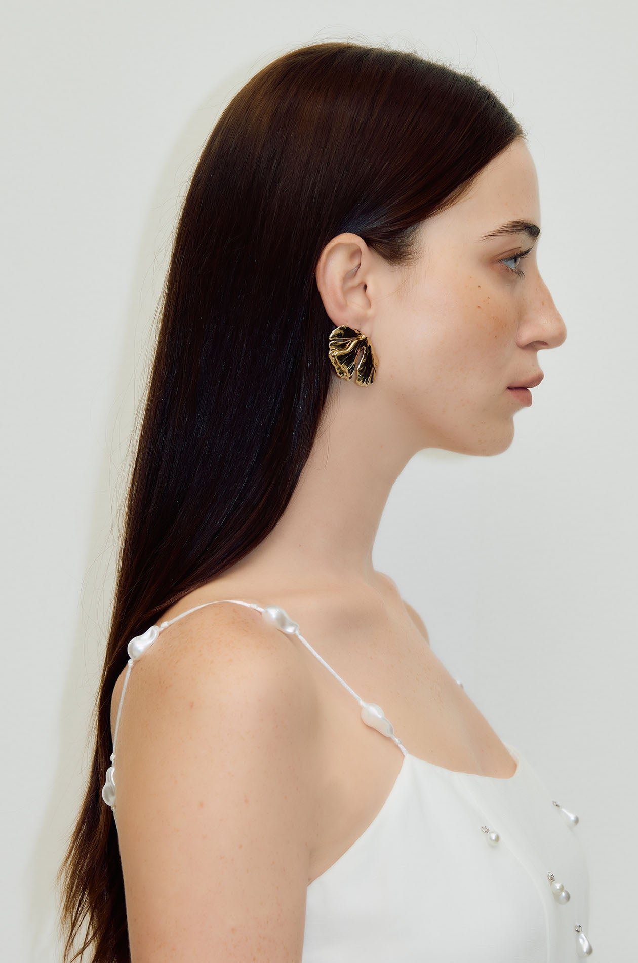 Jaspal Edit x Pacharee | Stud earrings crafted in an organic coral-inspired shape with a sculptural metal setting. Designed to merges coastal European elegance with boho-glam softness. Available in gold.