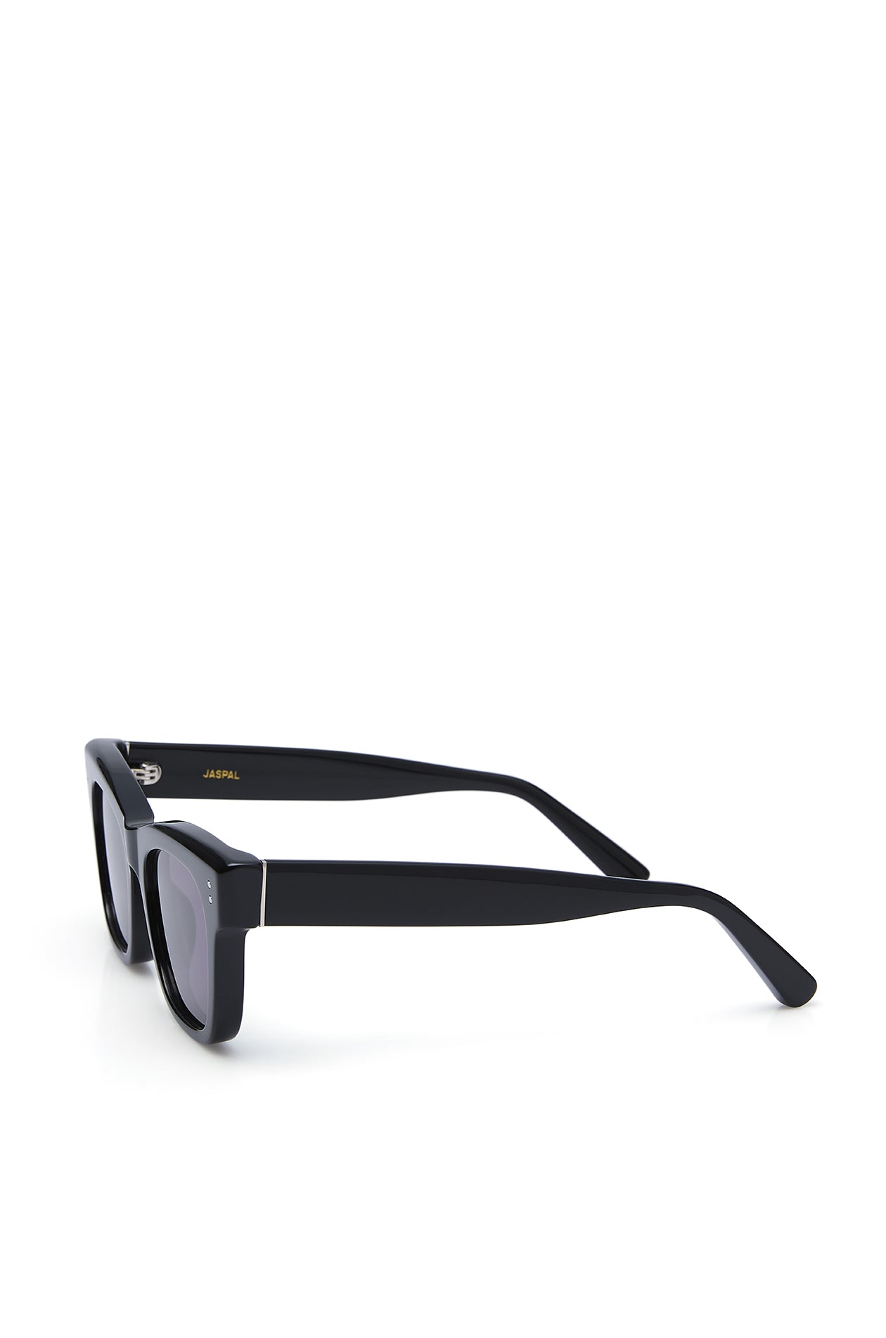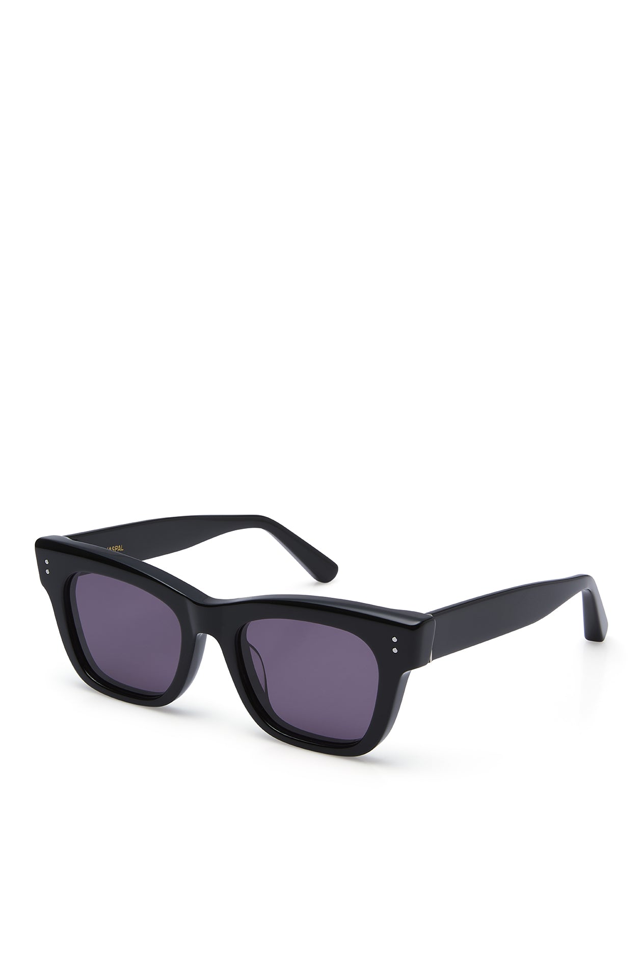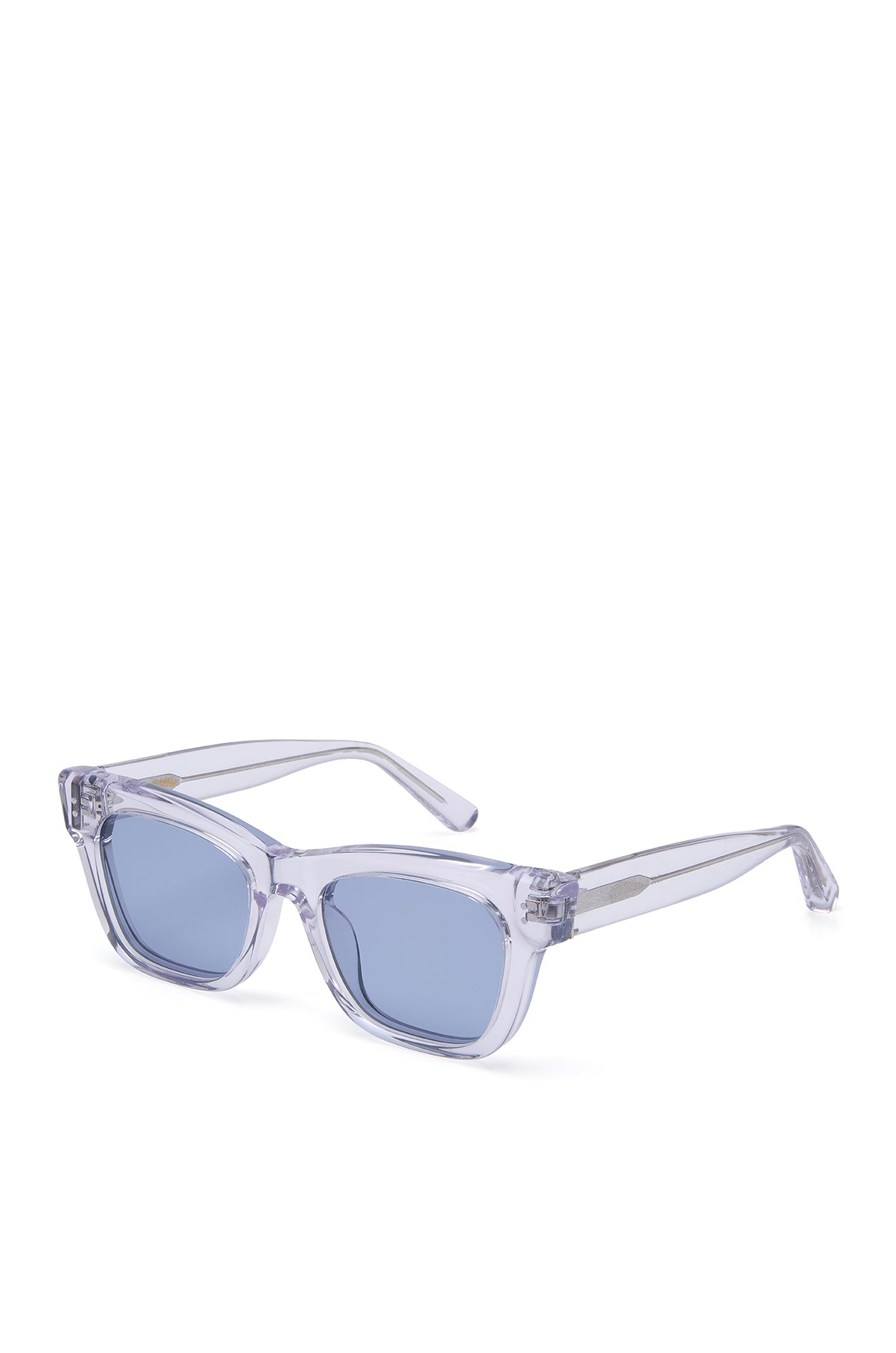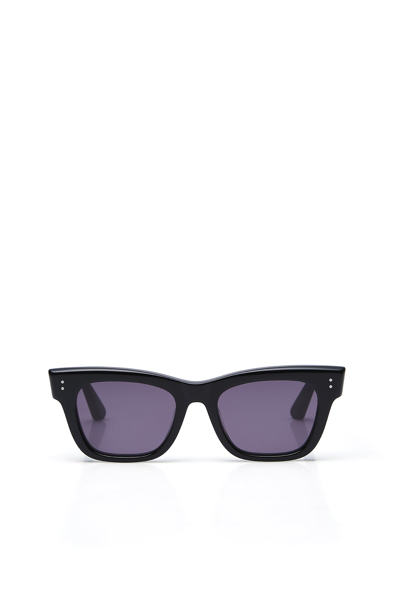 Square sunglasses in acetate frame with chunky temples. Available in black, khaki green, and clear.