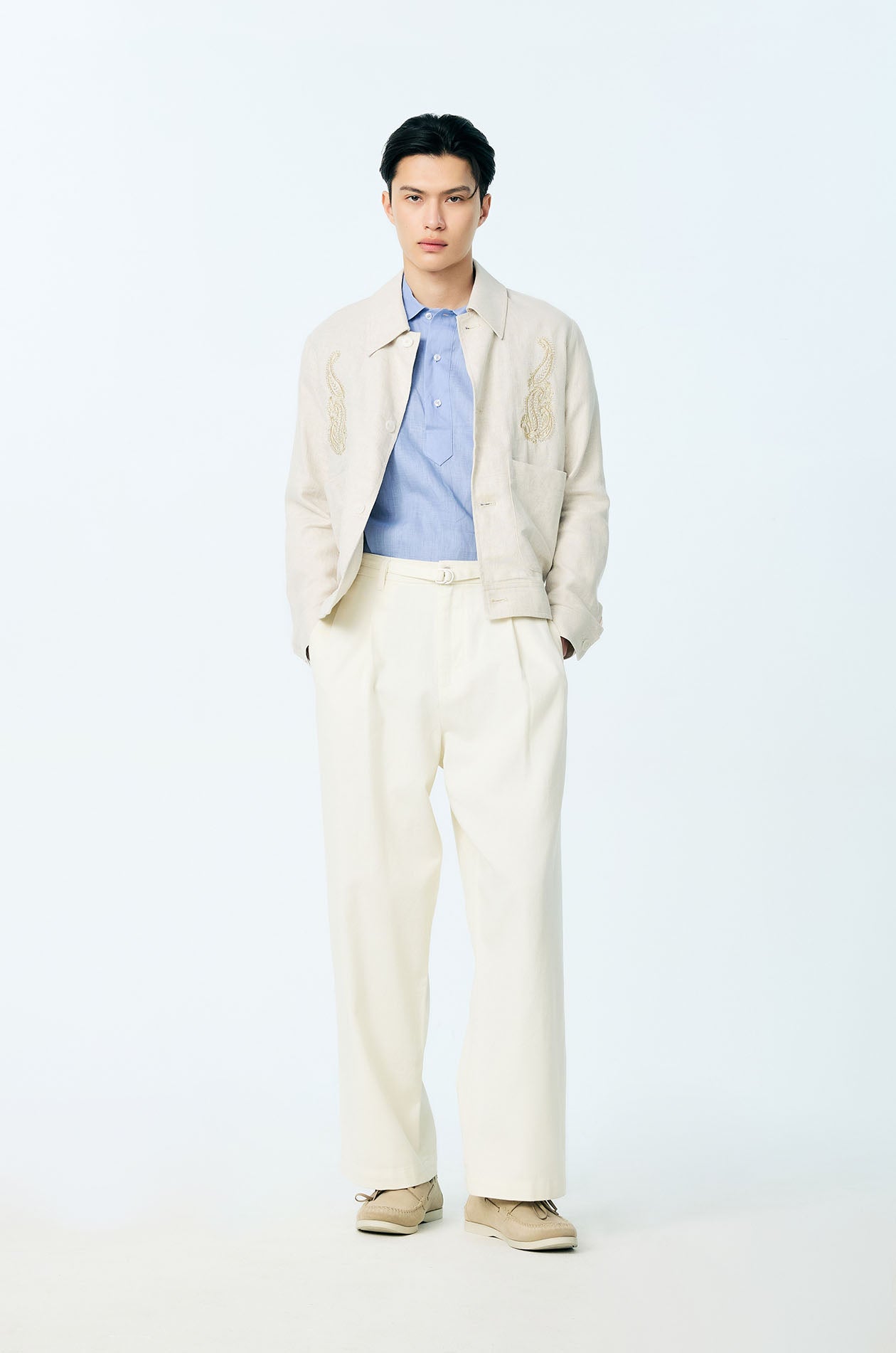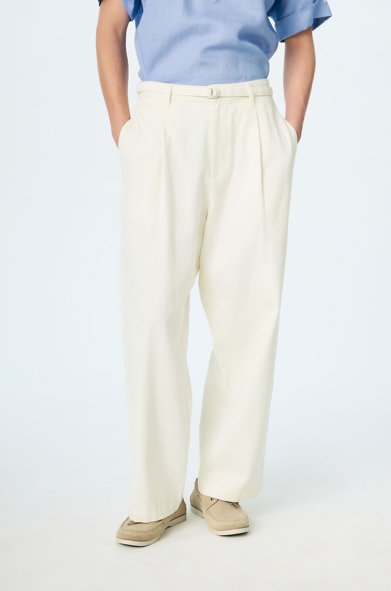 These mid-rise jeans are crafted from a cotton denim, offering a soft hand feel with a fluid, comfortable drape. Designed with ultra-wide legs, front pleats introduce volume and movement to the silhouette. Side pockets and back pockets provide functional detail, while a matching skinny belt adds a subtle vintage-inspired finish to this statement denim piece. Front button and zip closure. Available in white.