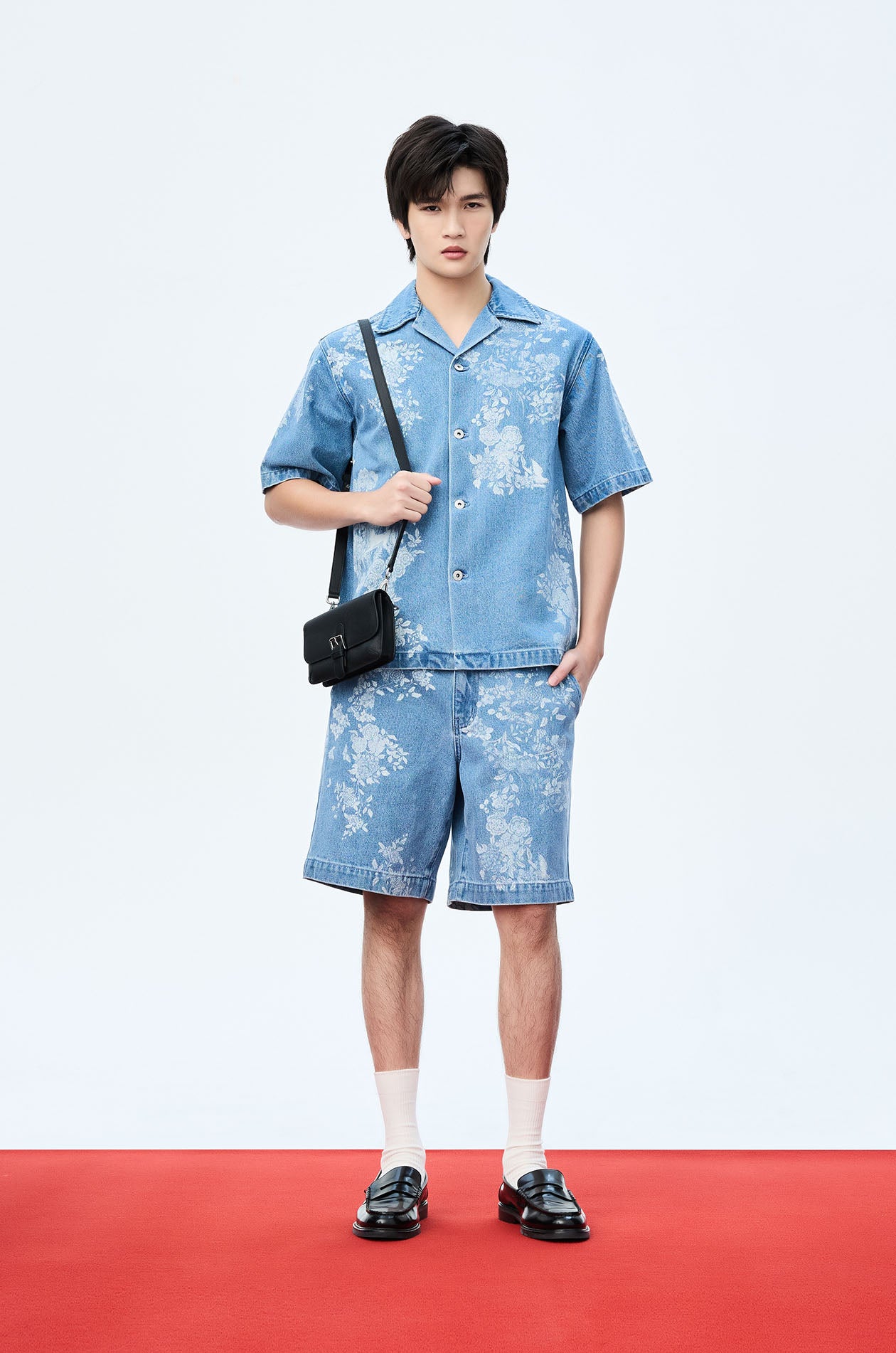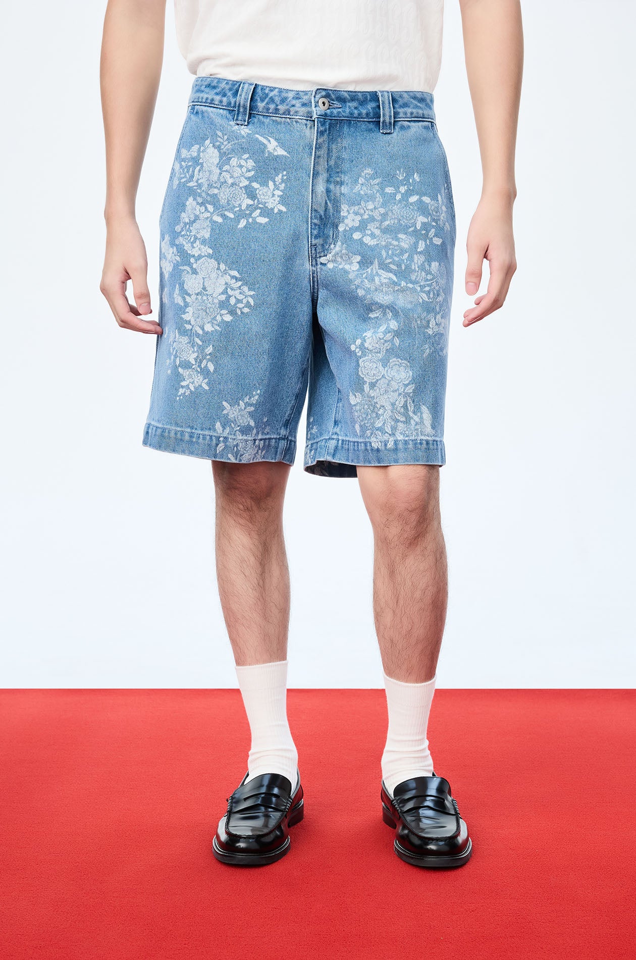 Motif Printed Denim Shorts