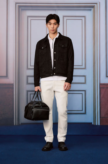 Short-sleeved polo shirt in cotton pique. Classic collar with contrast trim. Ribbed cuffs and hem. Front button closure. Available in white, navy, and dark brown.