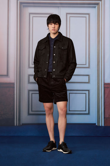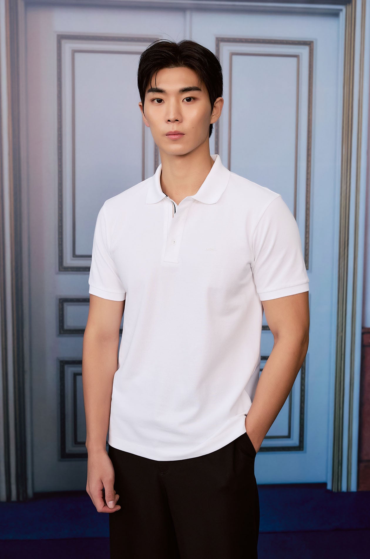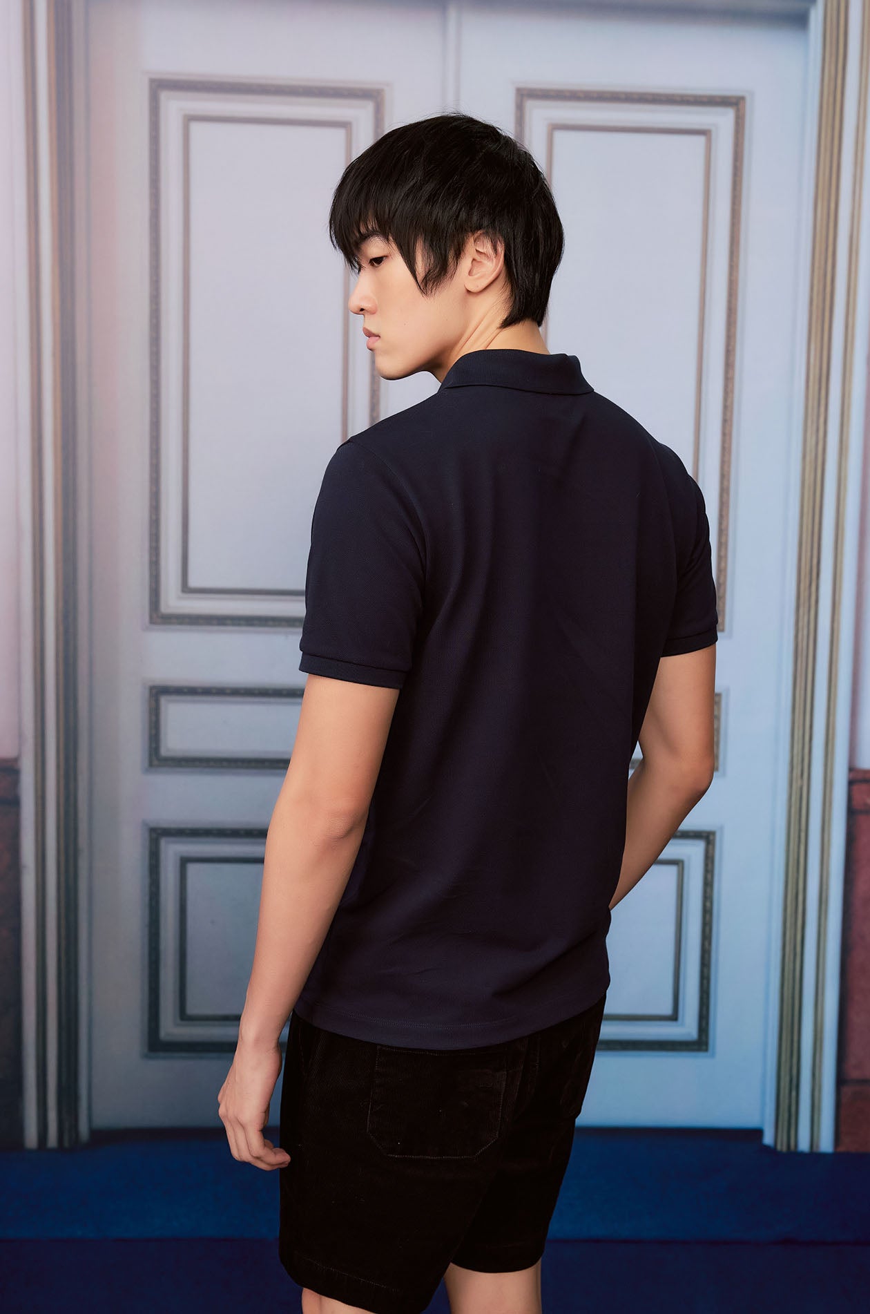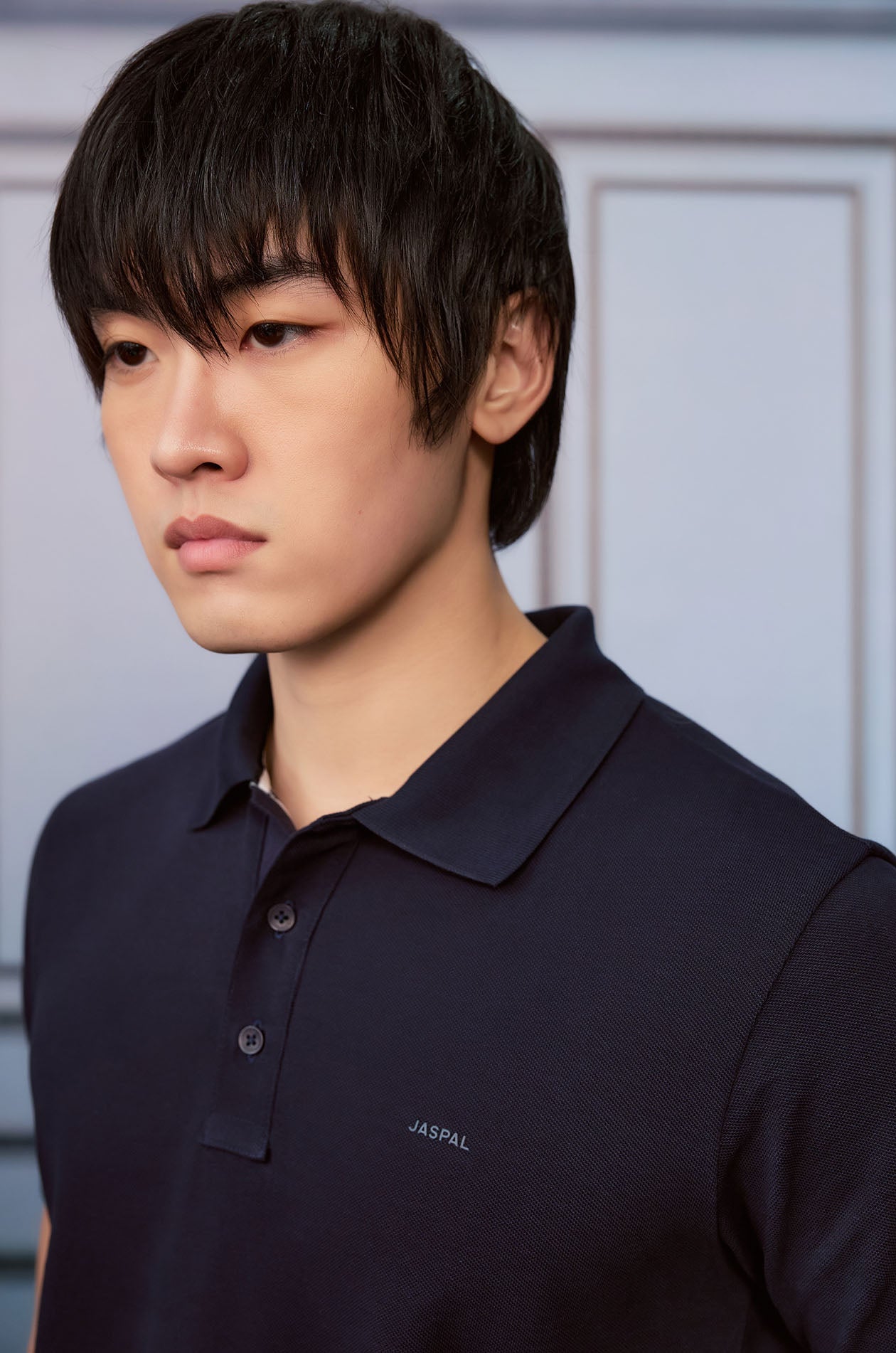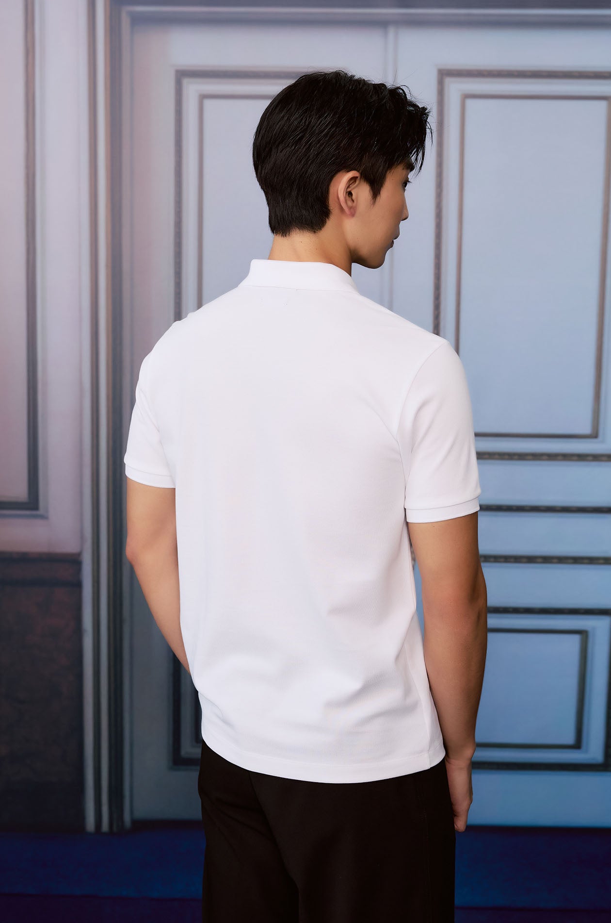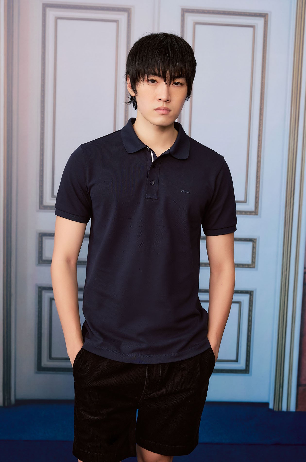 Short-sleeved polo shirt in cotton pique. Regular fit with classic collar and minimal Jaspal logo at the chest. Front button closure. Available in black, white, and navy.