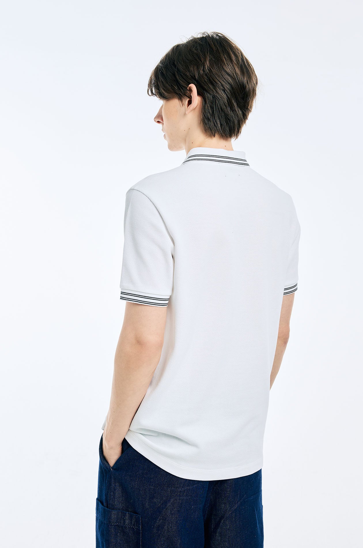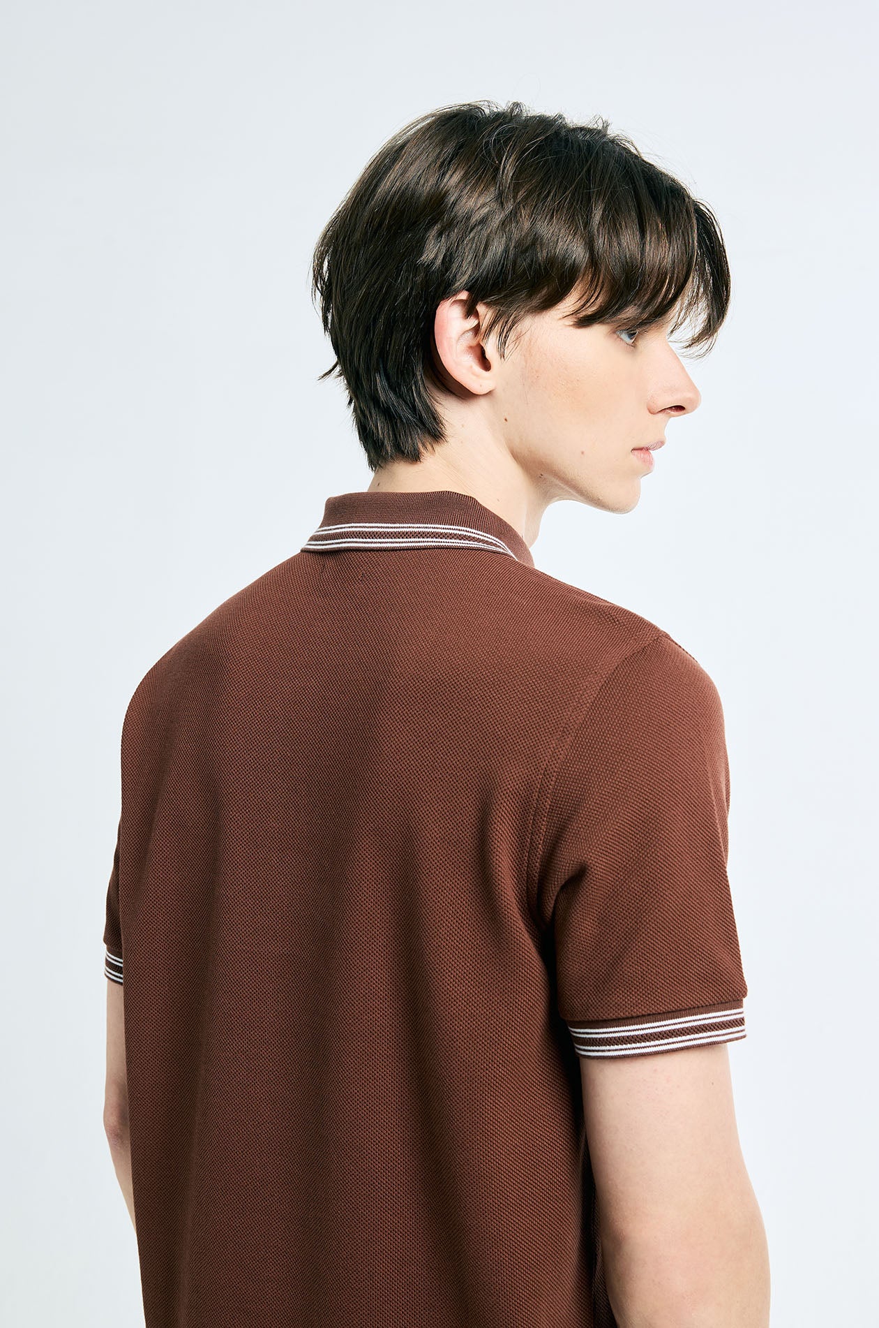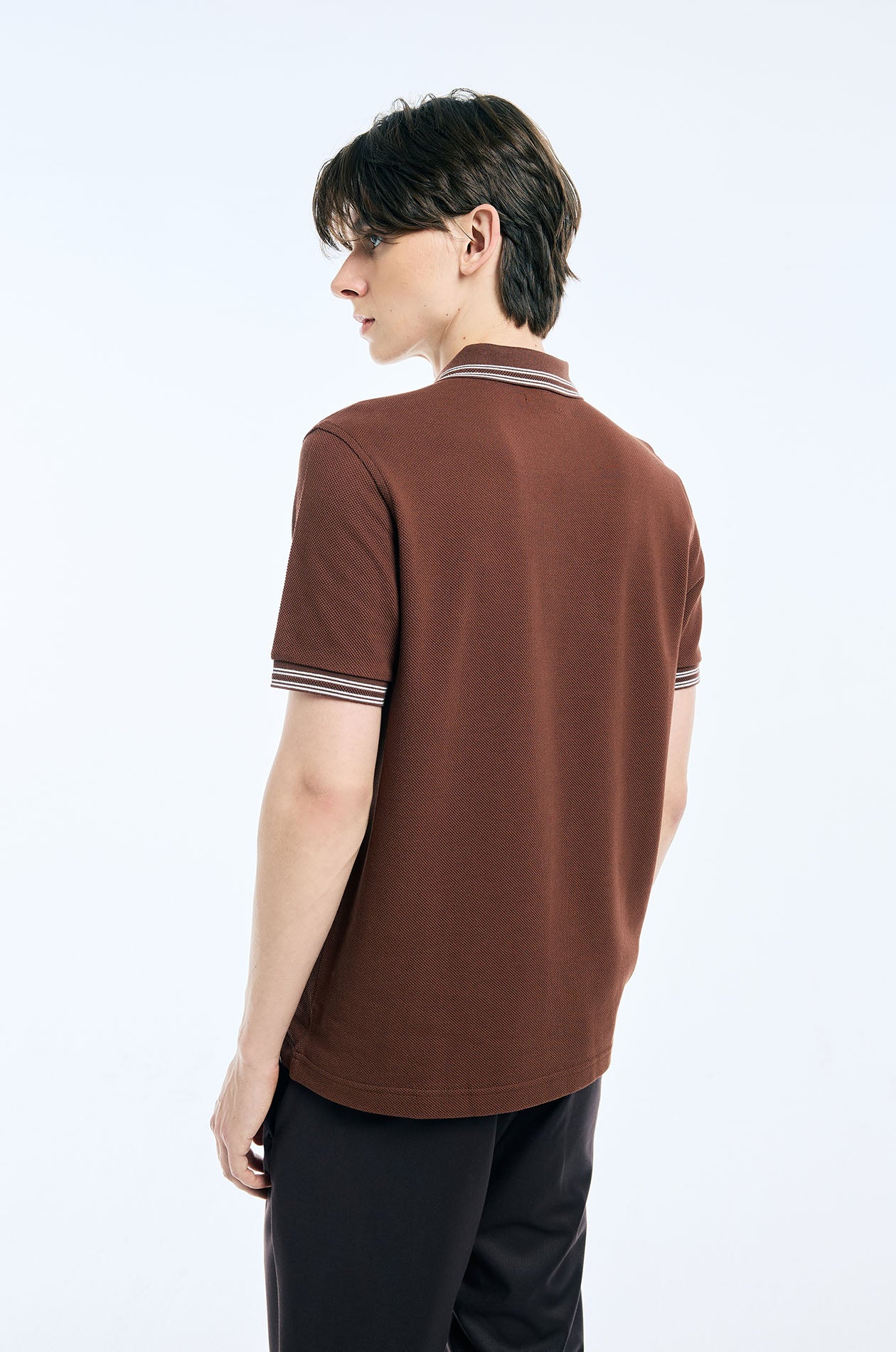 Short-sleeved polo shirt in pique fabric. Regular fit with classic collar and 3D JJ logo at the chest. Front zip closure. Available in black, white, and brown.