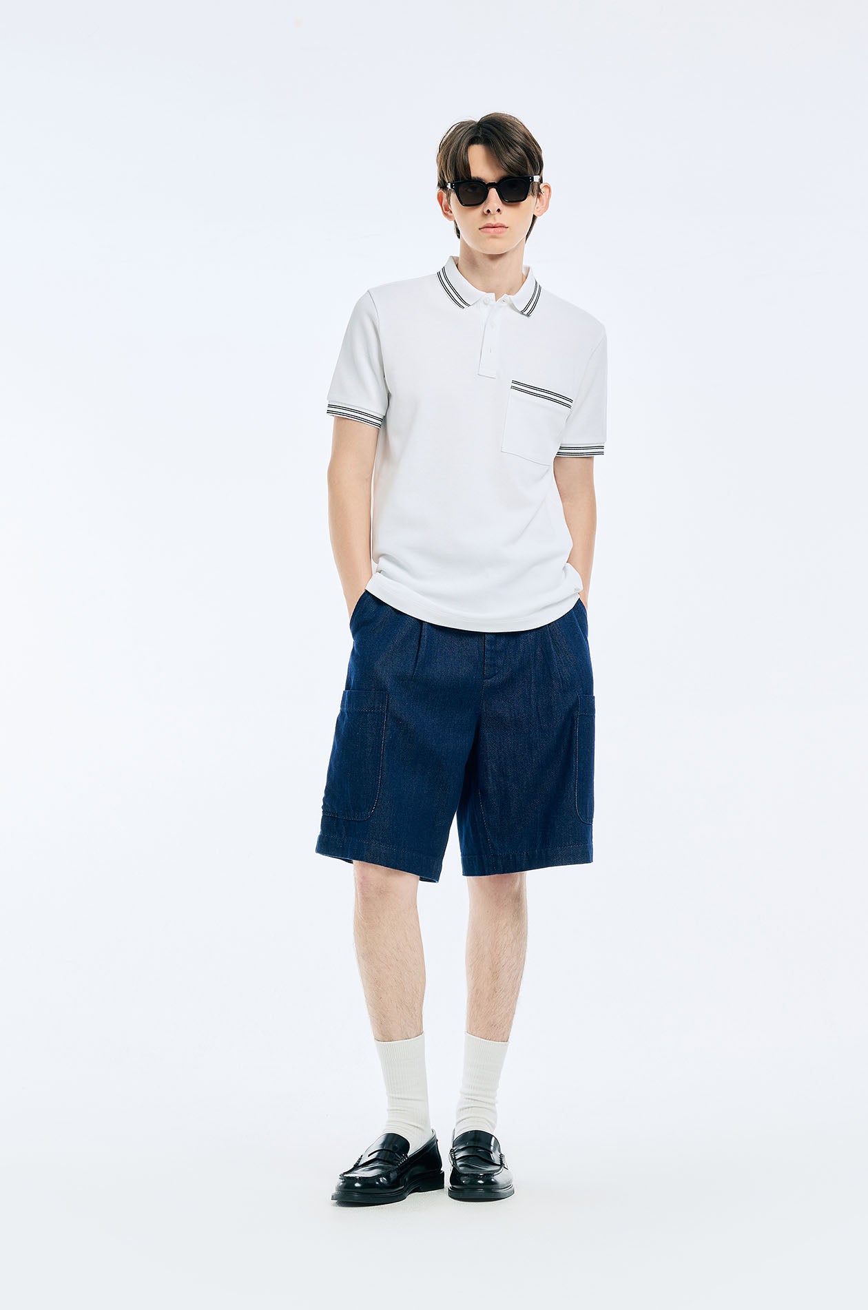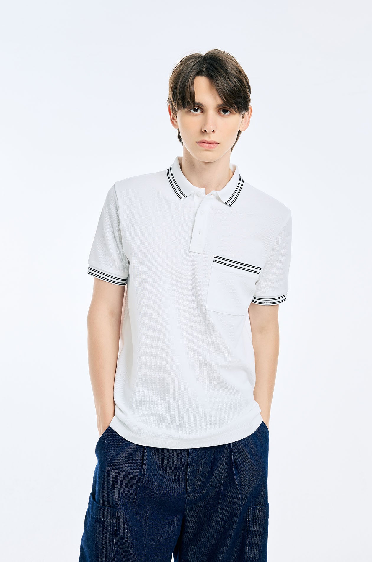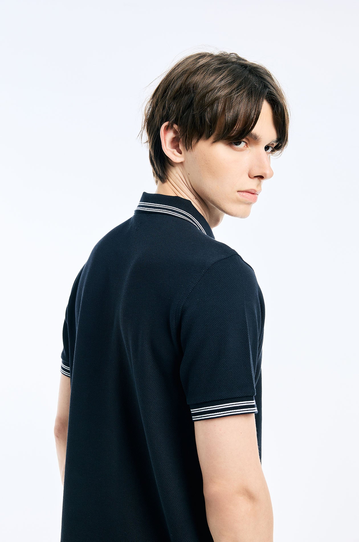 Short-sleeved polo shirt in pique fabric. Regular fit with classic collar and 3D JJ logo at the chest. Front zip closure. Available in black, white, and brown.