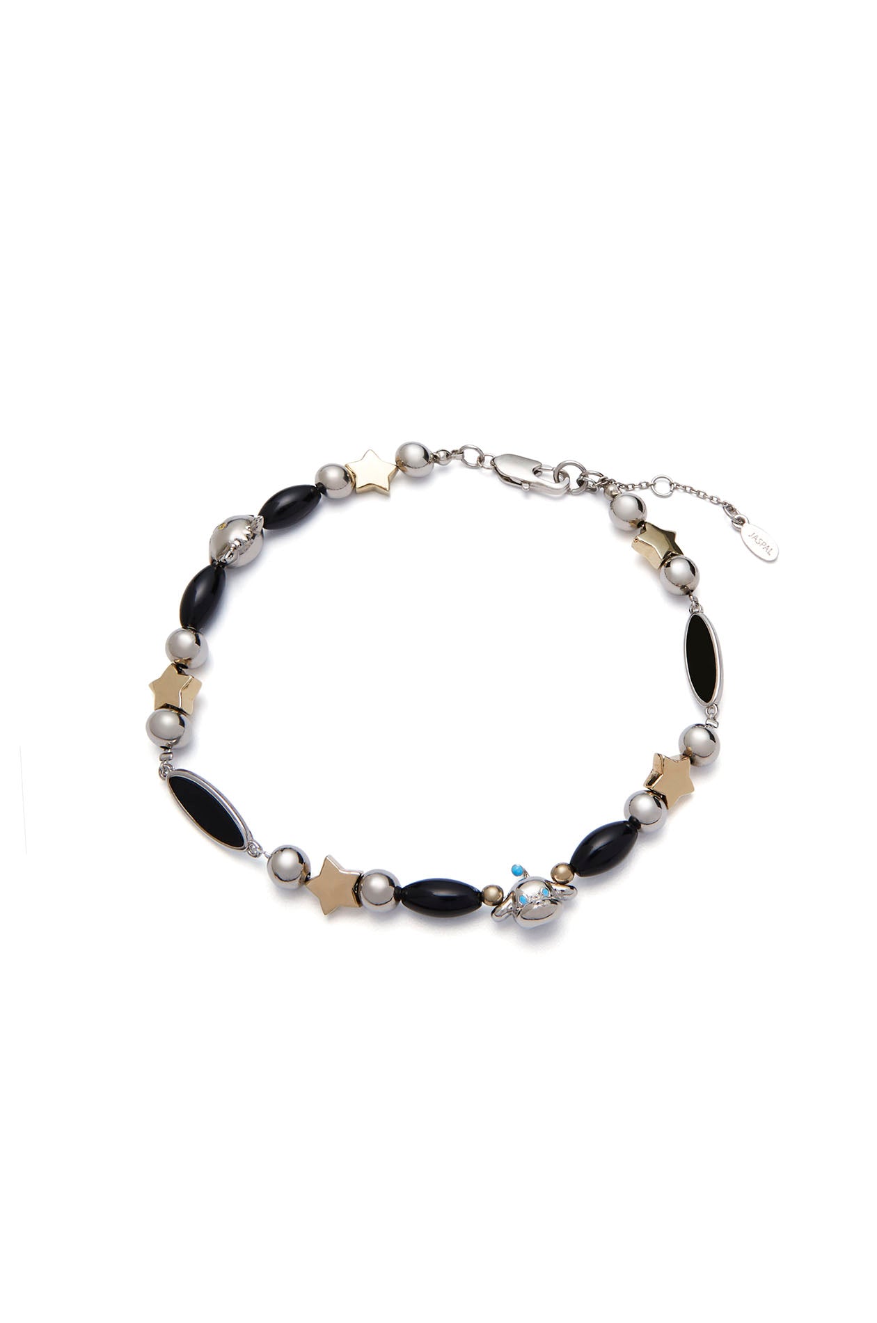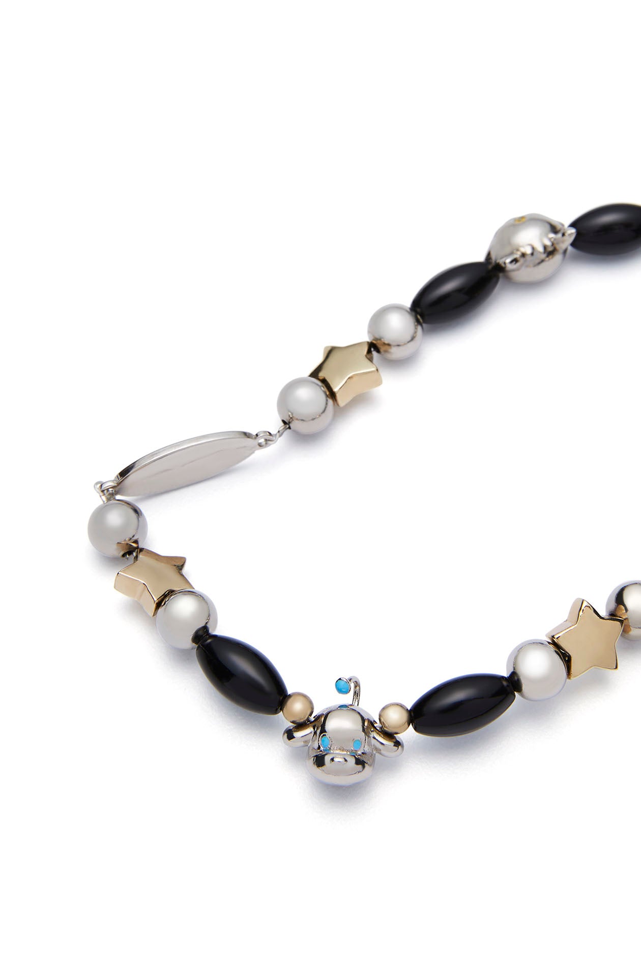 Gongkan x Jaspal | Pet necklace adorned with pearl beads, star charms, and plaques showcasing Gongkan’s signature artwork.