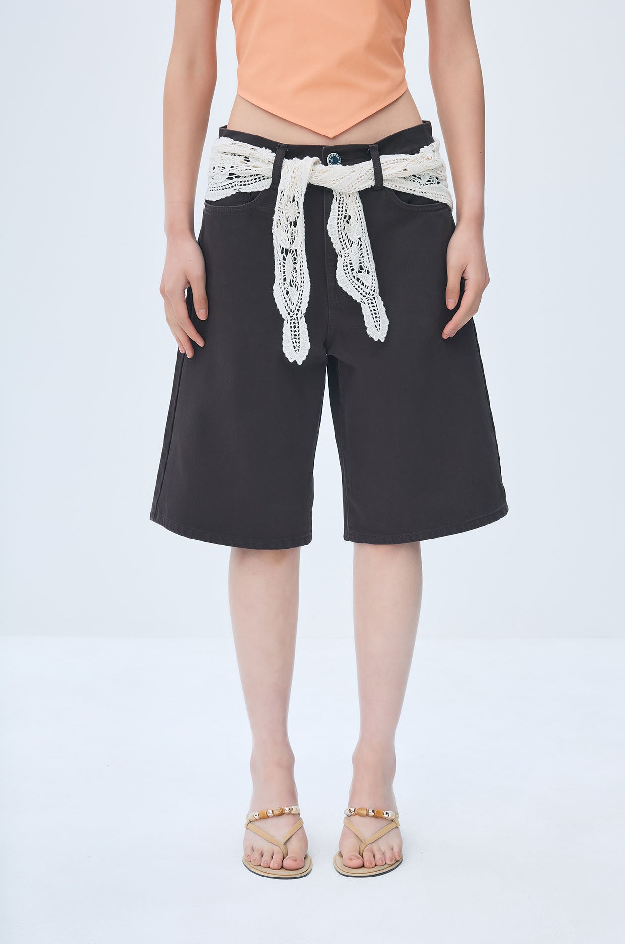 Bermuda Shorts with Crochet Waist Scarf