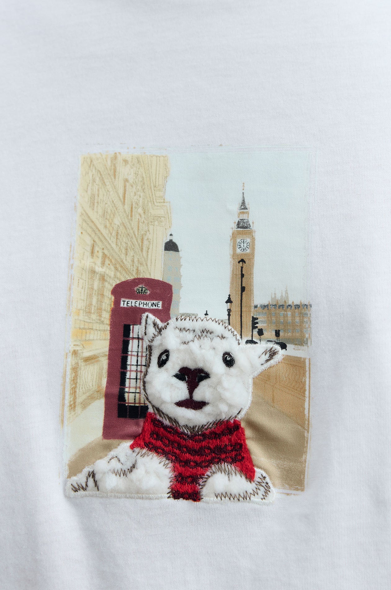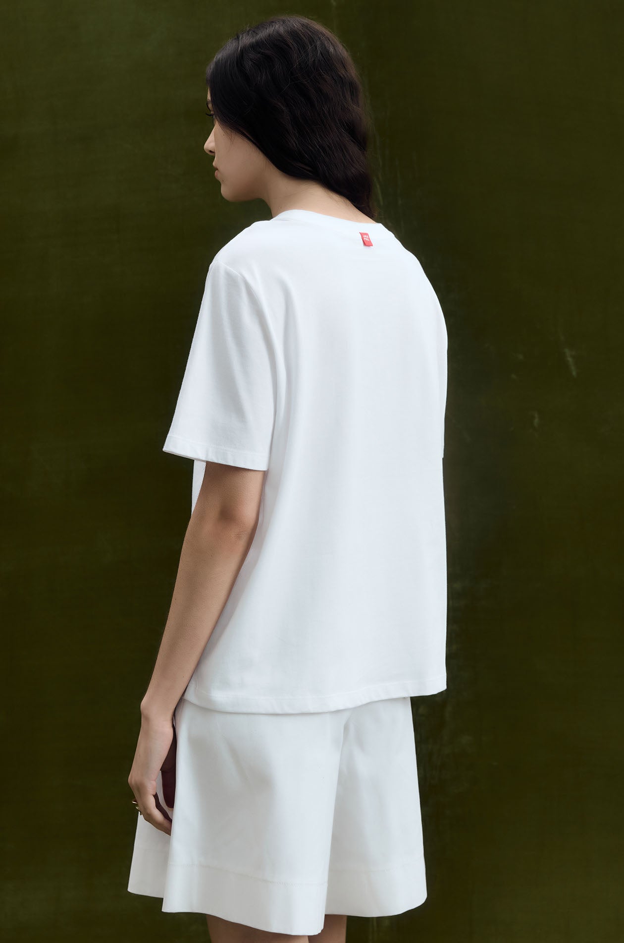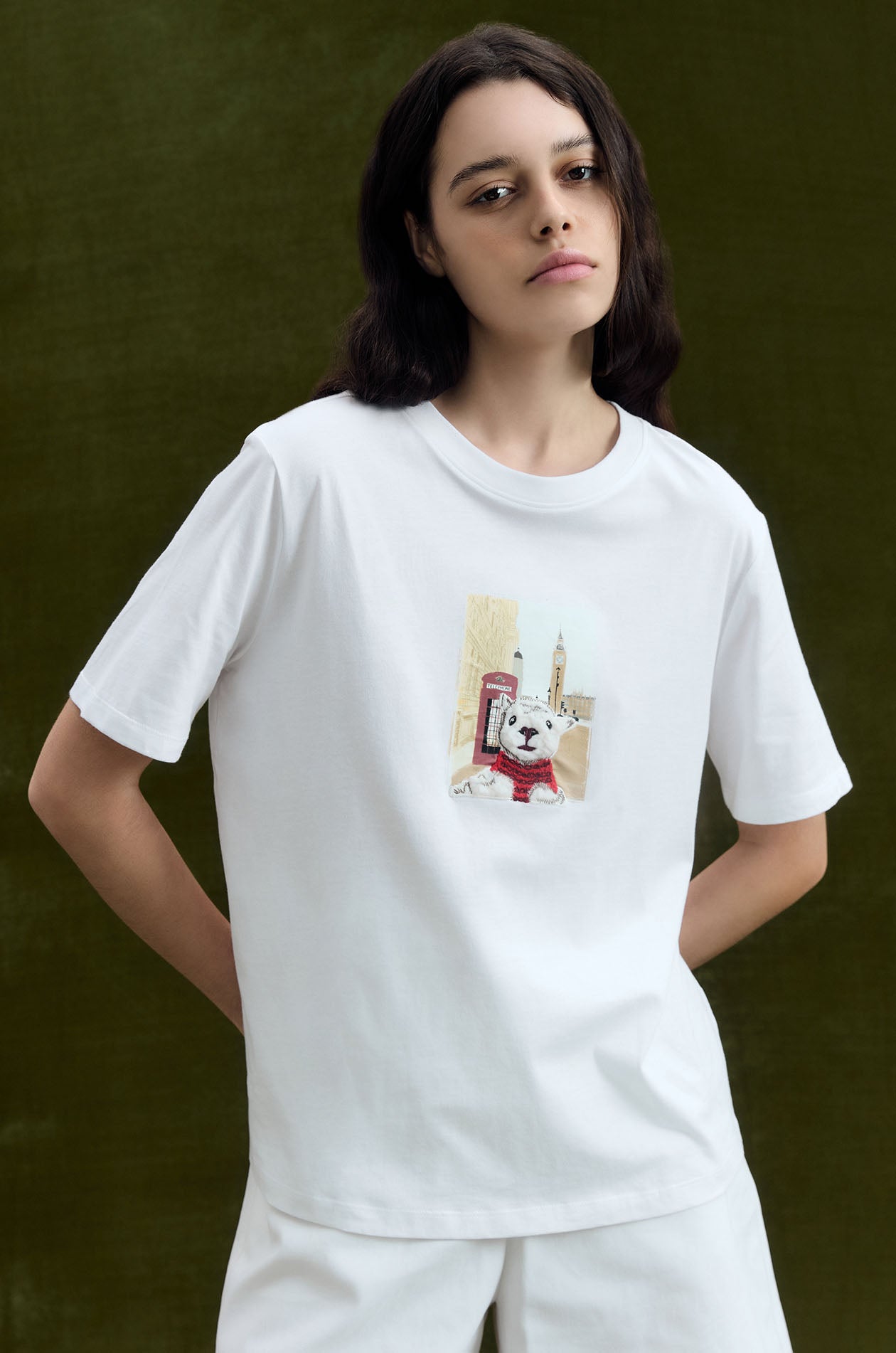 Short-sleeved T-shirt in cotton jersey. Regular fit with round neck and front graphic print. Available in white.