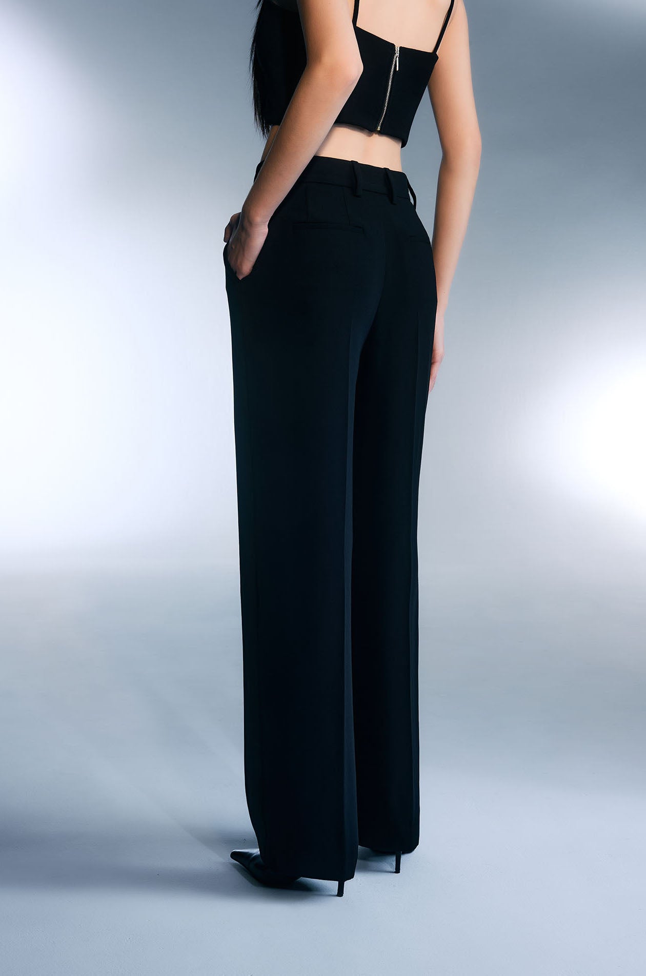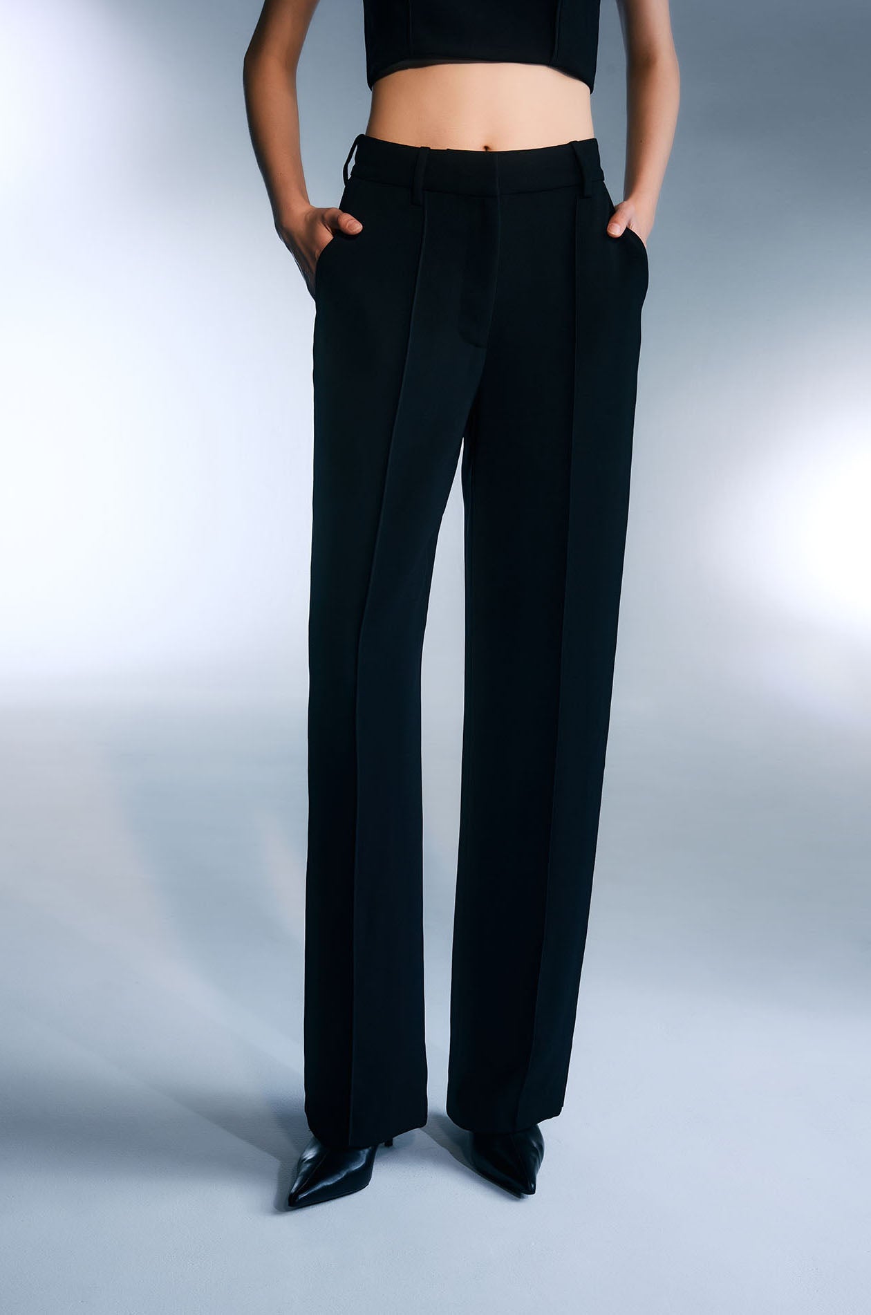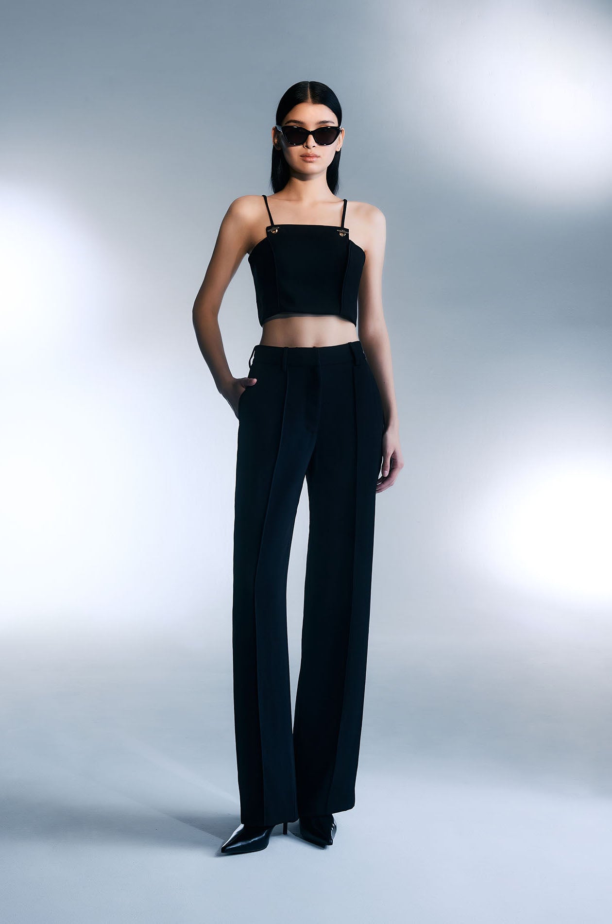 Jaspal X TunTunn | Mid-rise pants in woven fabric. Slim-straight legs with front creases, side pockets, and belt loops. Front hook and zip closure. Available in black.