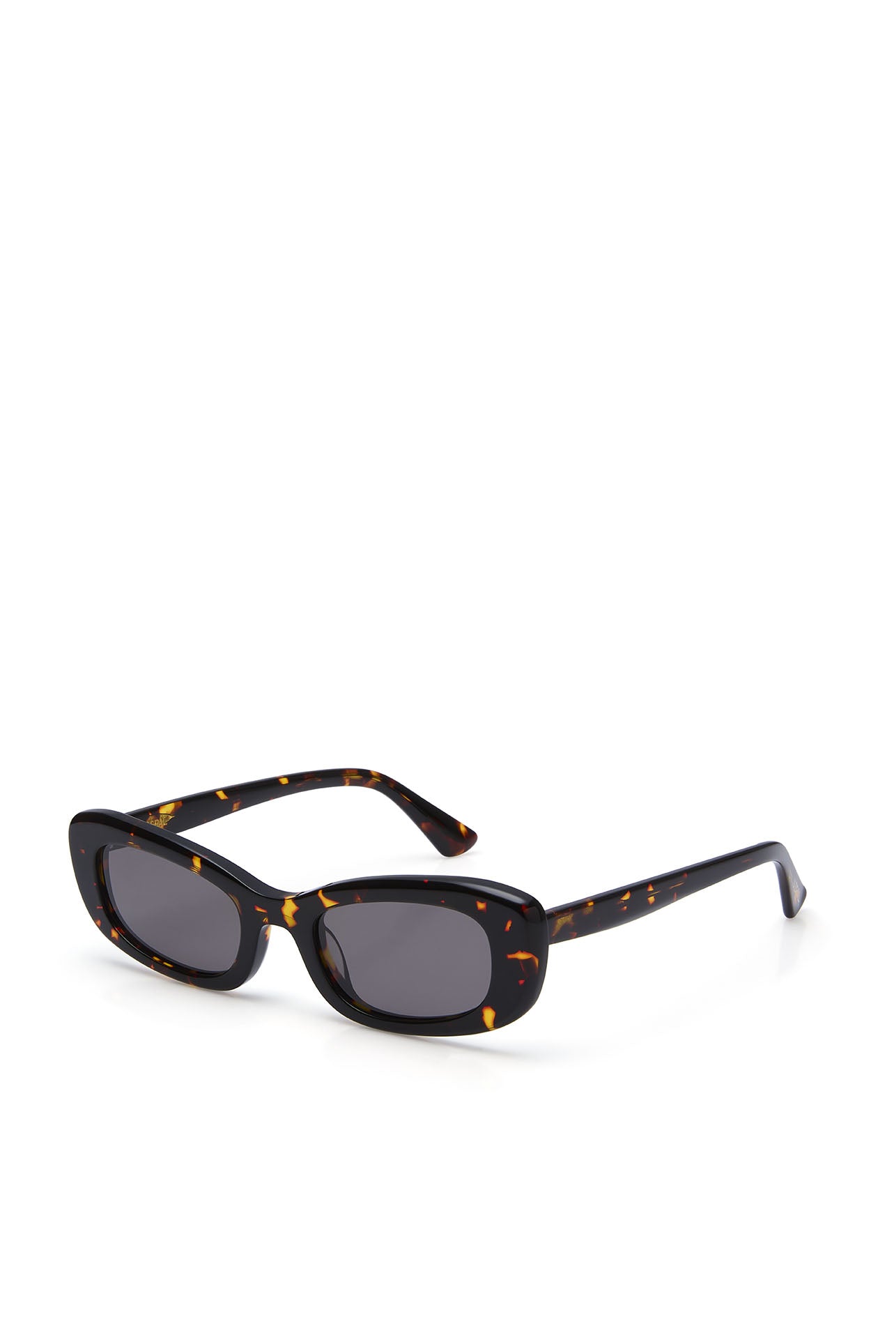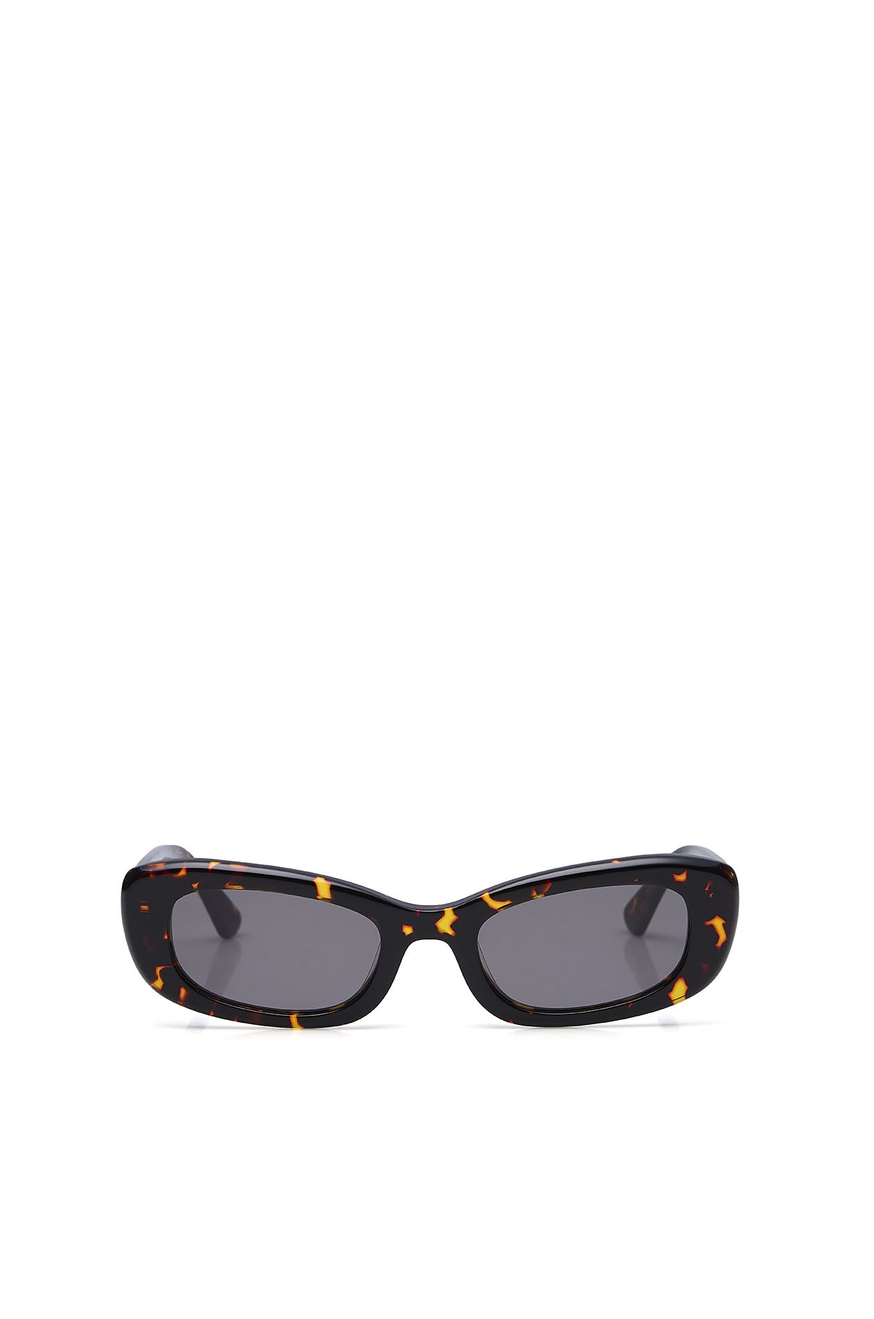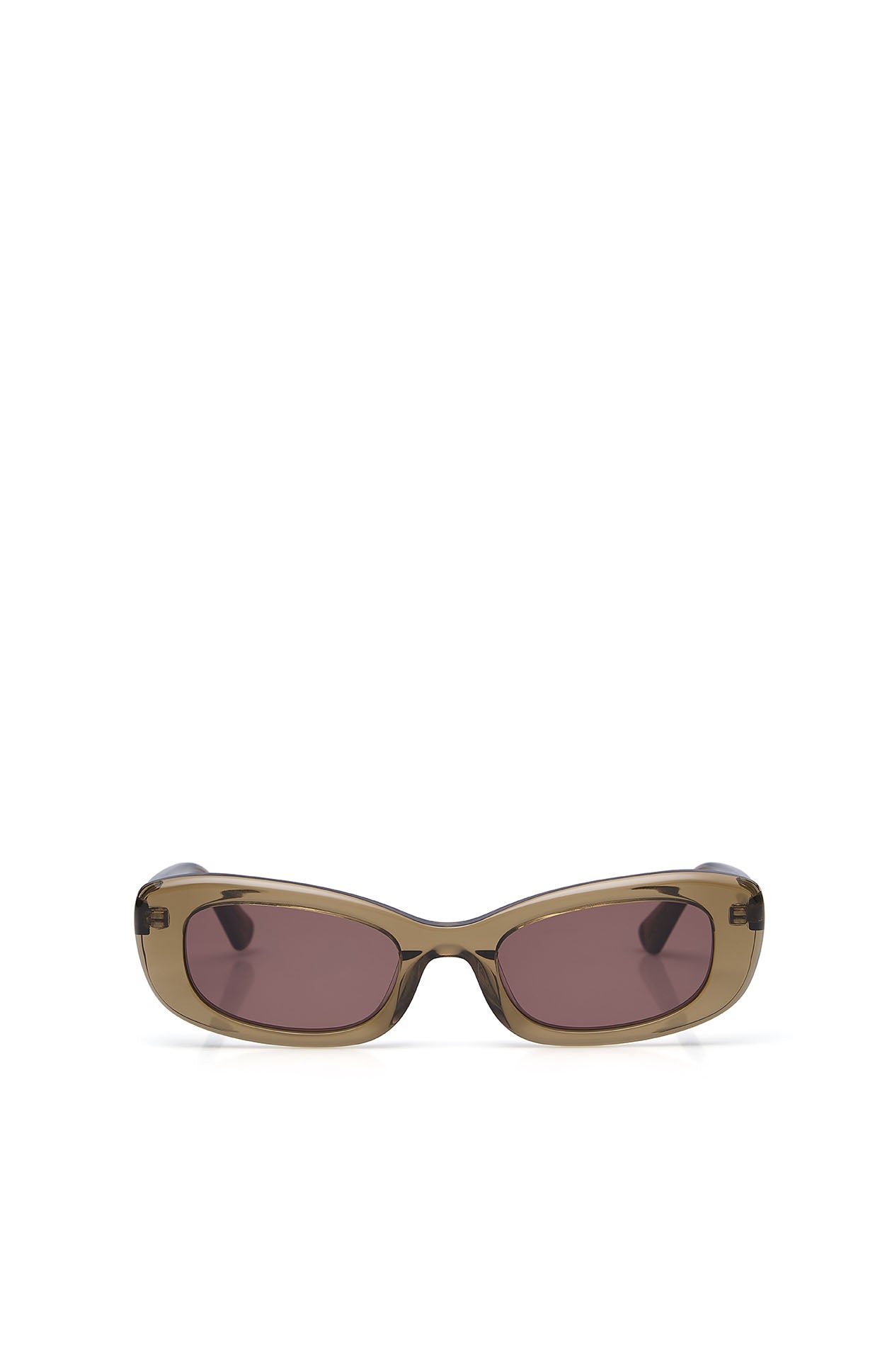 Rectangle sunglasses in acetate frame, featuring a slim design. Available in tortoiseshell brown and olive green.