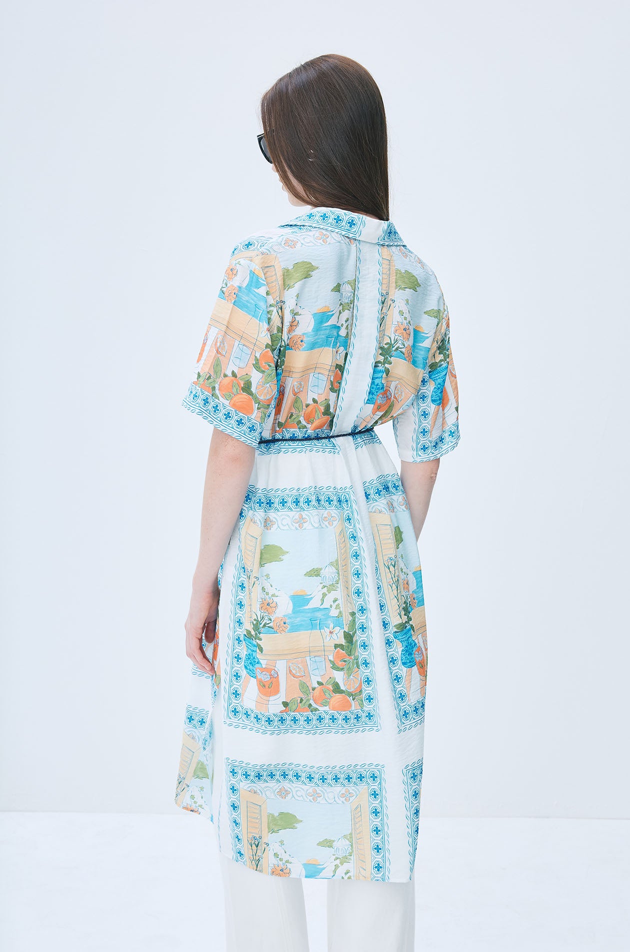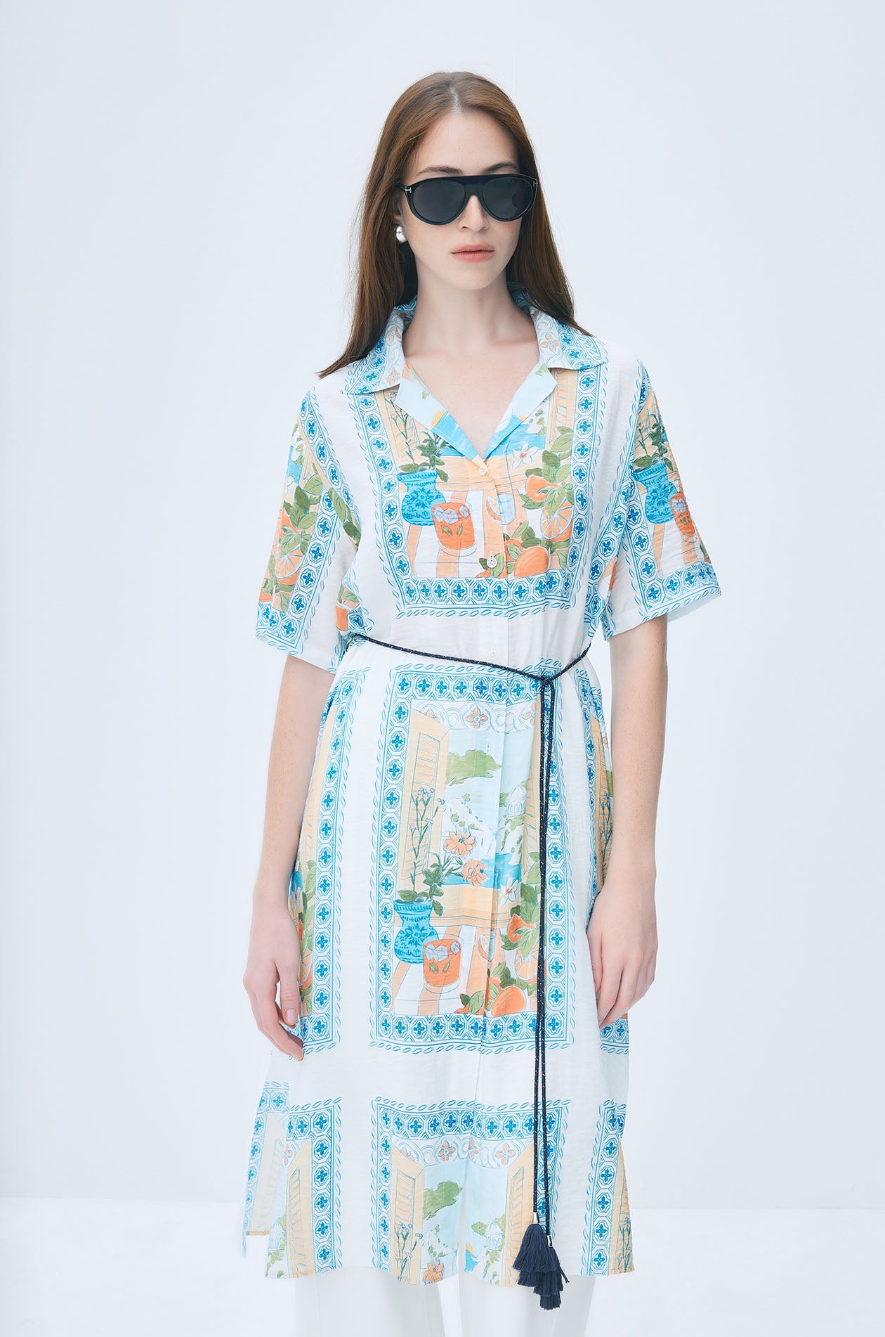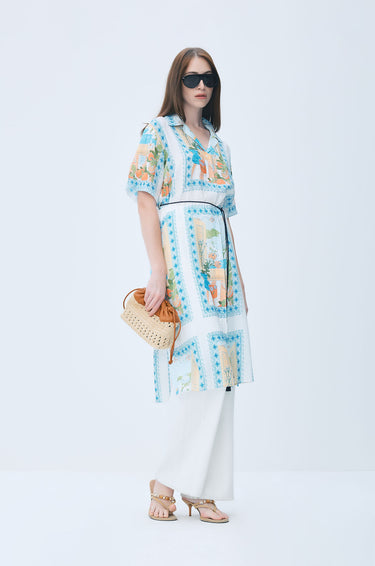 Vacation Print Midi Shirt Dress