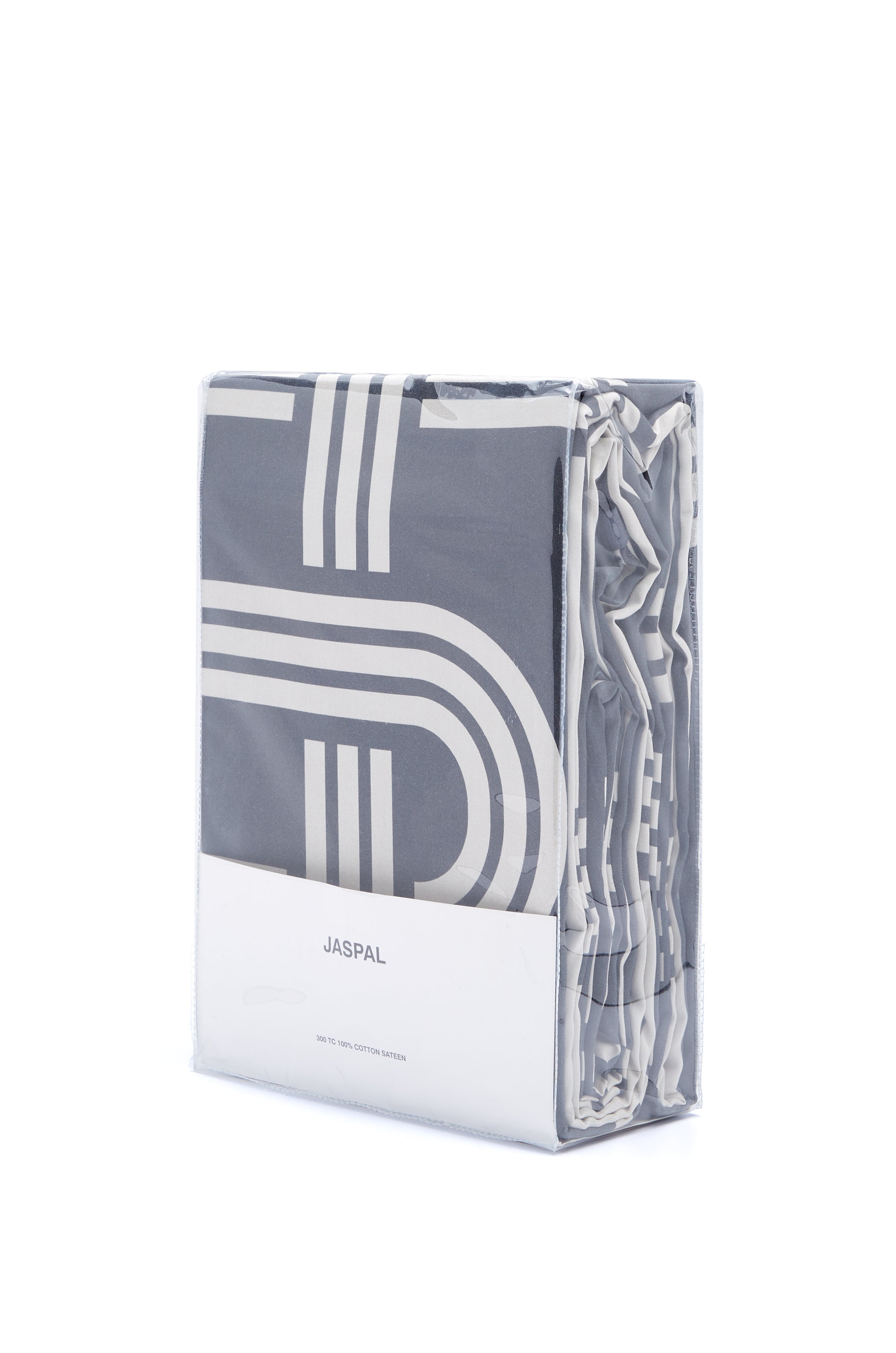 Duvet cover made from 100% cotton, designed to bring a modern aesthetic to your king-size bed. Features a woven J-motif. Available in white and grey.