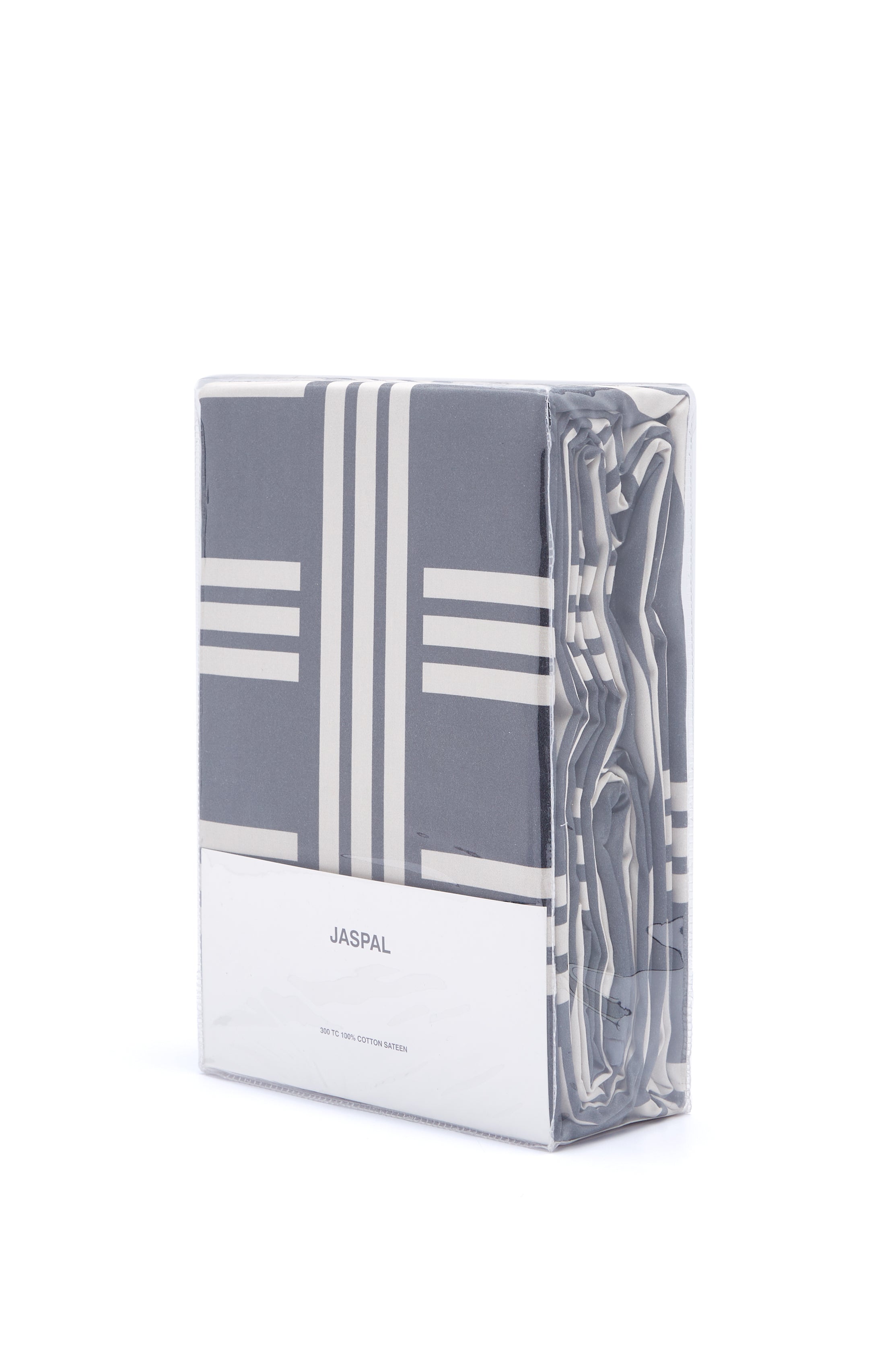 Duvet cover made from 100% cotton, designed to bring a modern aesthetic to your queen-size bed. Features a woven J-motif. Available in white and grey.