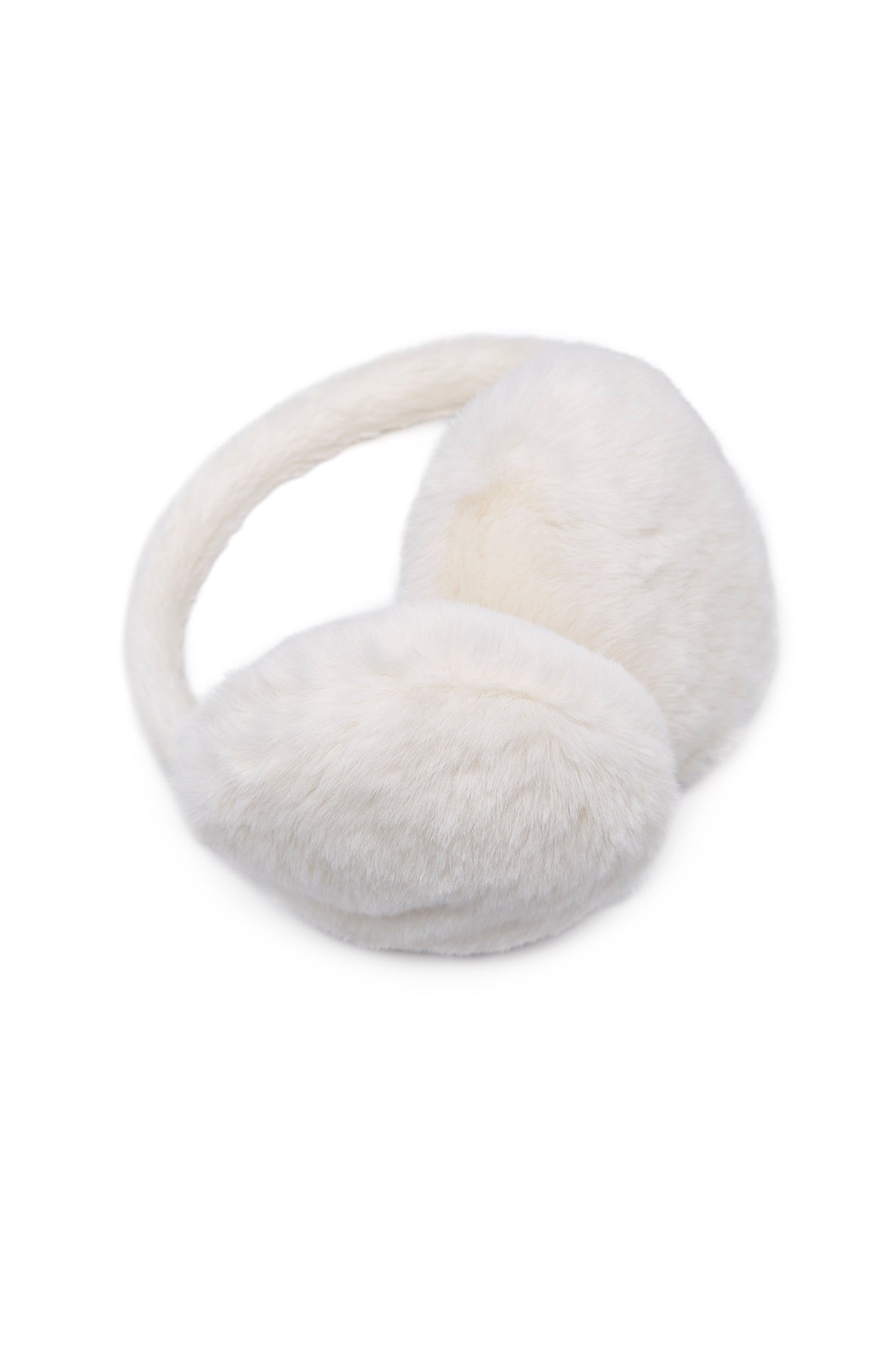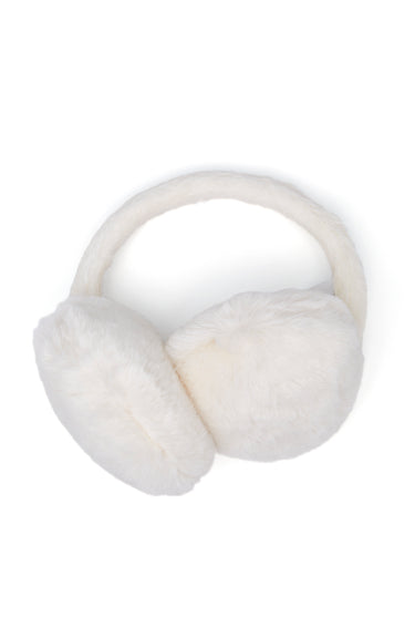 Padded earmuffs in soft, fluffy faux fur with matching headband. Available in off-white.