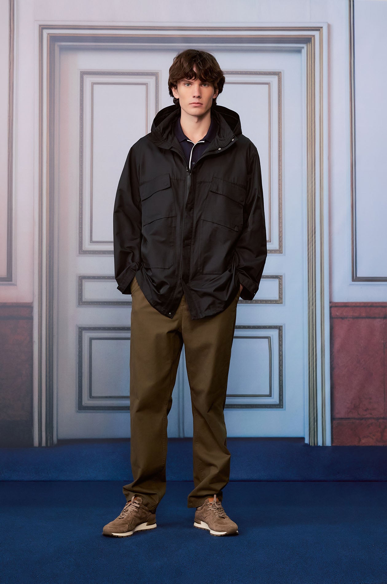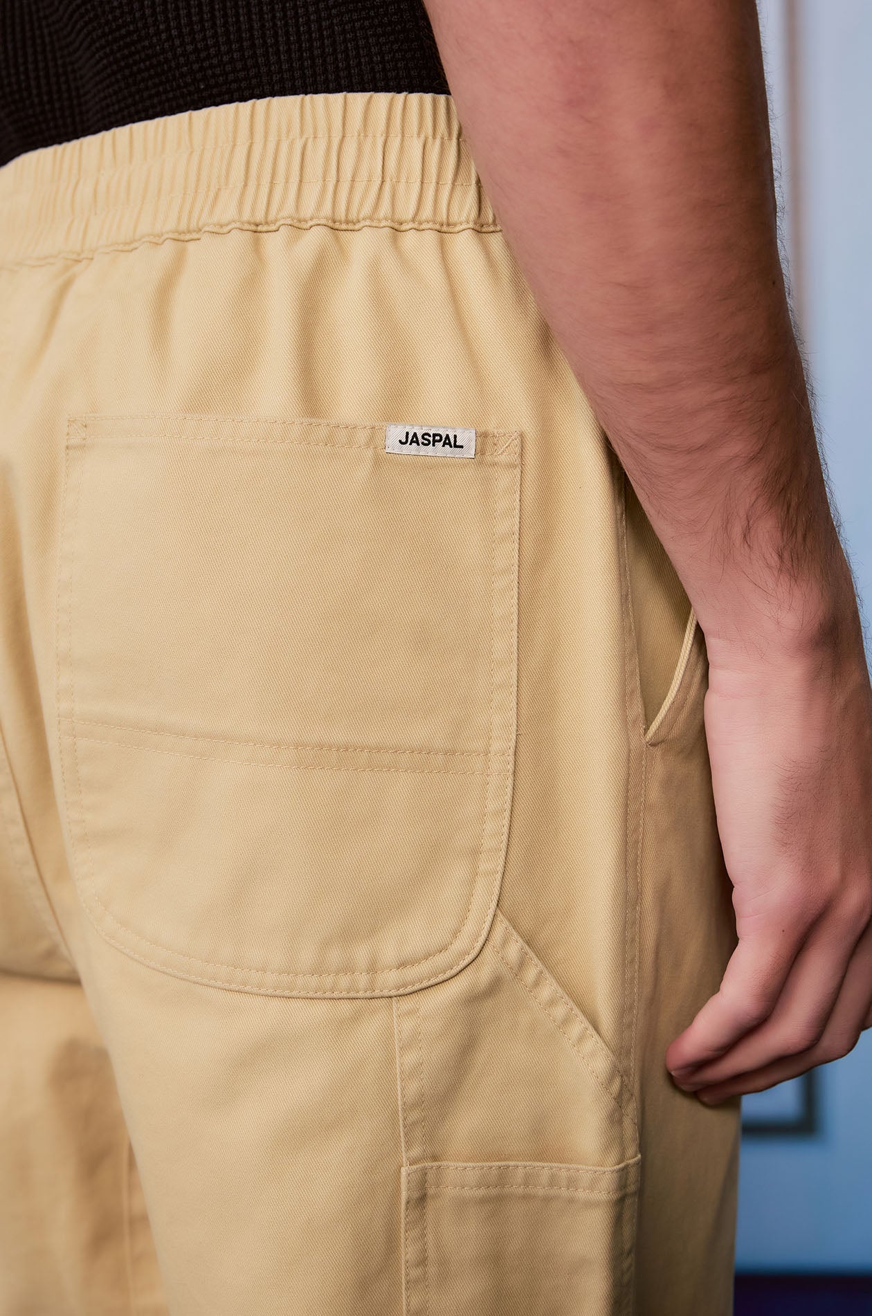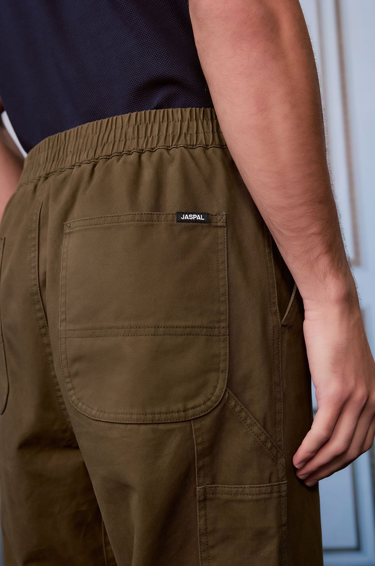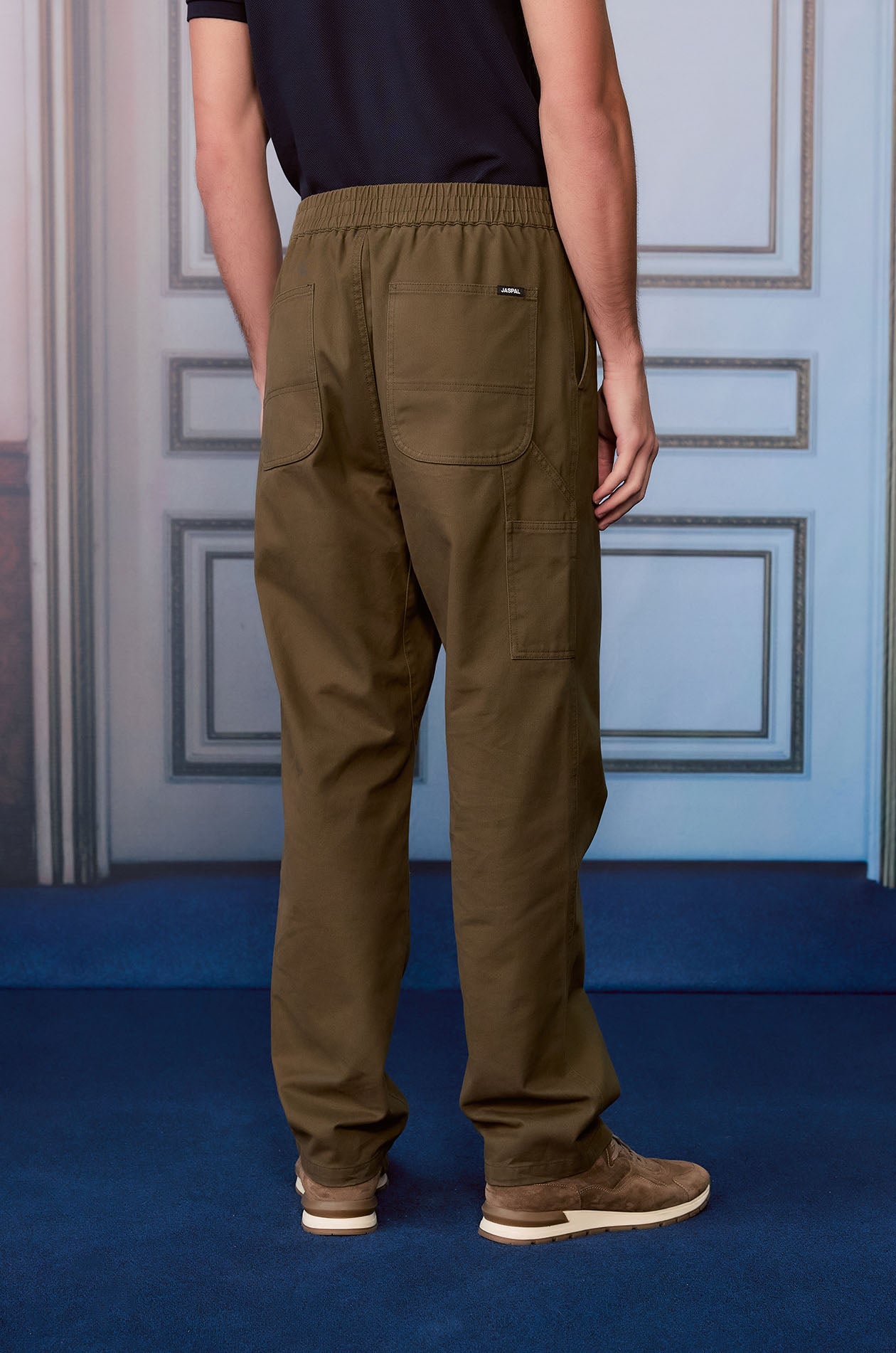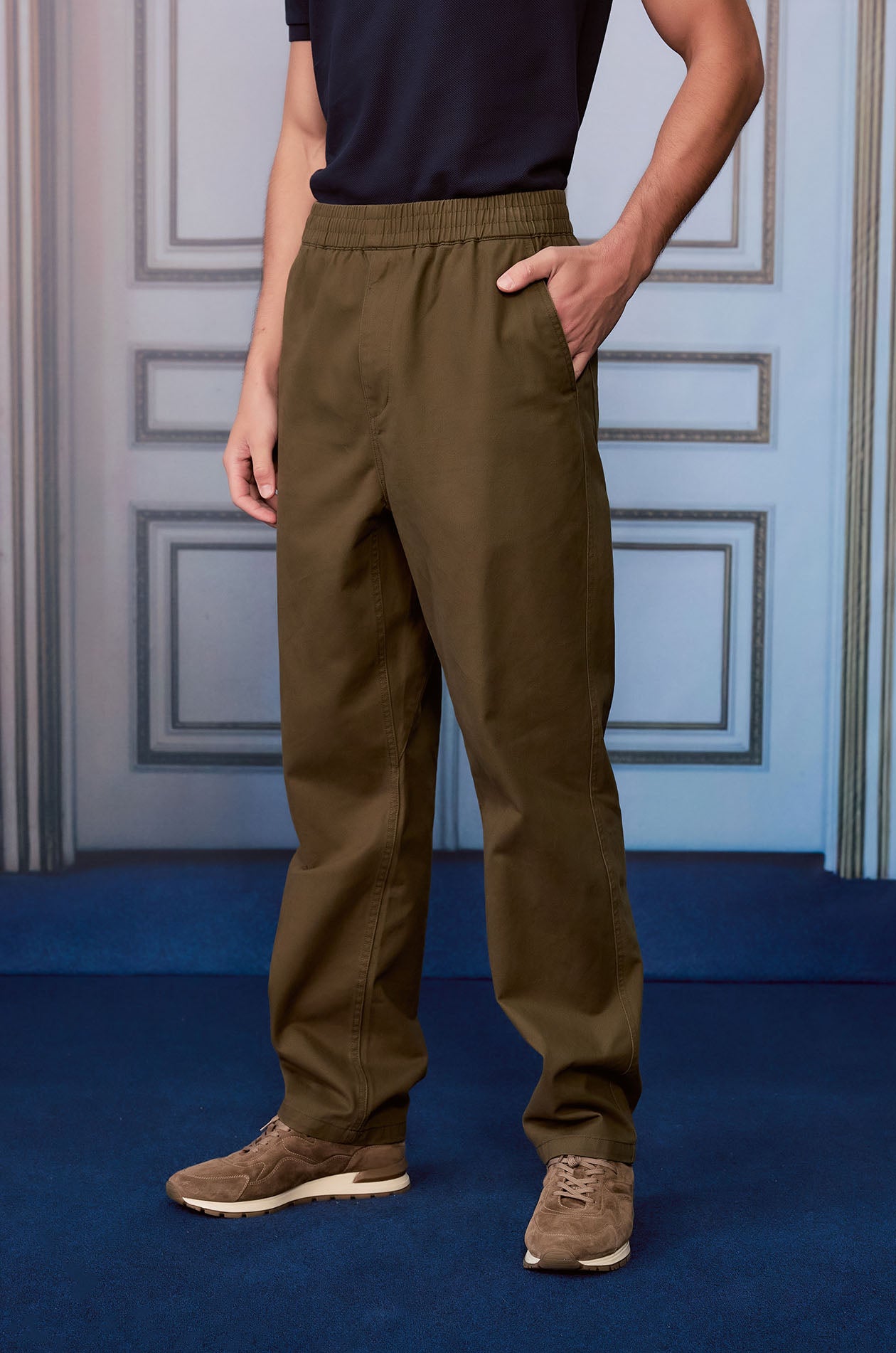 Mid-rise pants in cotton twill. Loose-straight legs with side and back pockets. Elastic drawstring waistband and zip closure. Available in forest night and vintage khaki.