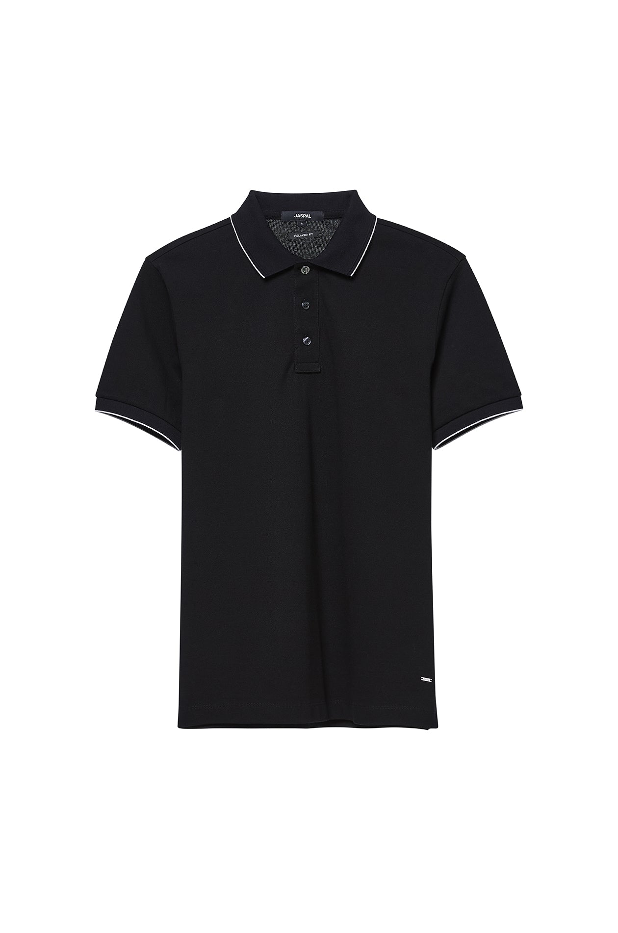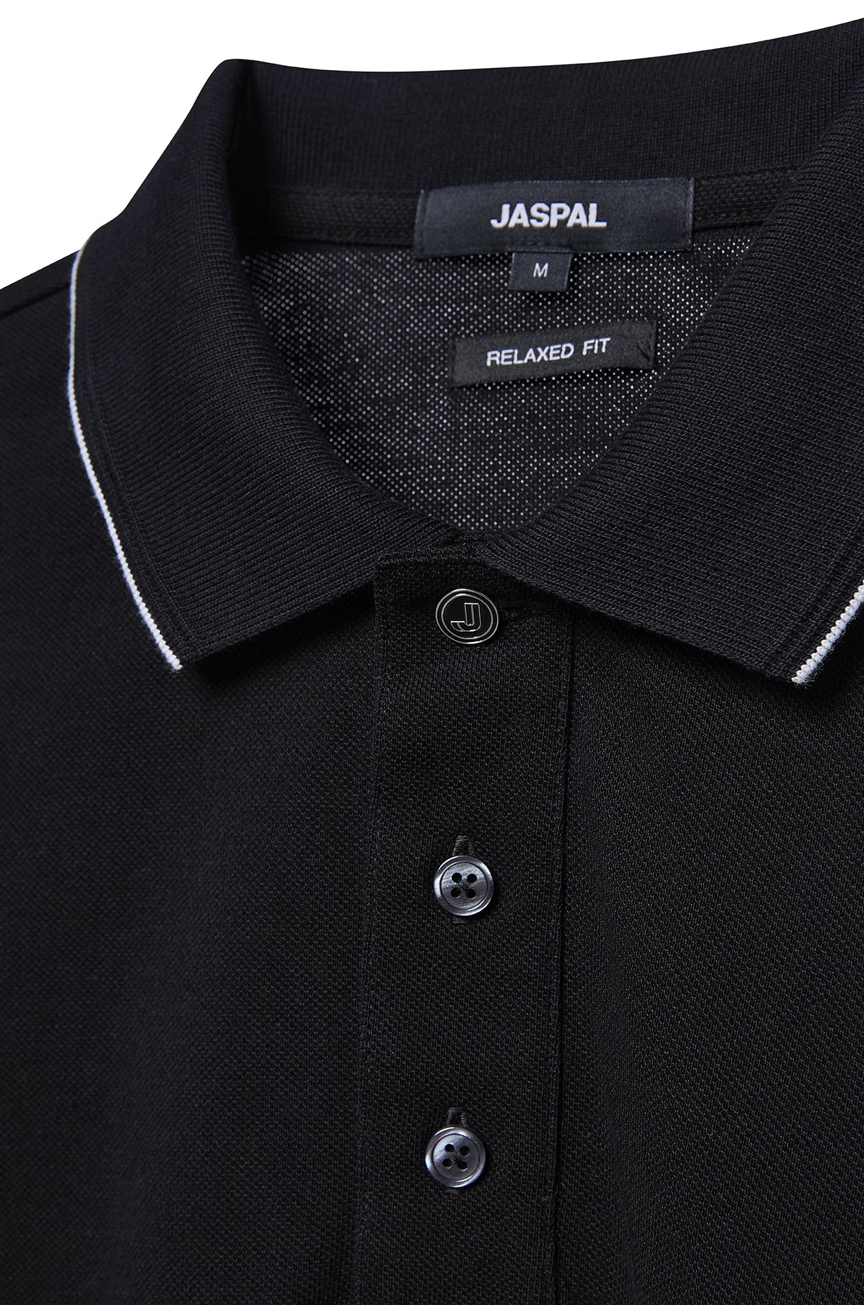 Short-sleeved polo shirt in cotton pique. Regular fit with classic collar and Jaspal badge. Available in black.