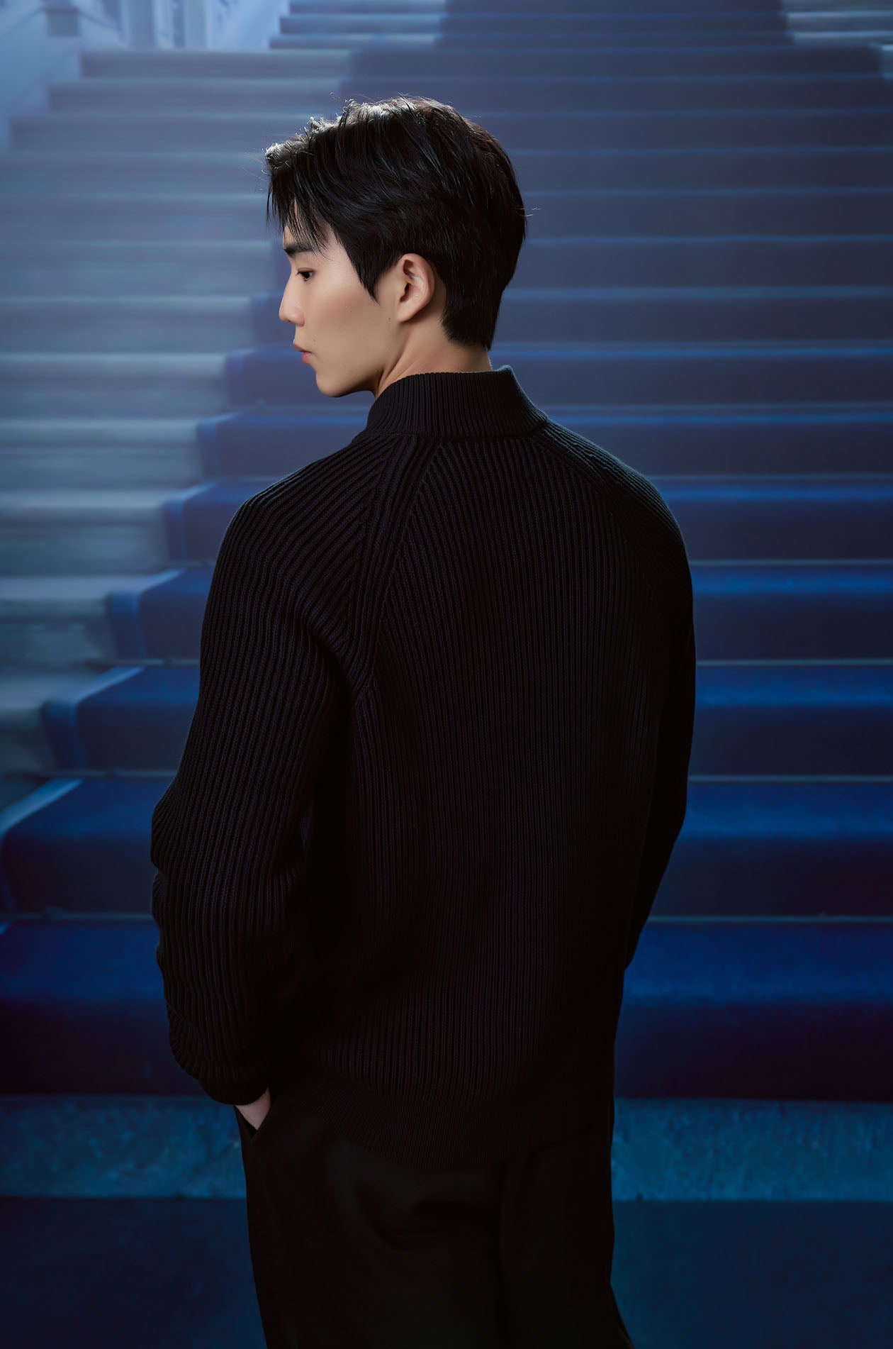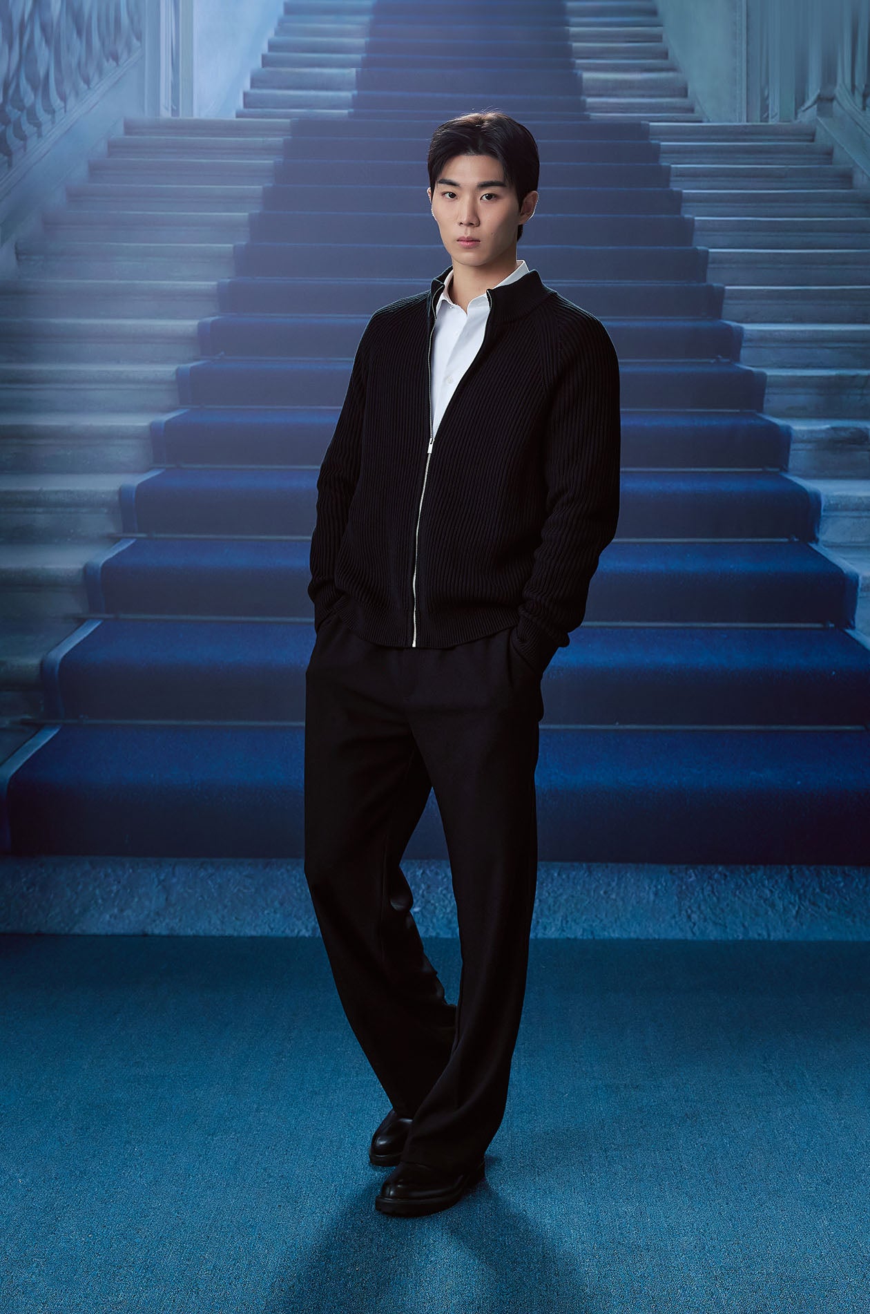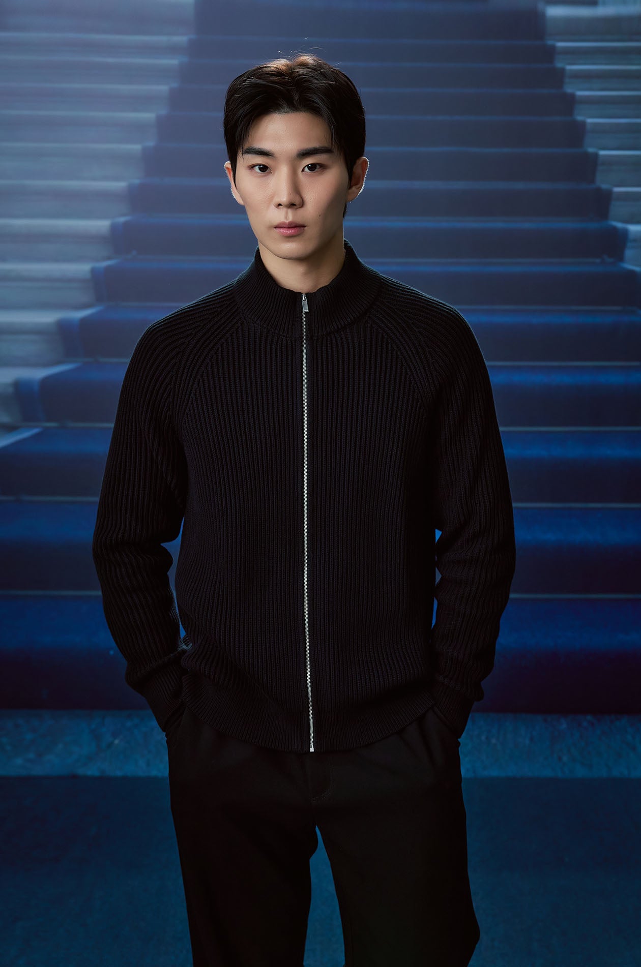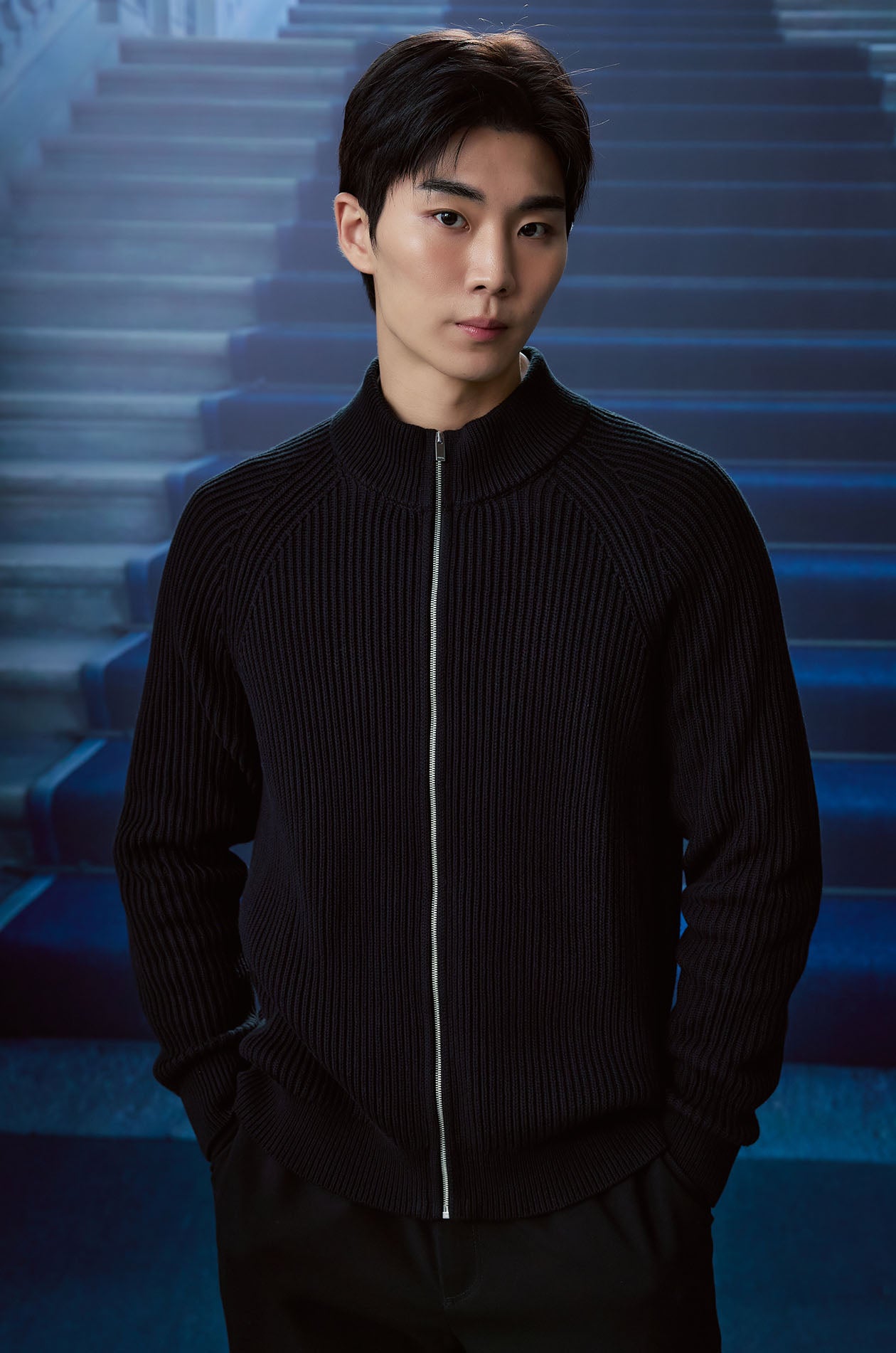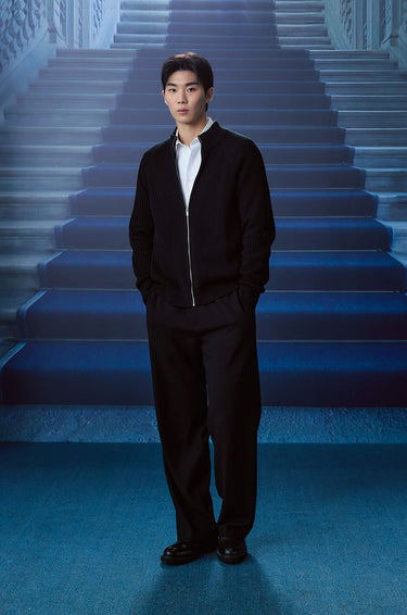 Long-sleeved cardigan in ribbed knit. Regular fit with funnel neck and elastic cuffs. Front zip closure. Available in black.