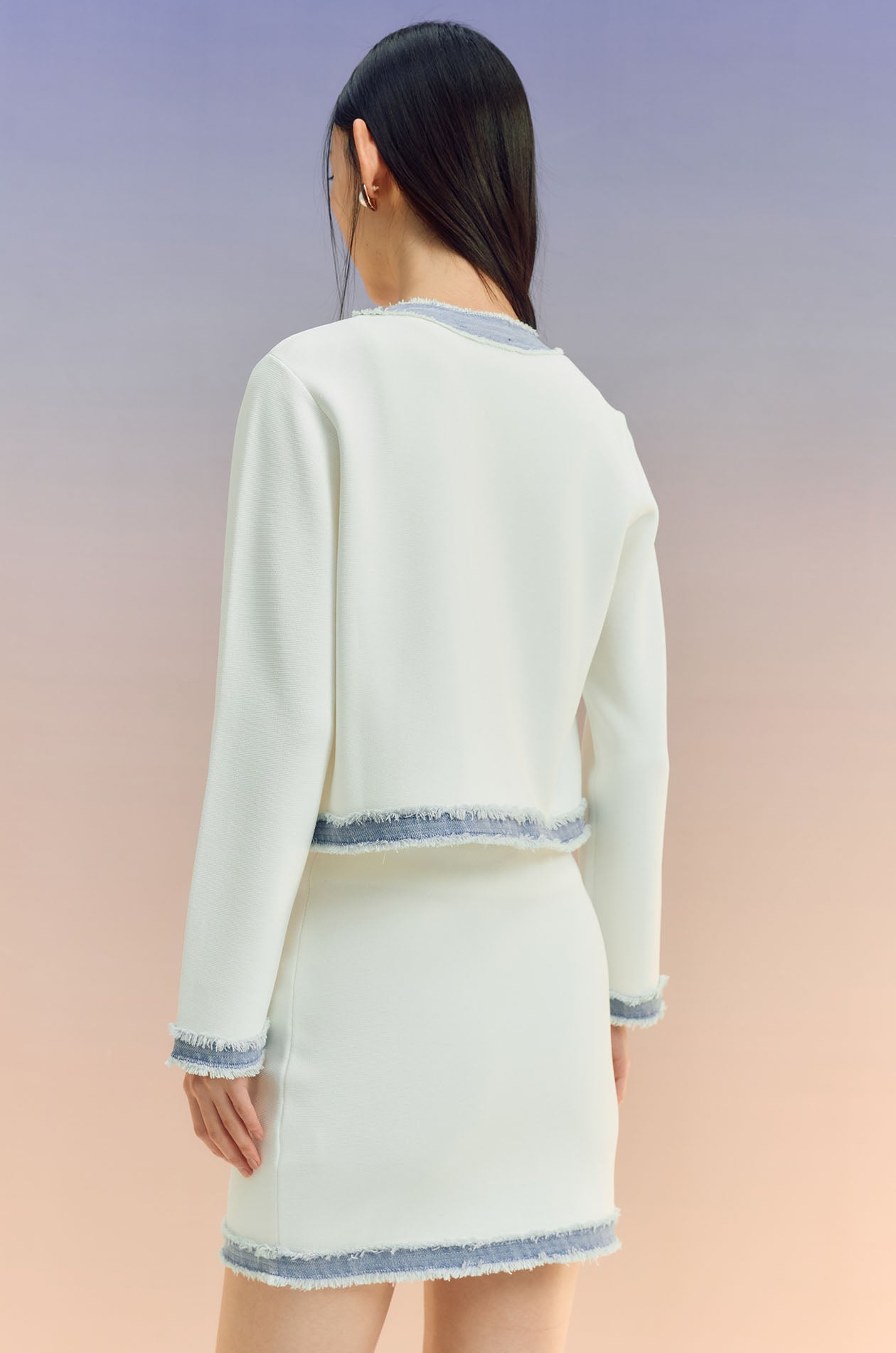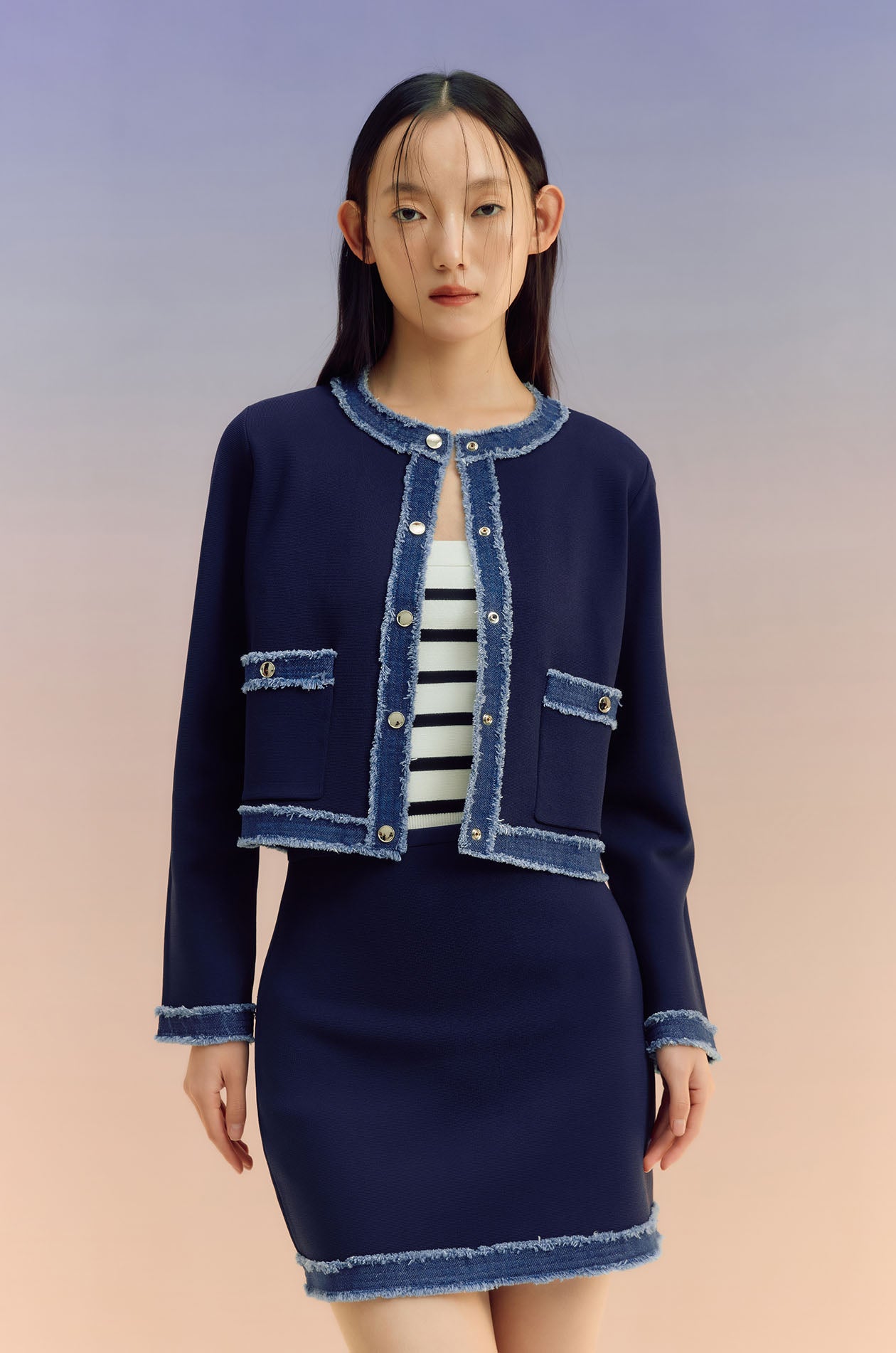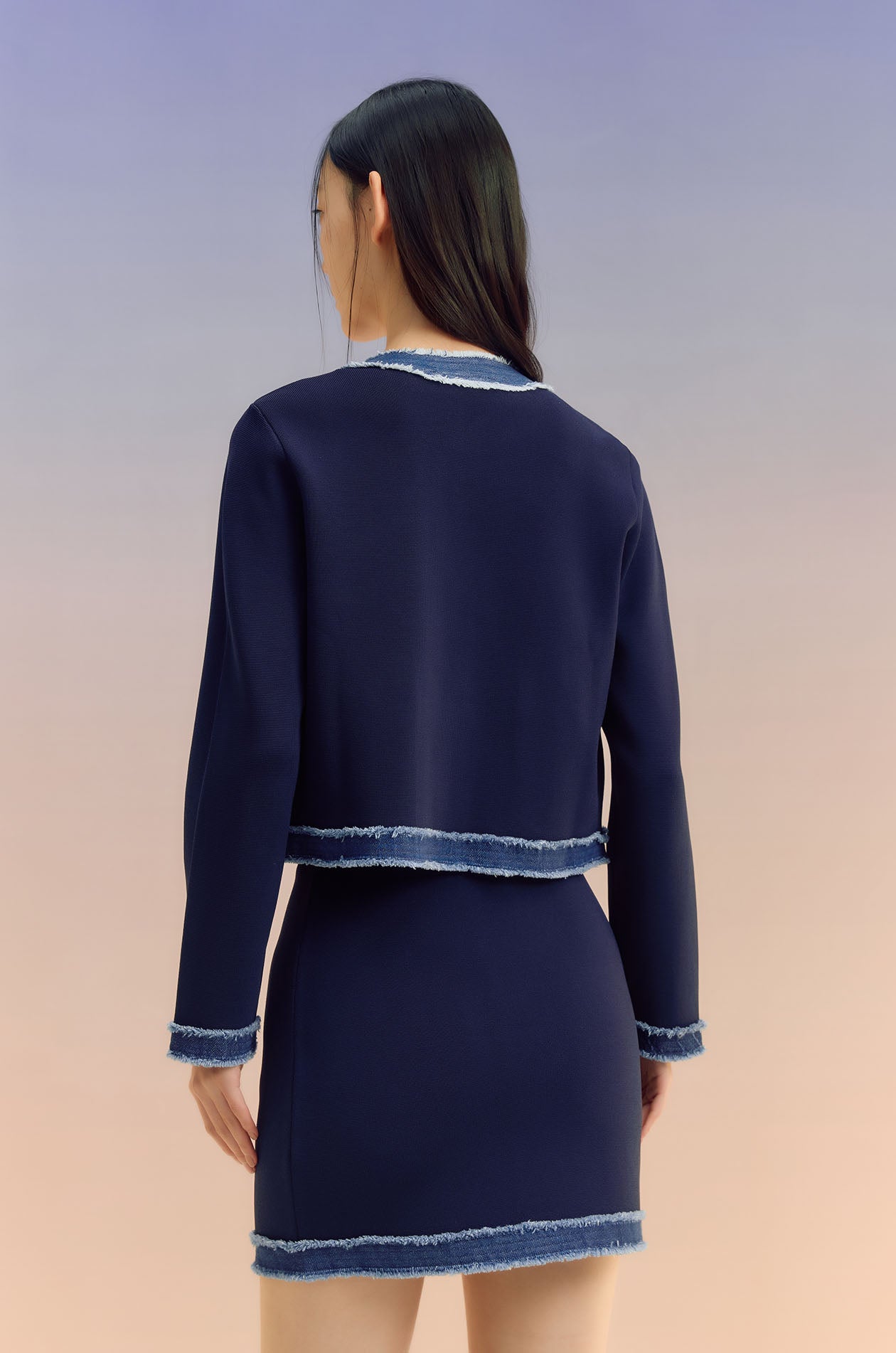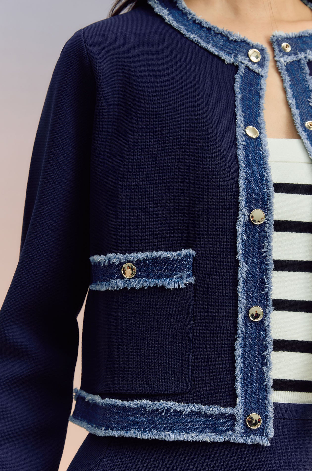 Denim-Trim Knit Cardigan