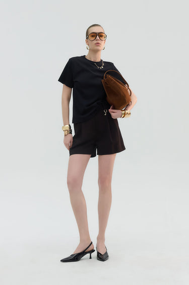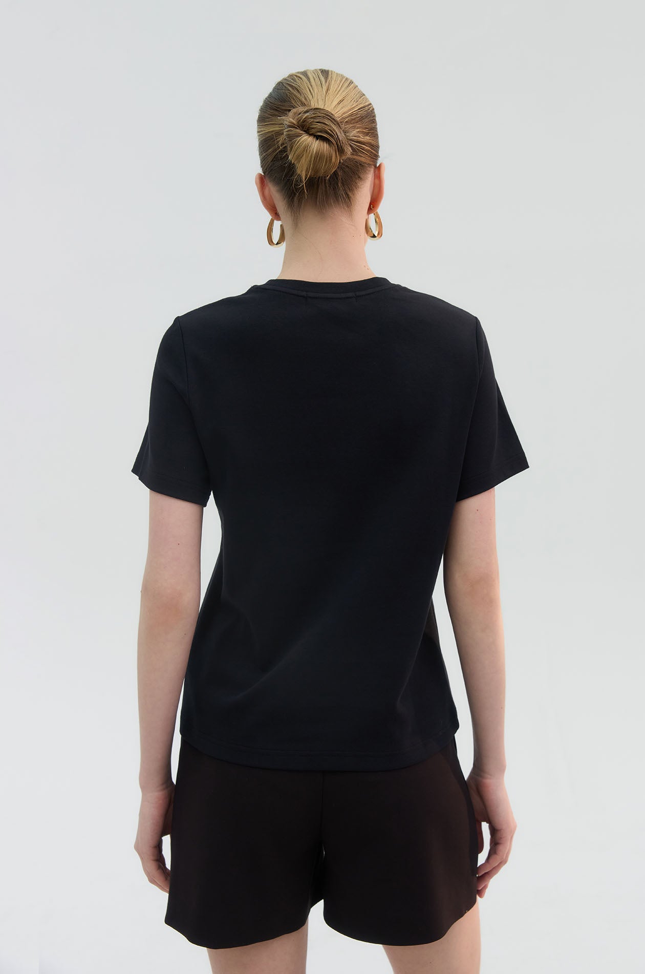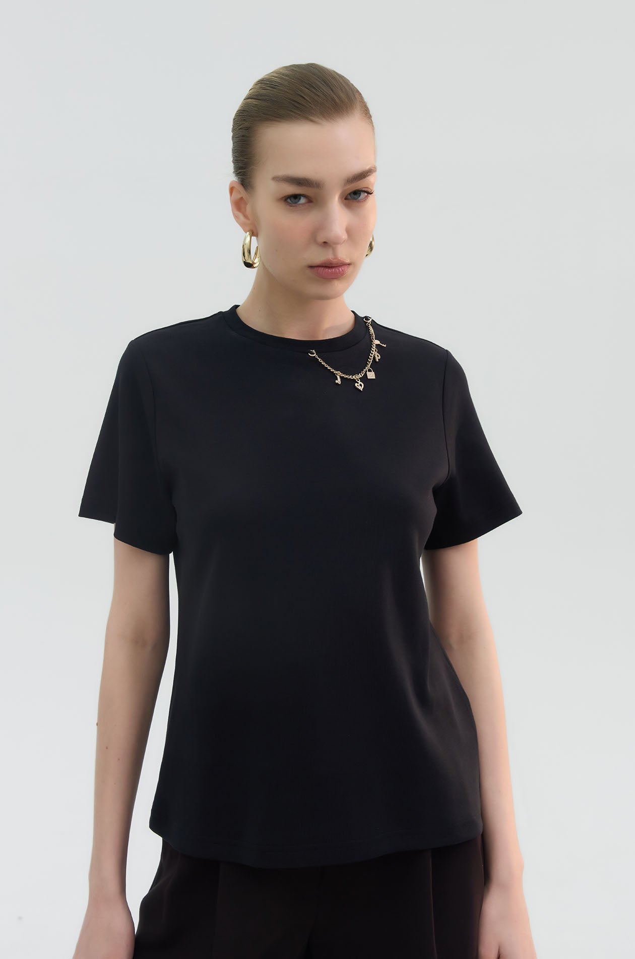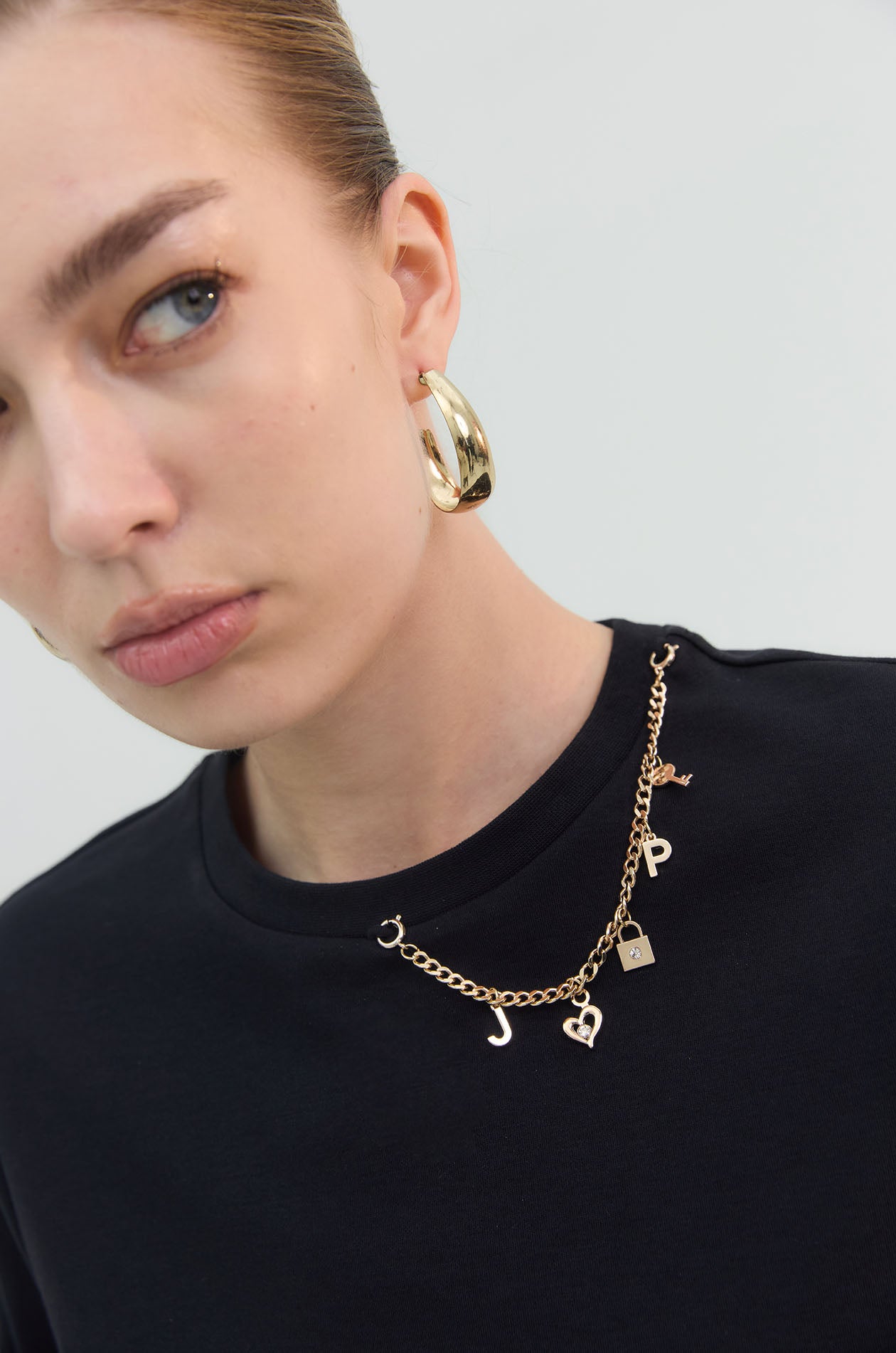 Short-sleeved t-shirt in cotton jersey. Featuring the timeless silhouette, while a detachable chain and charms give this piece an elegant vibe. Regular fit and round neck. Available in black