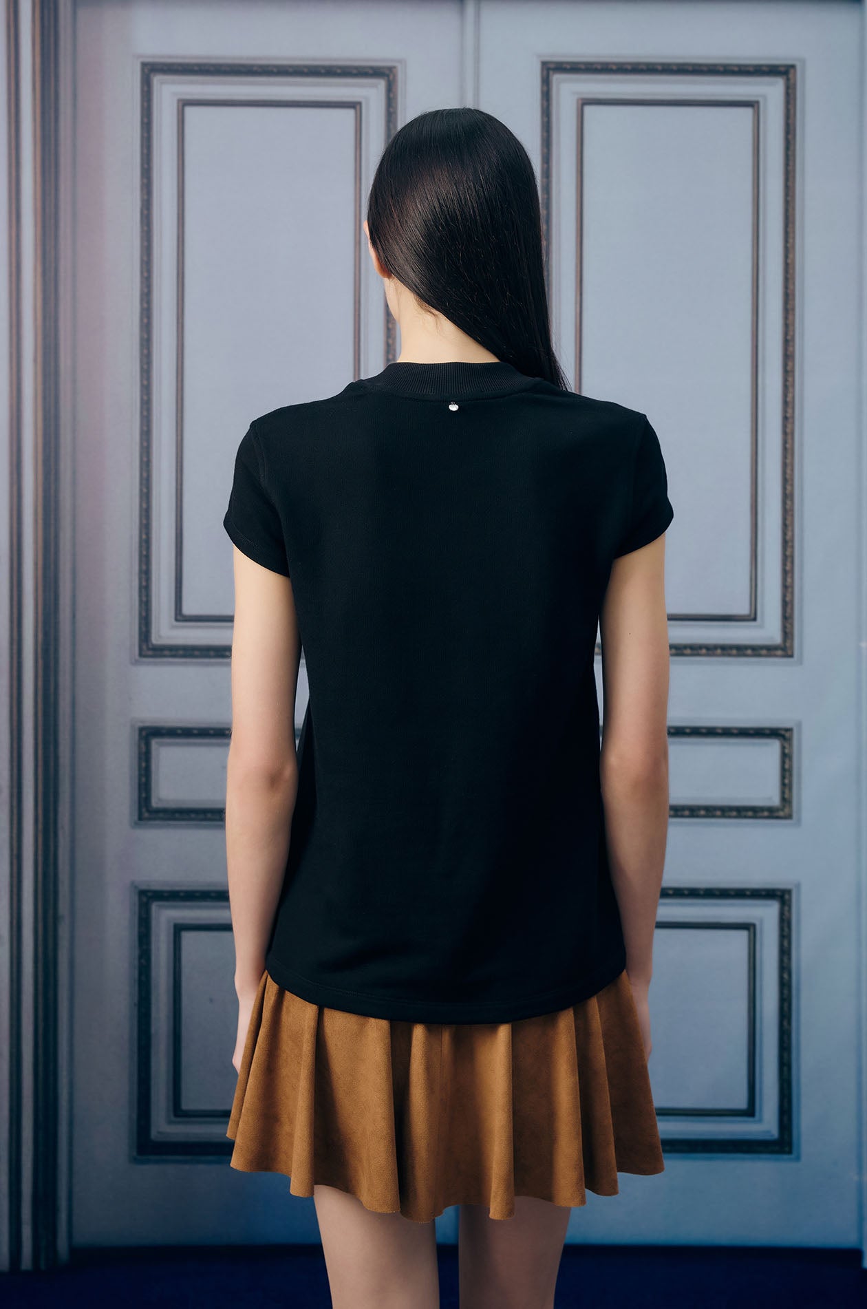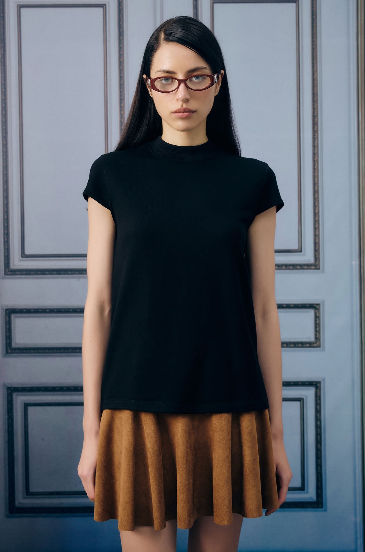 Sleeveless t-shirt in stretchy jersey. Featuring a mock neck and relax-fit silhouette for a sleek and sporty vibe. Available in black.