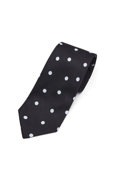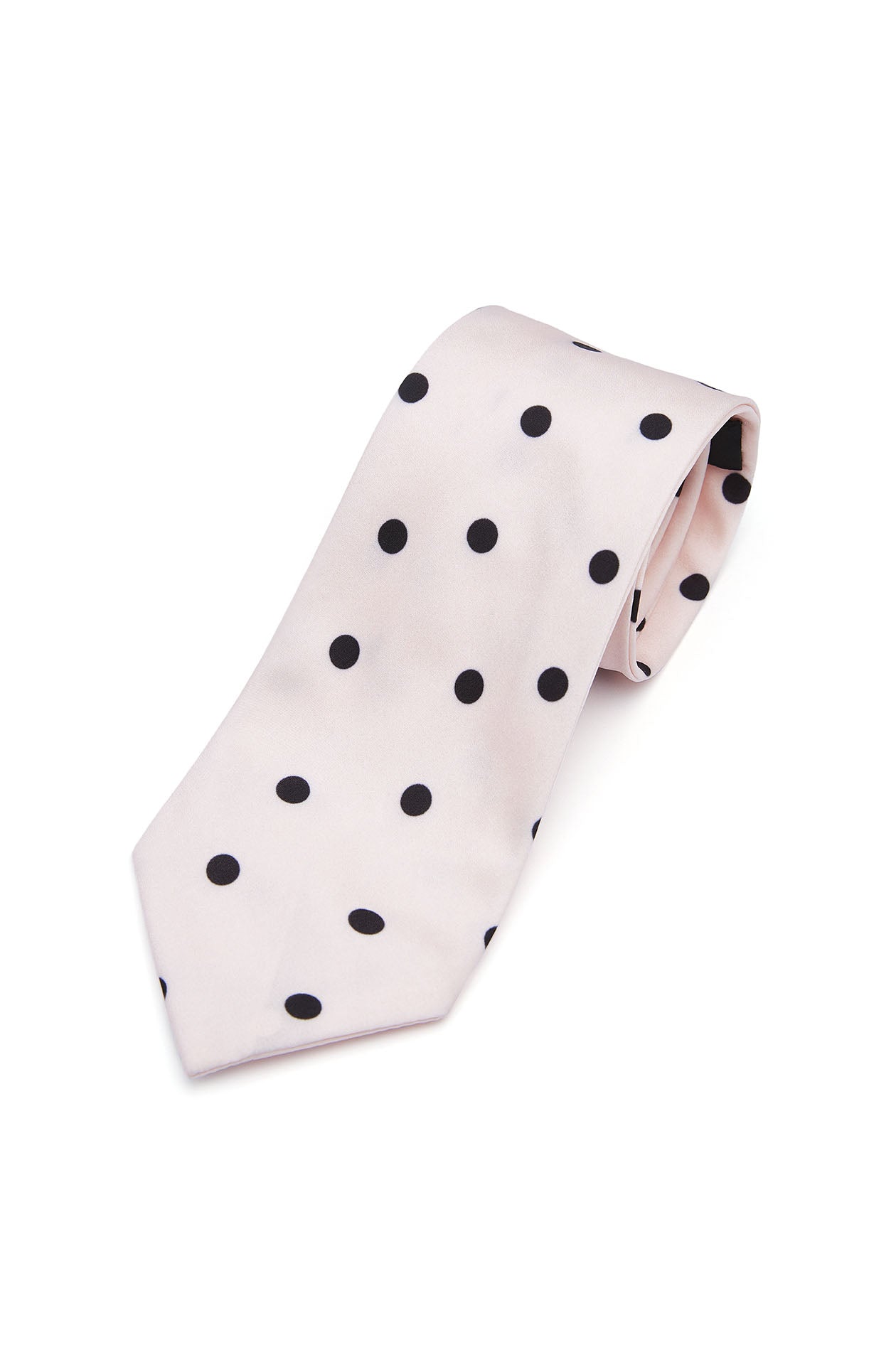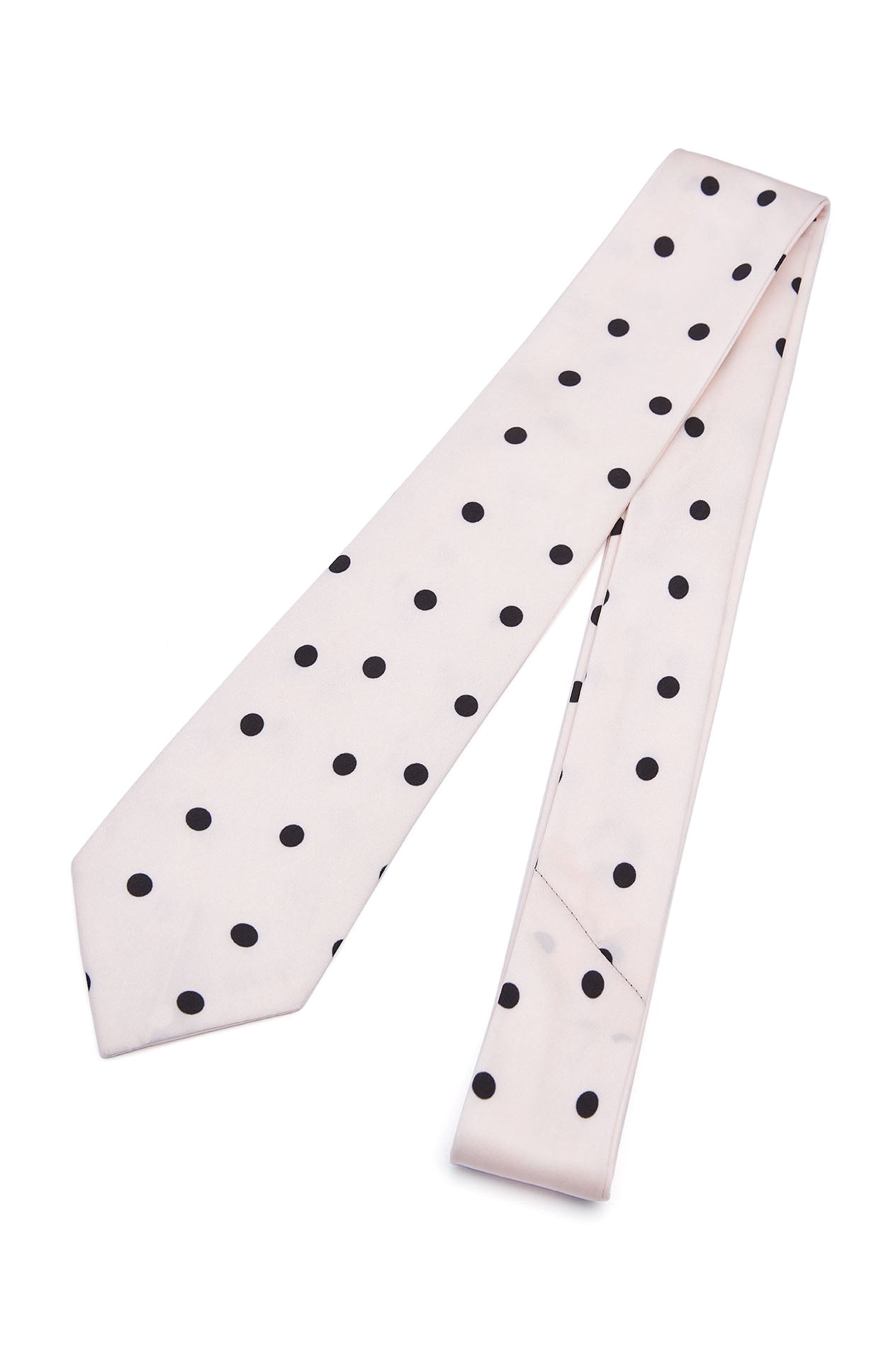 Jaspal The Edit x Proud & Tan | A sleek necktie crafted from smooth sateen fabric, elevated with a bold contrast dot pattern. A polished statement piece that brings a touch of playful sophistication to any look. Available in black and pink.