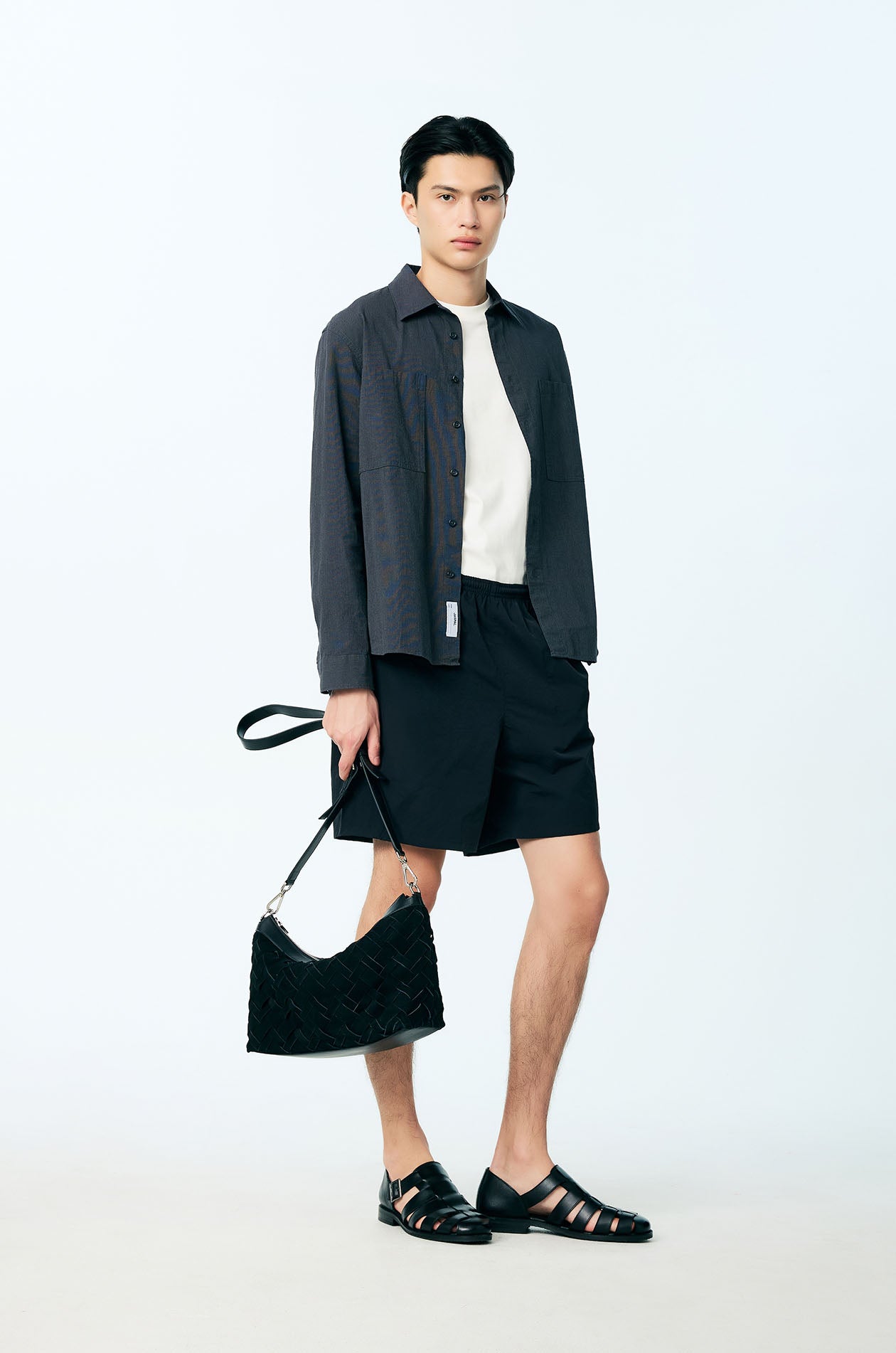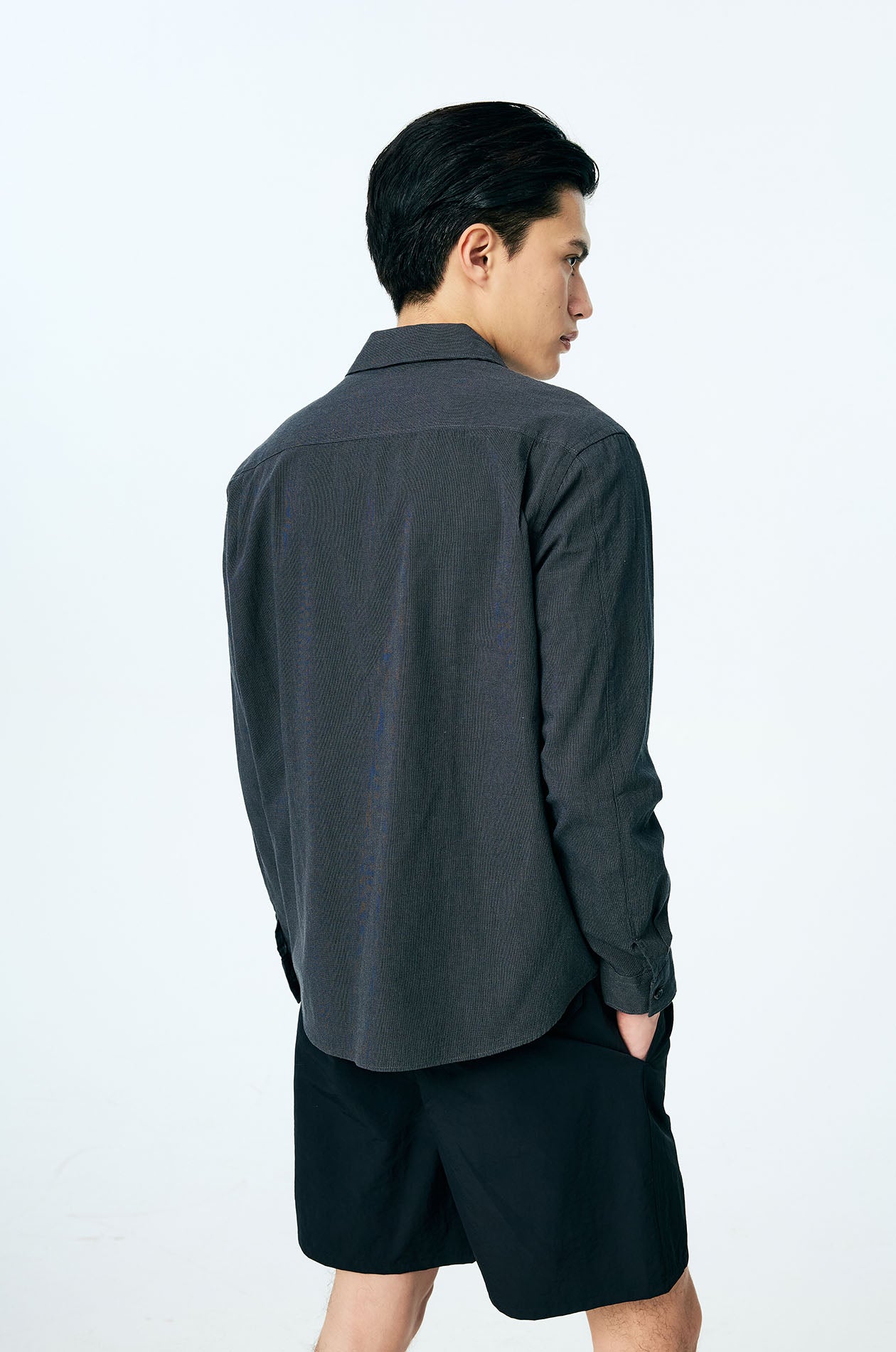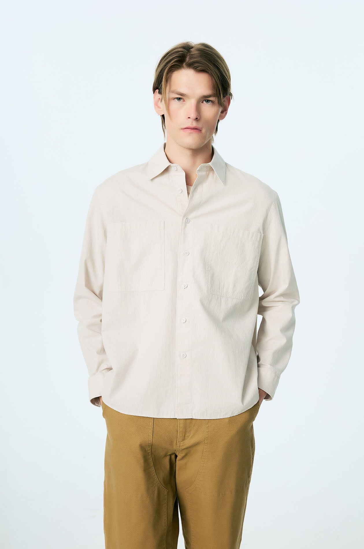 Long-sleeved shirt crafted from micro-textured cotton. Designed in a regular fit with a classic collar and oversized chest pockets for a clean, functional look. Front button closure. Available in light beige and navy.