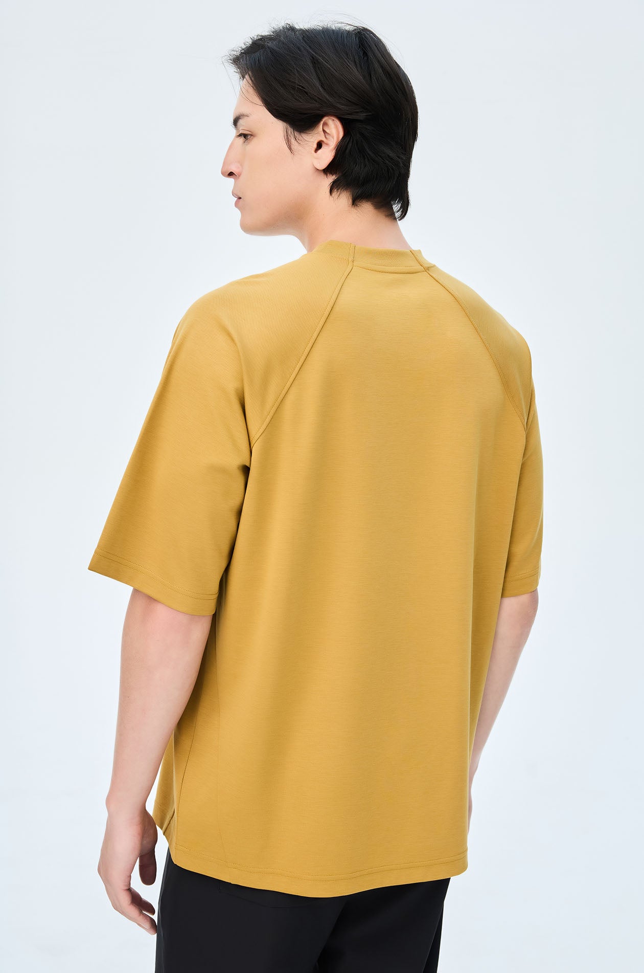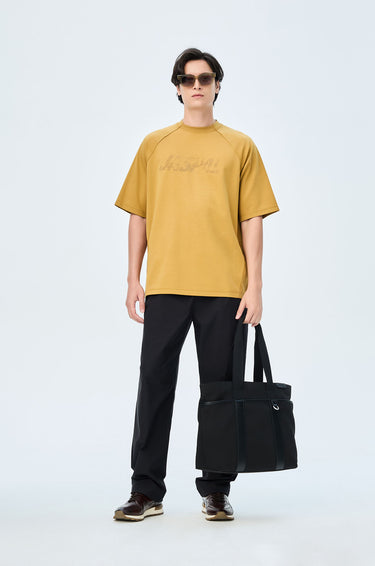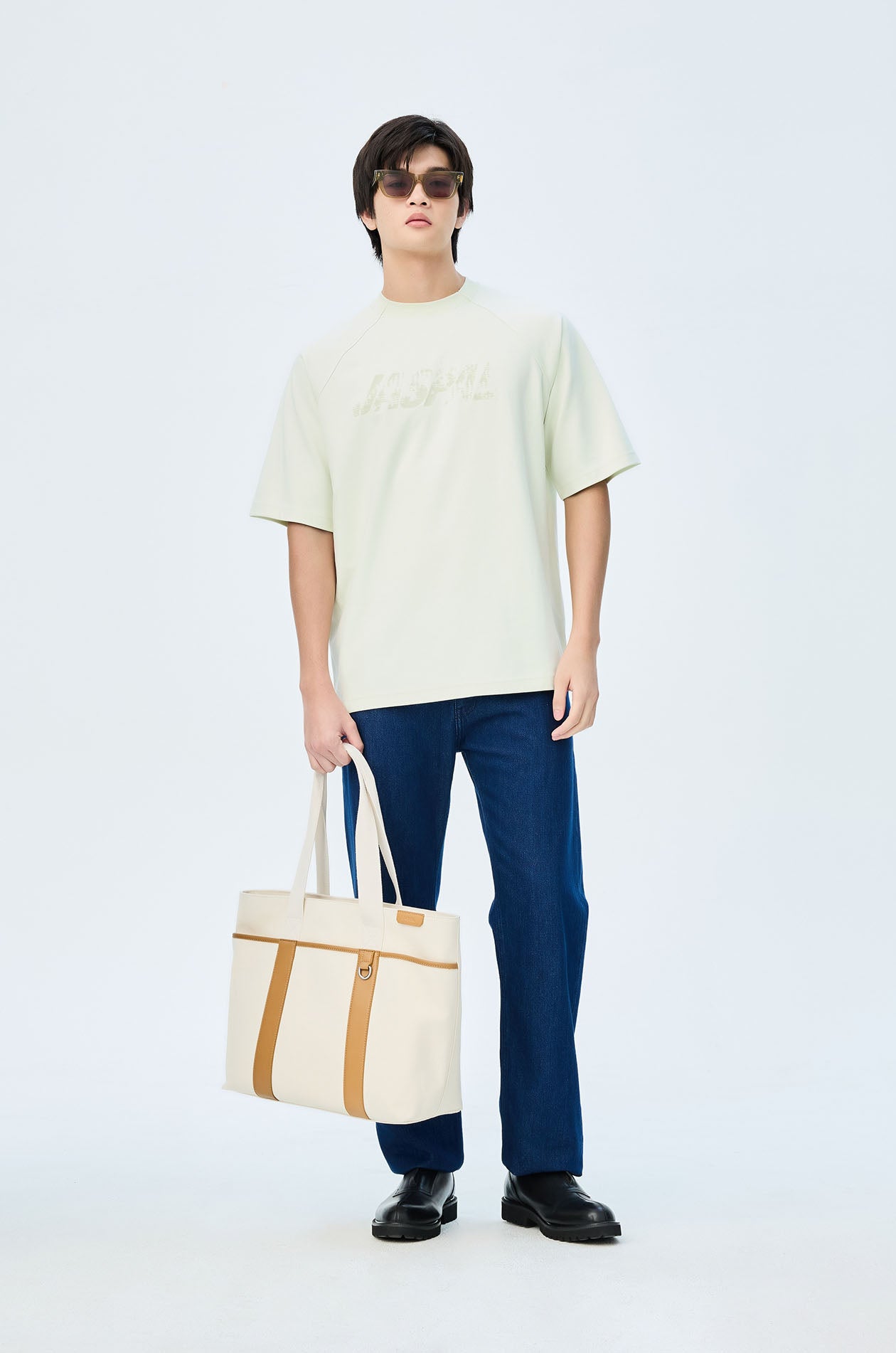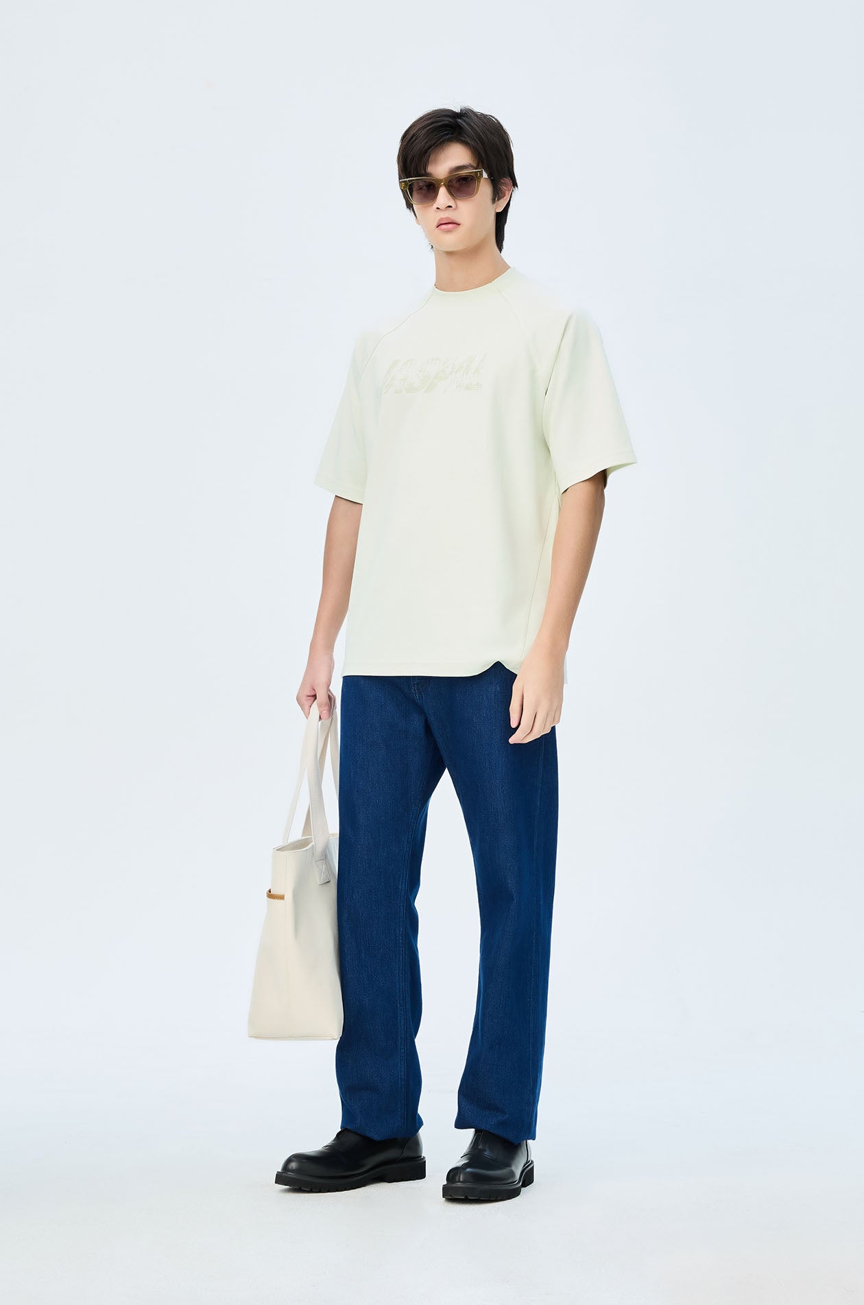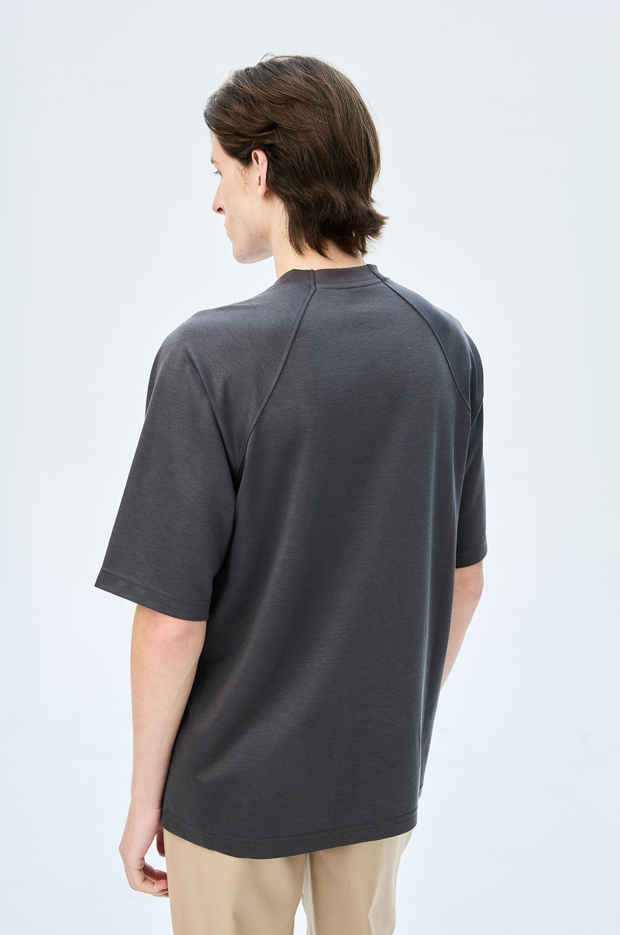 Short-sleeved T-shirt in slub jersey. Oversized fit with round neckline and Jaspal logo in weathered flock for a vintage effect. Available in pale lime, camel brown, and dark grey.