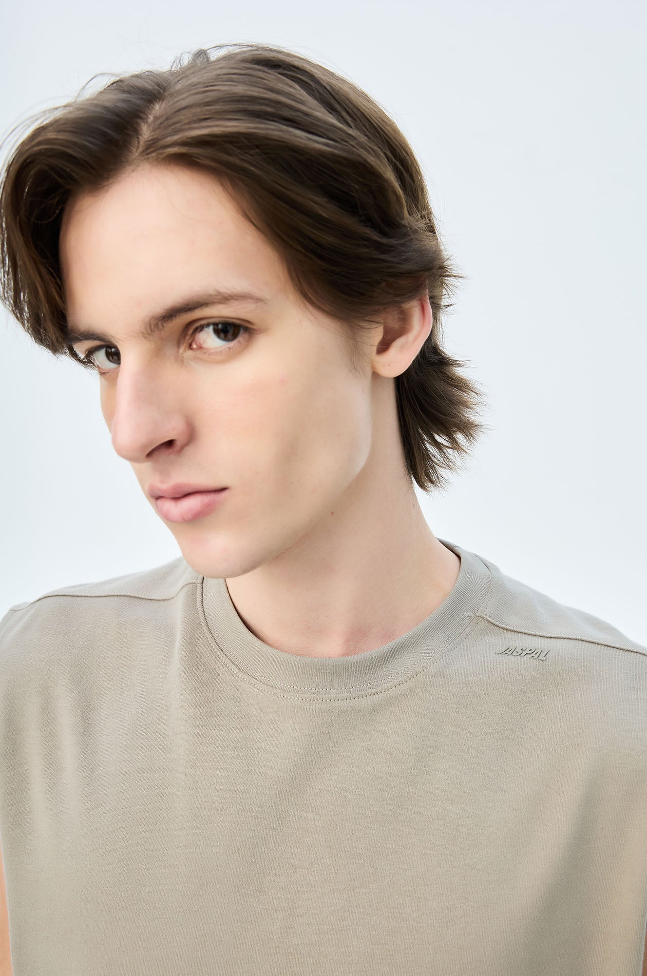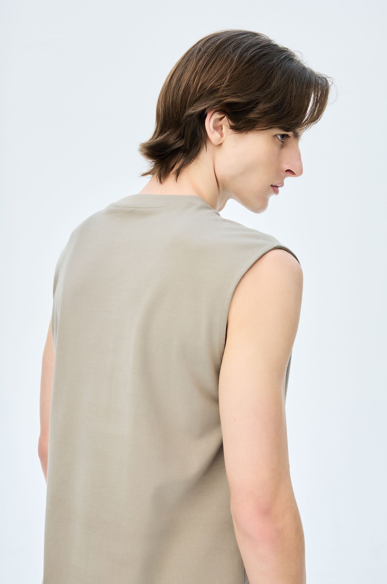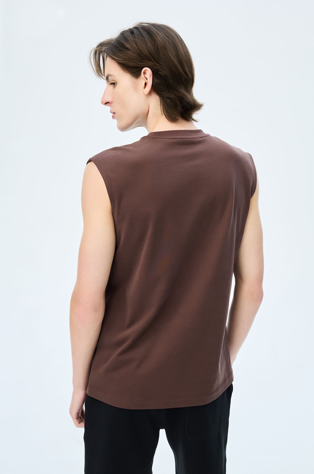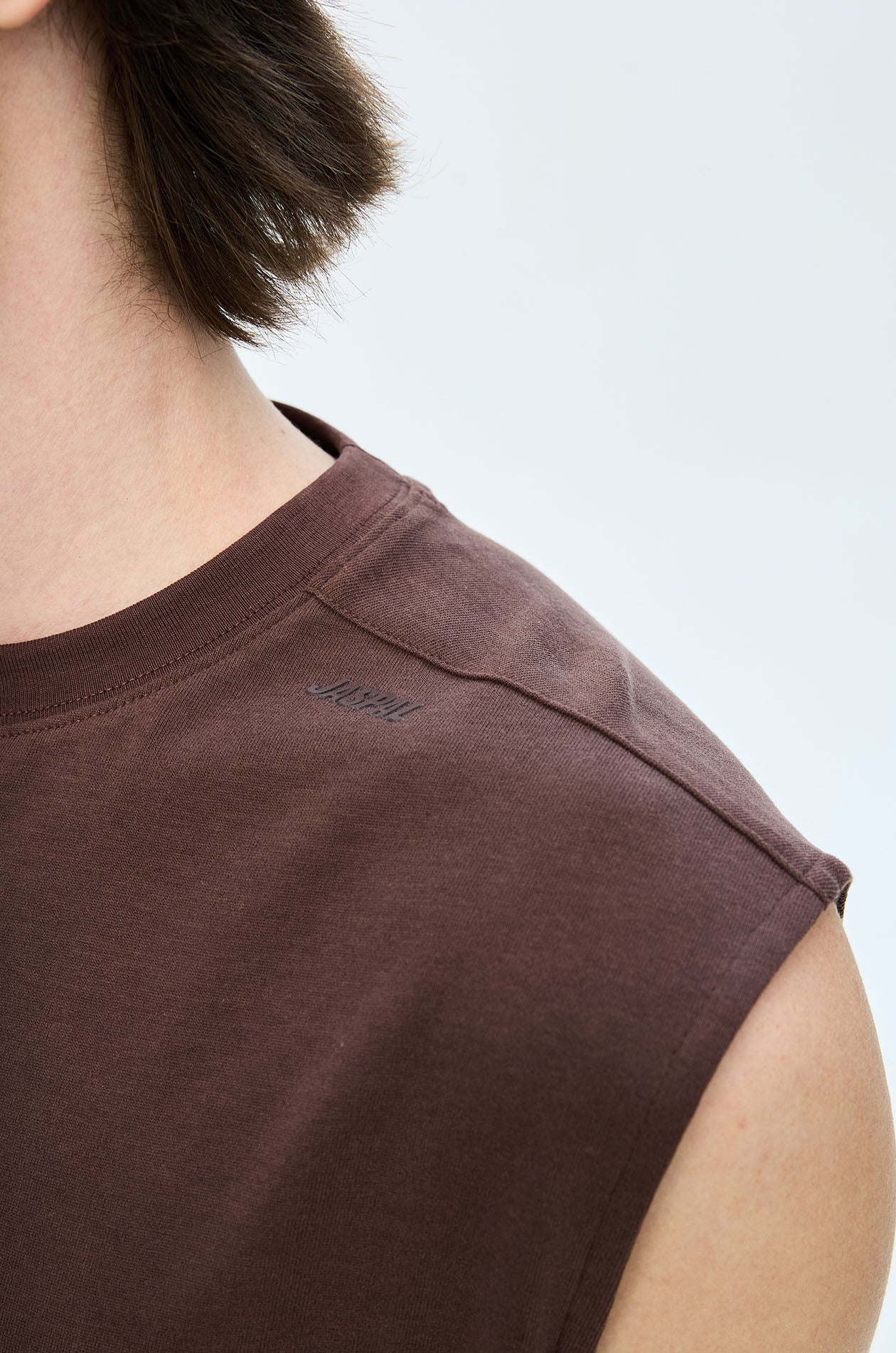 Sleeveless T-shirt in soft-finish jersey. Relaxed fit with round neckline. Available in cream, olive brown, dark brown, and black.