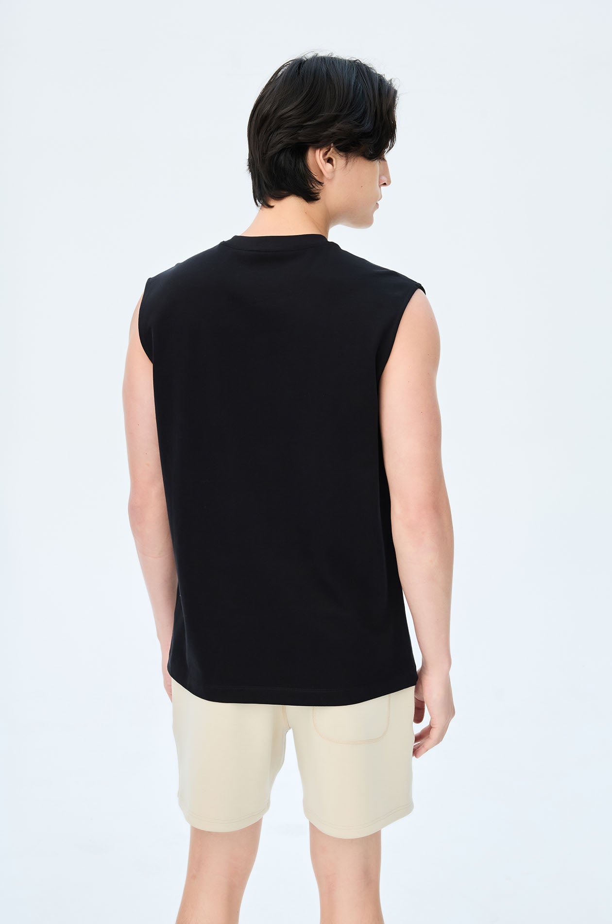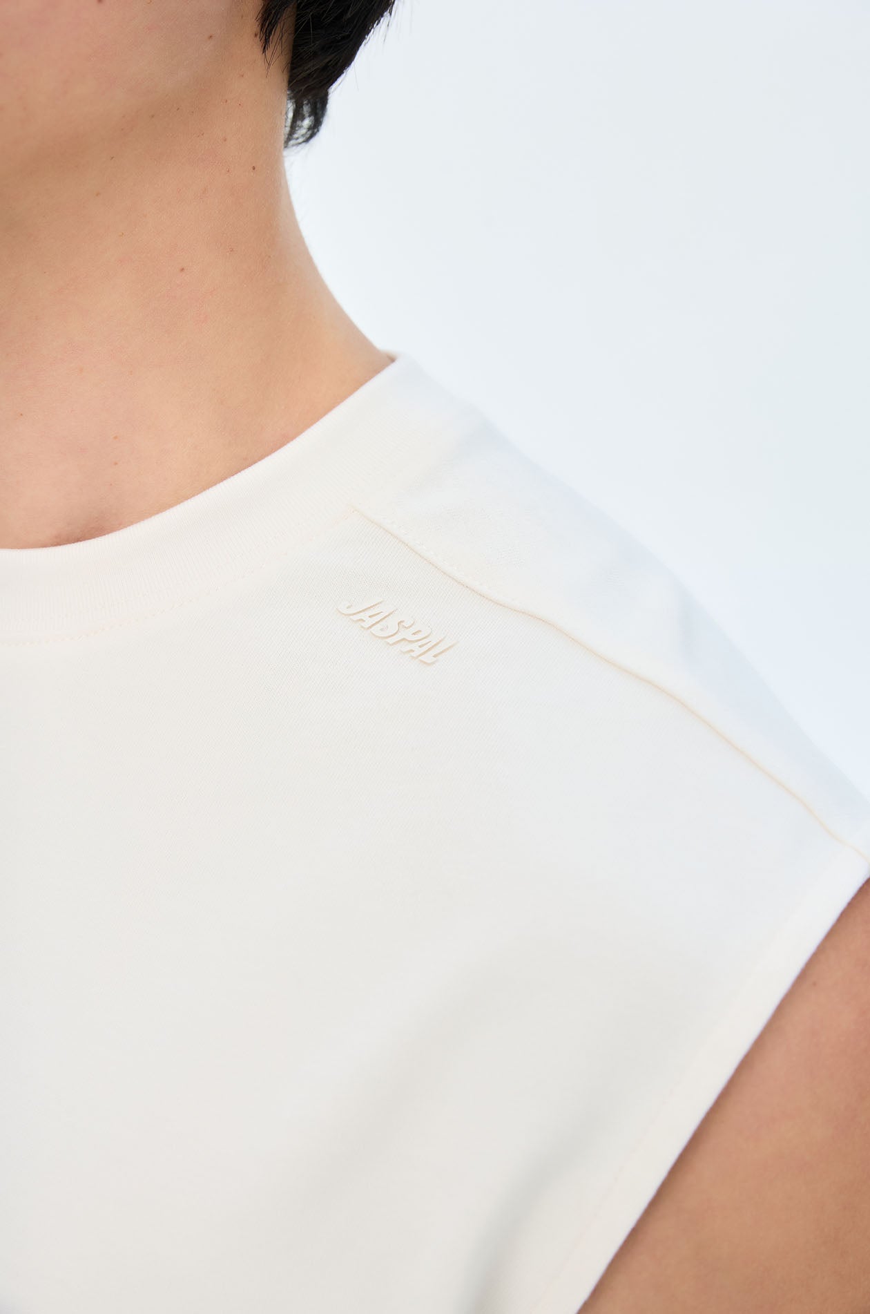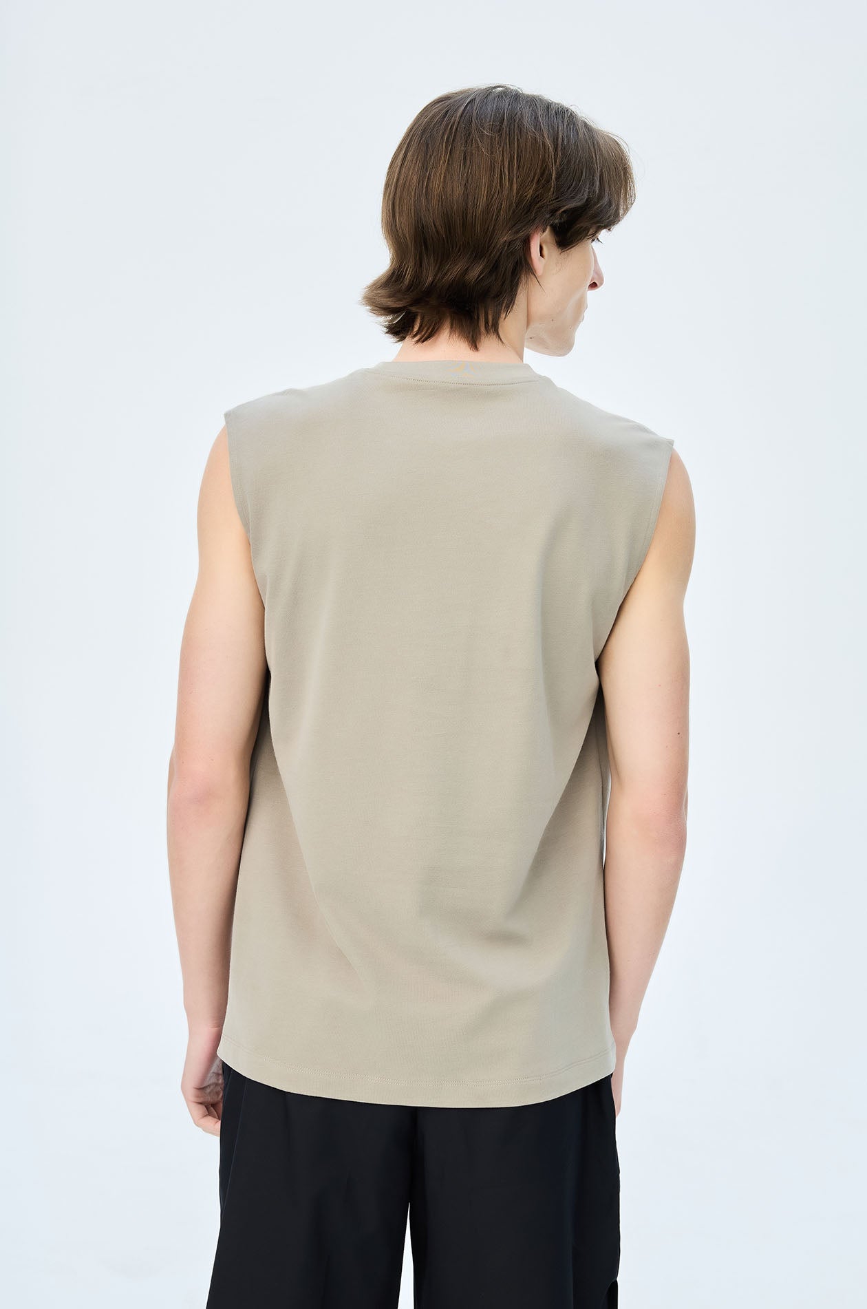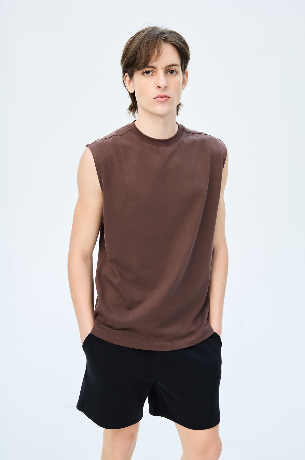 Sleeveless T-shirt in soft-finish jersey. Relaxed fit with round neckline. Available in cream, olive brown, dark brown, and black.