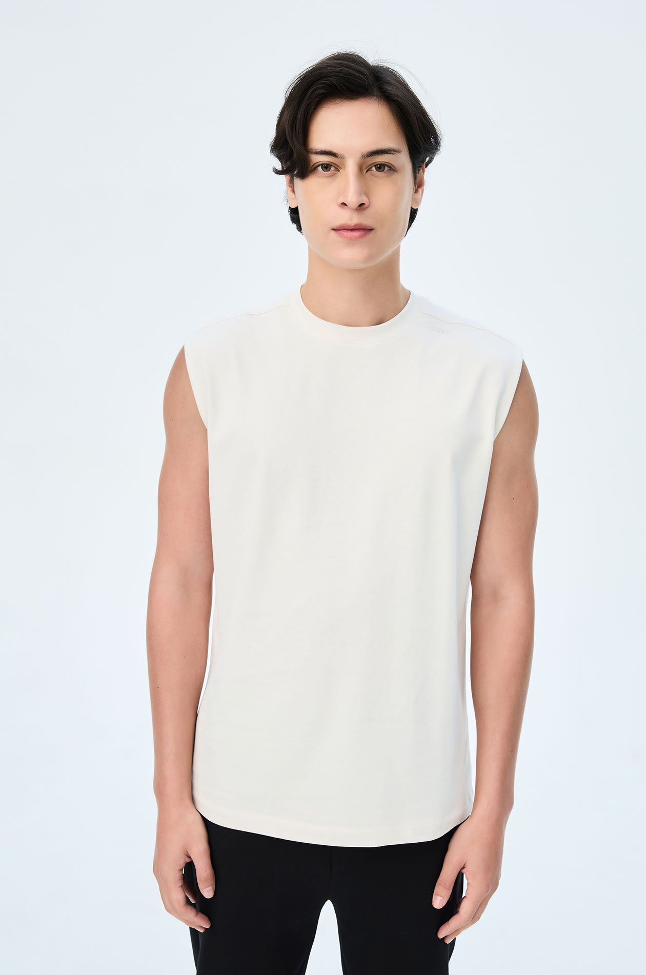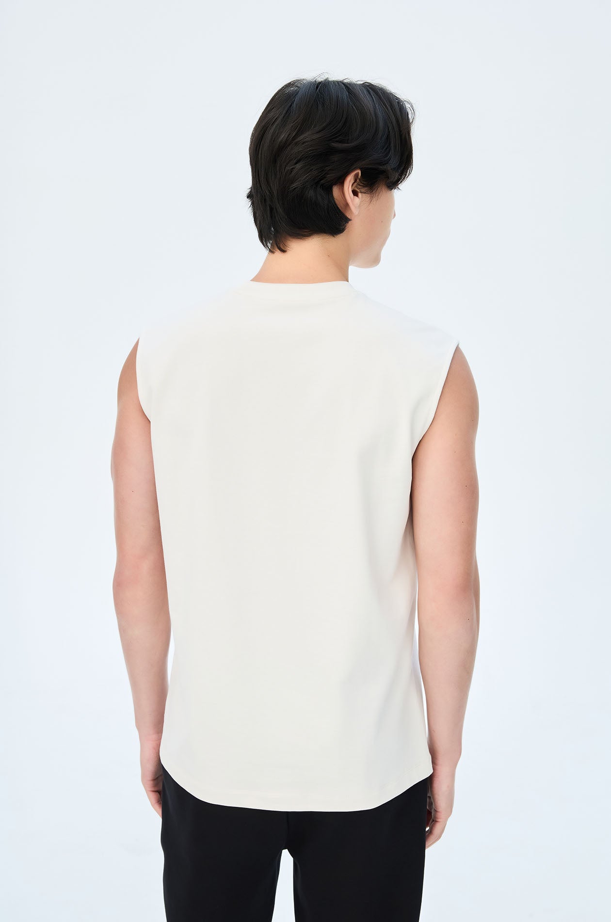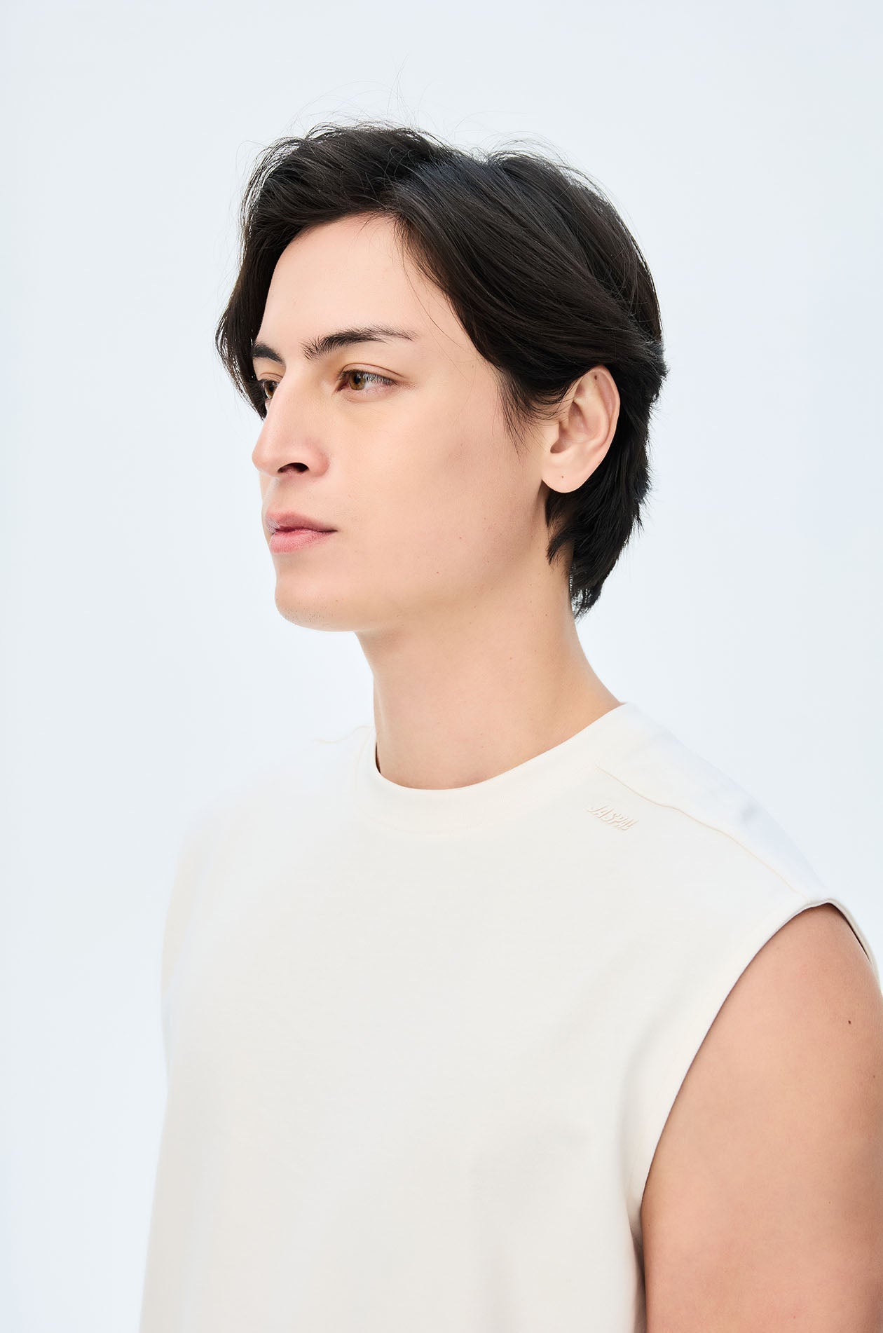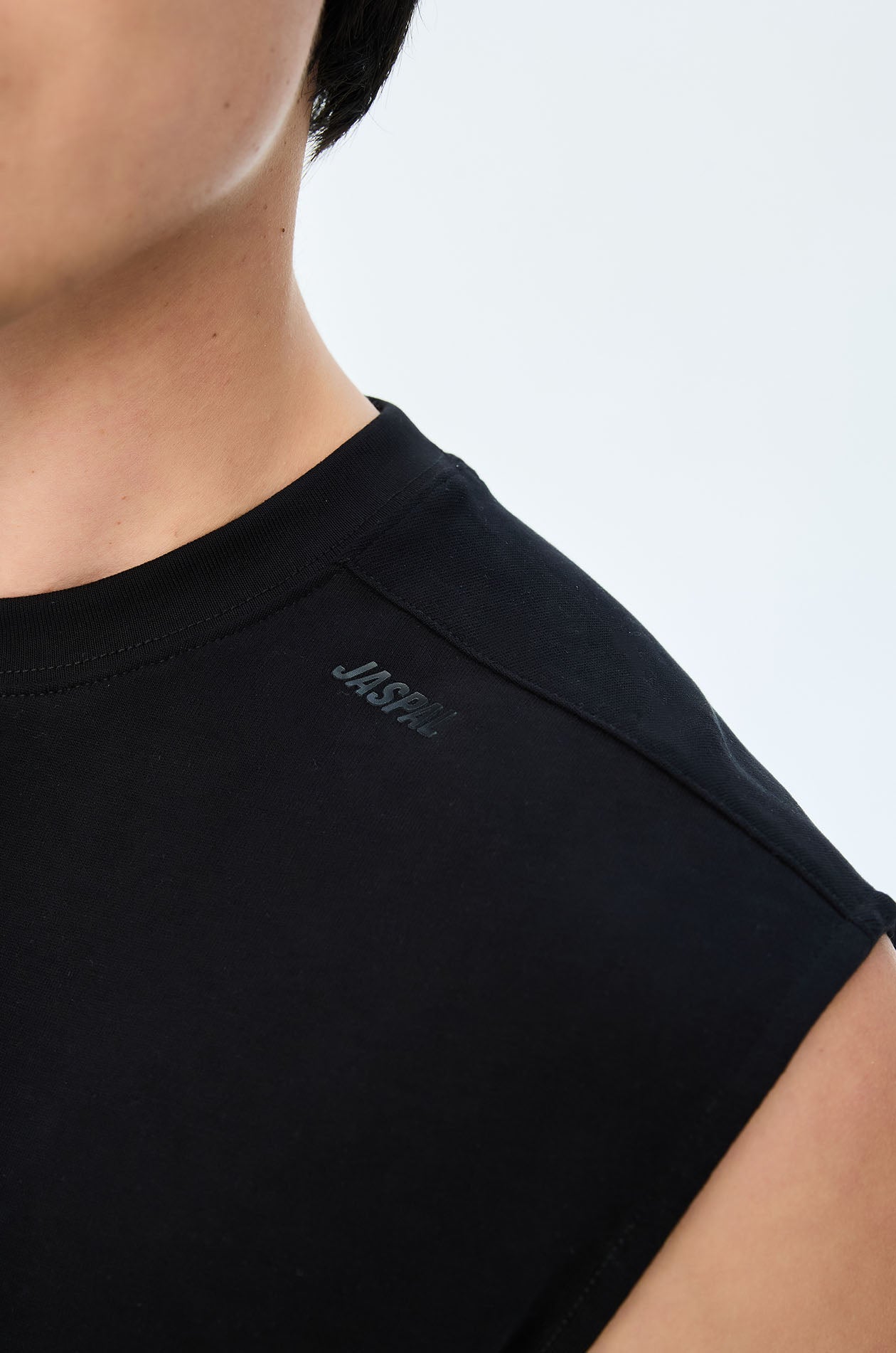 Sleeveless T-shirt in soft-finish jersey. Relaxed fit with round neckline. Available in cream, olive brown, dark brown, and black.