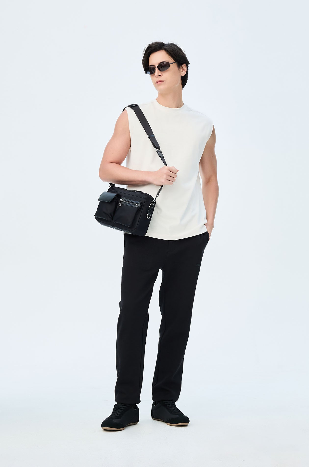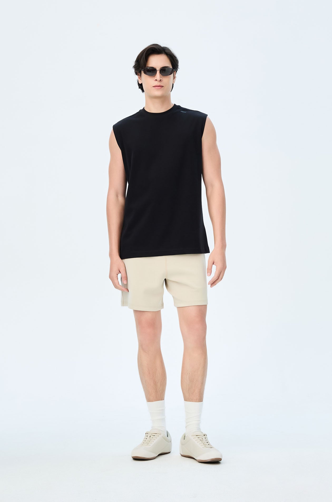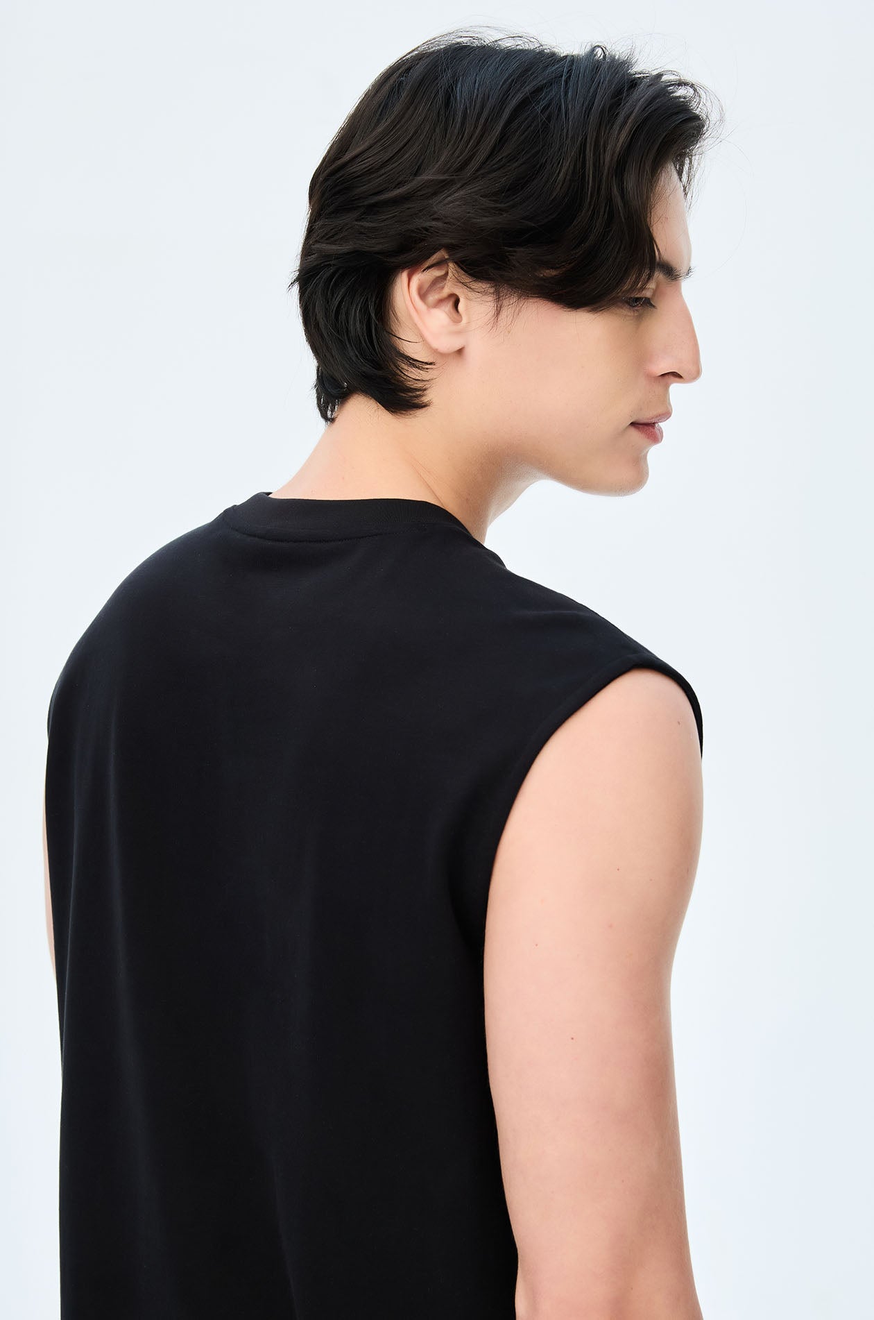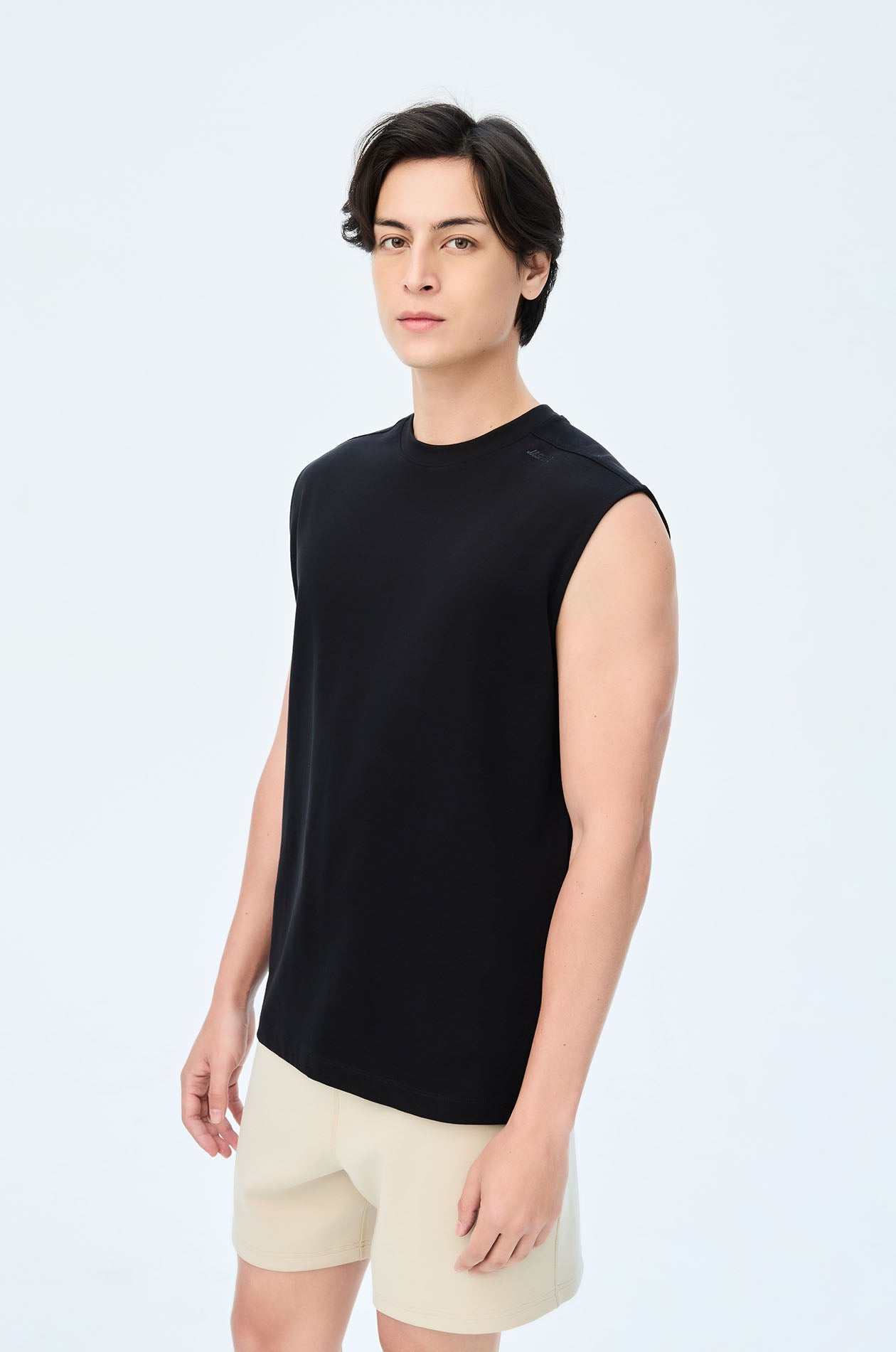 Sleeveless T-shirt in soft-finish jersey. Relaxed fit with round neckline. Available in cream, olive brown, dark brown, and black.