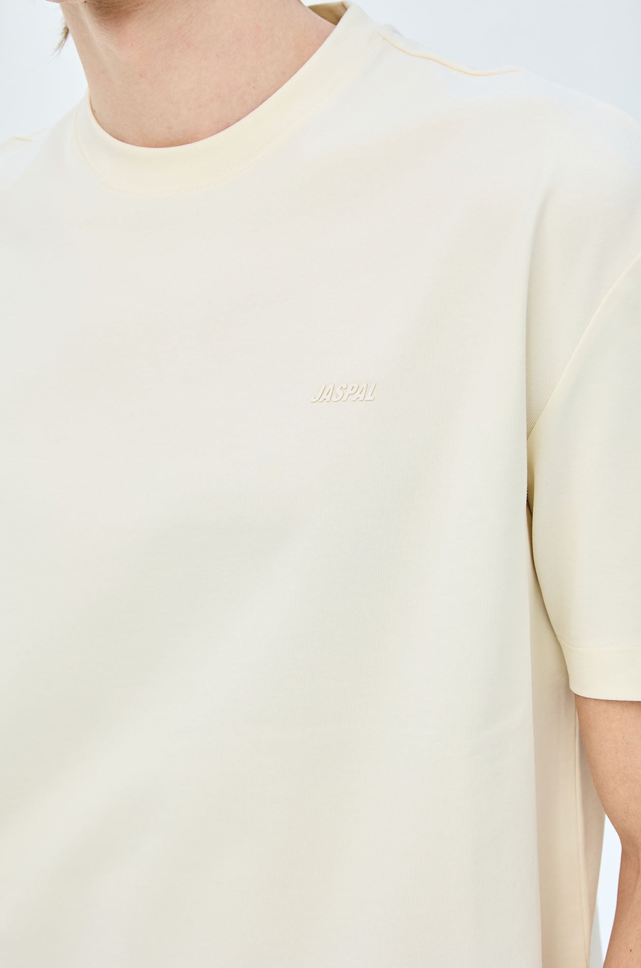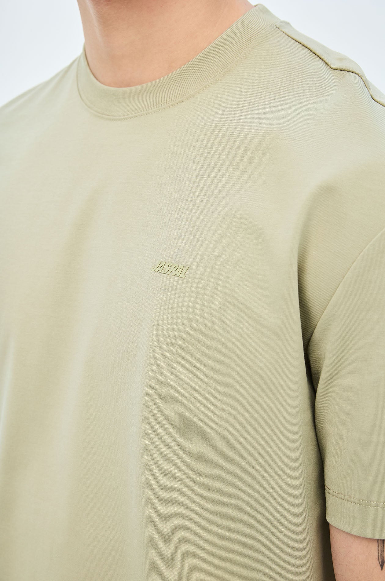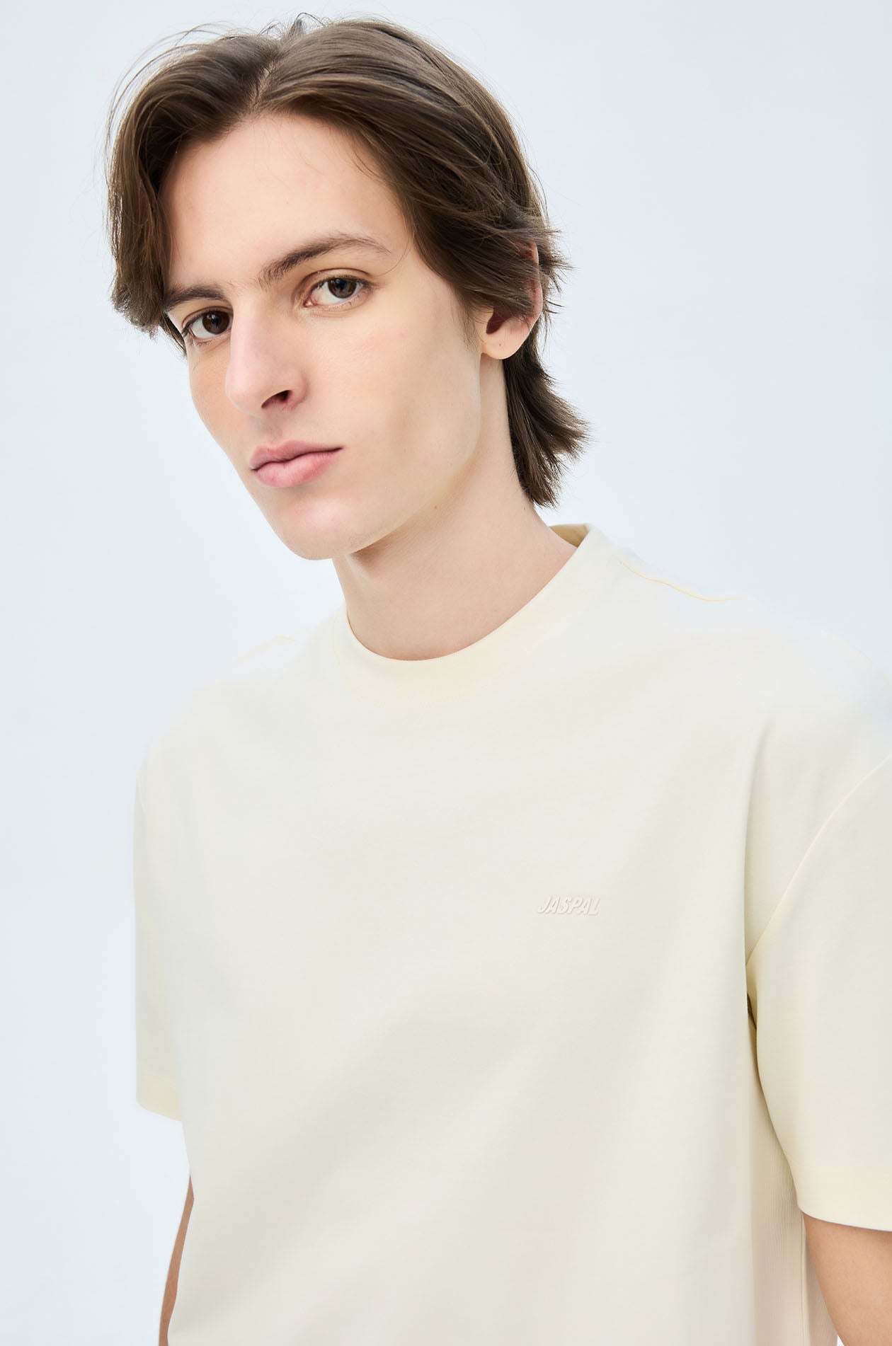 Short-sleeved T-shirt in cotton-blend pique. Relaxed fit with round neckline and Jaspal logo at the chest. Available in light beige, navy, and olive brown.
