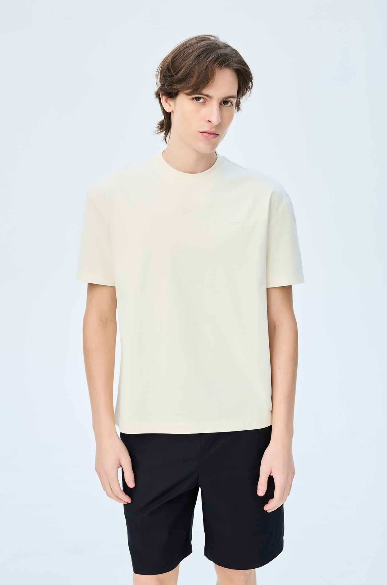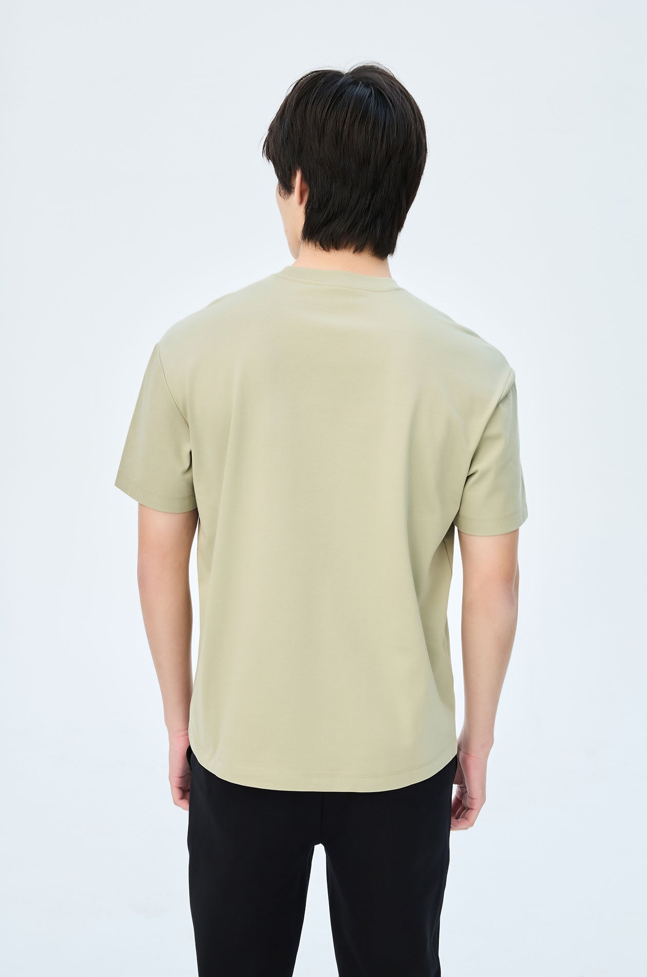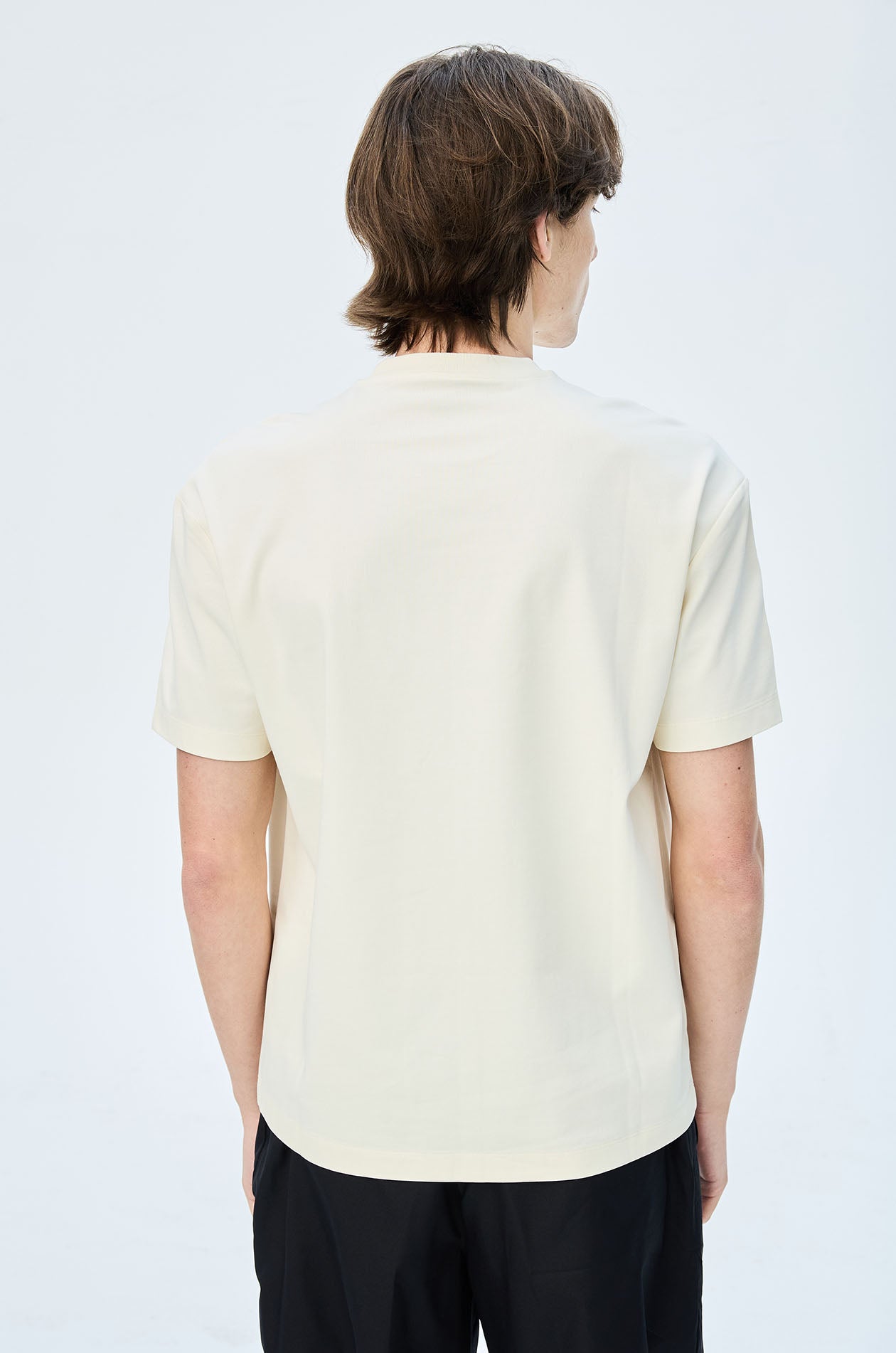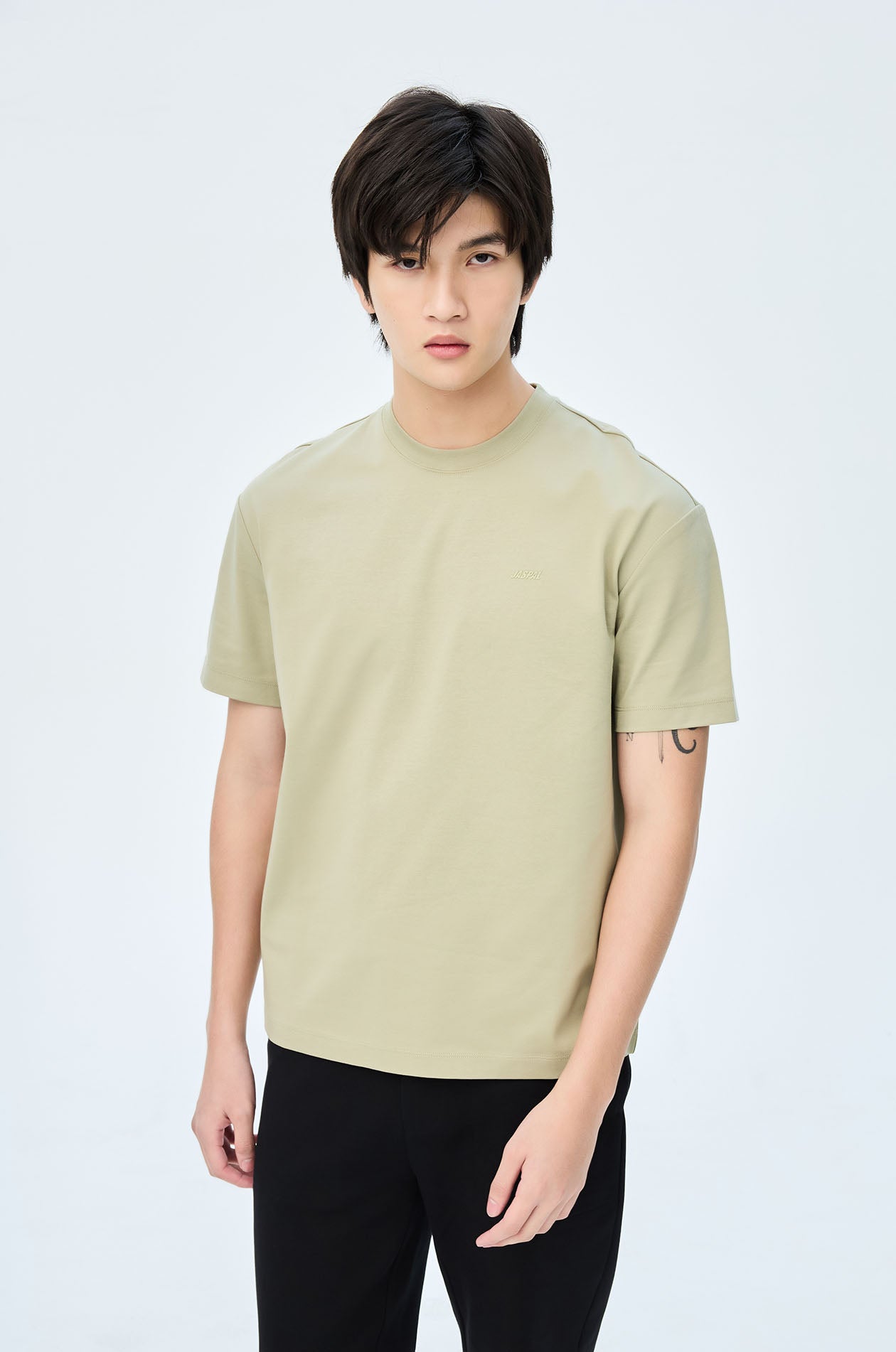 Short-sleeved T-shirt in cotton-blend pique. Relaxed fit with round neckline and Jaspal logo at the chest. Available in light beige, navy, and olive brown.