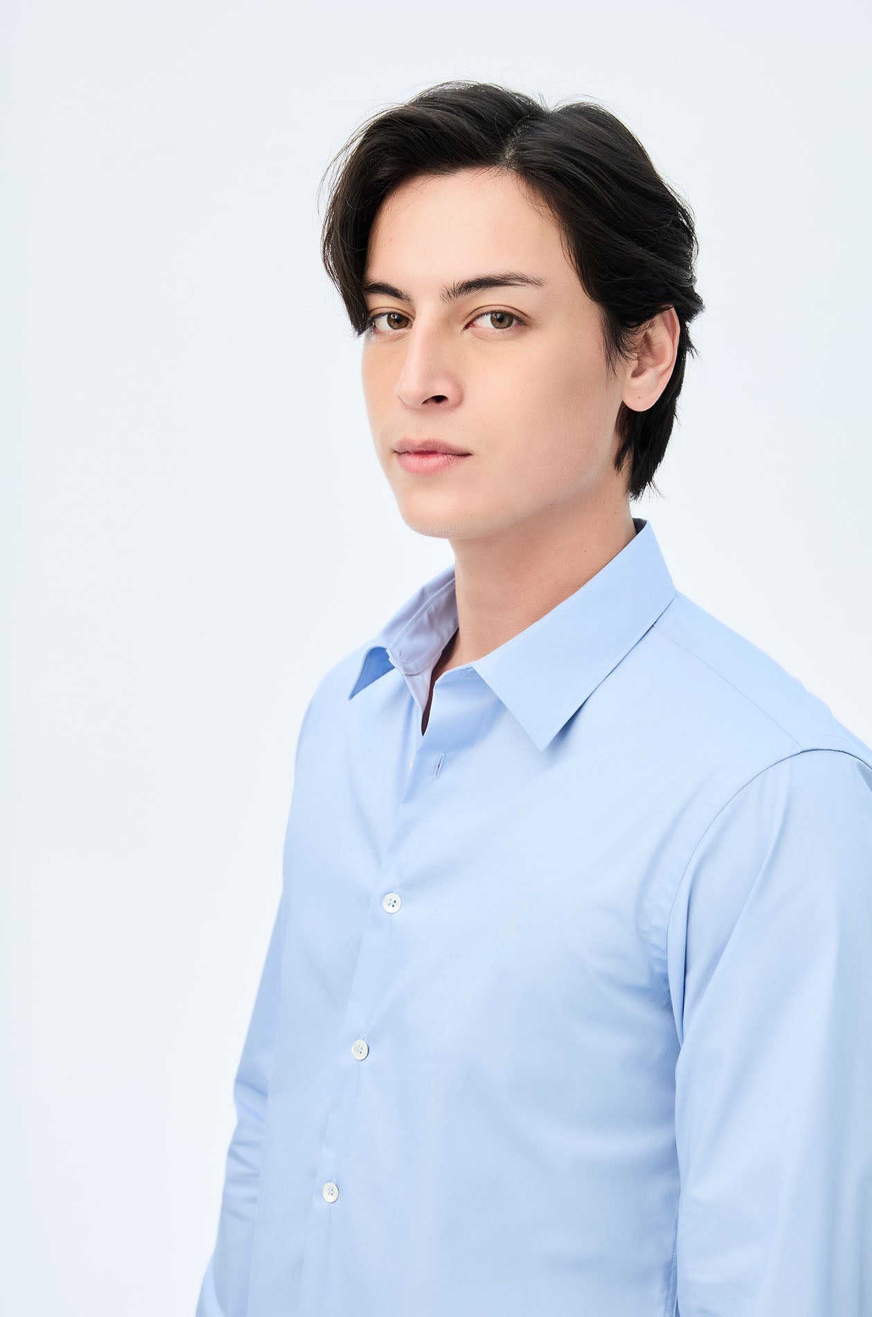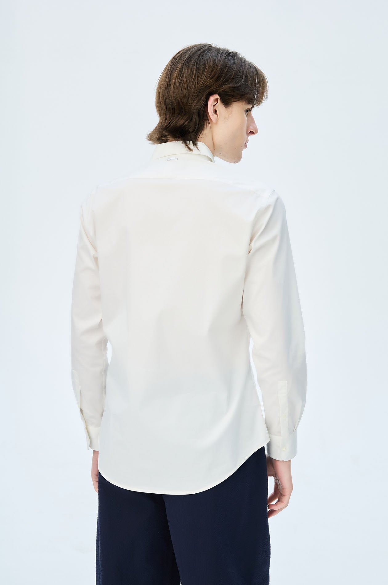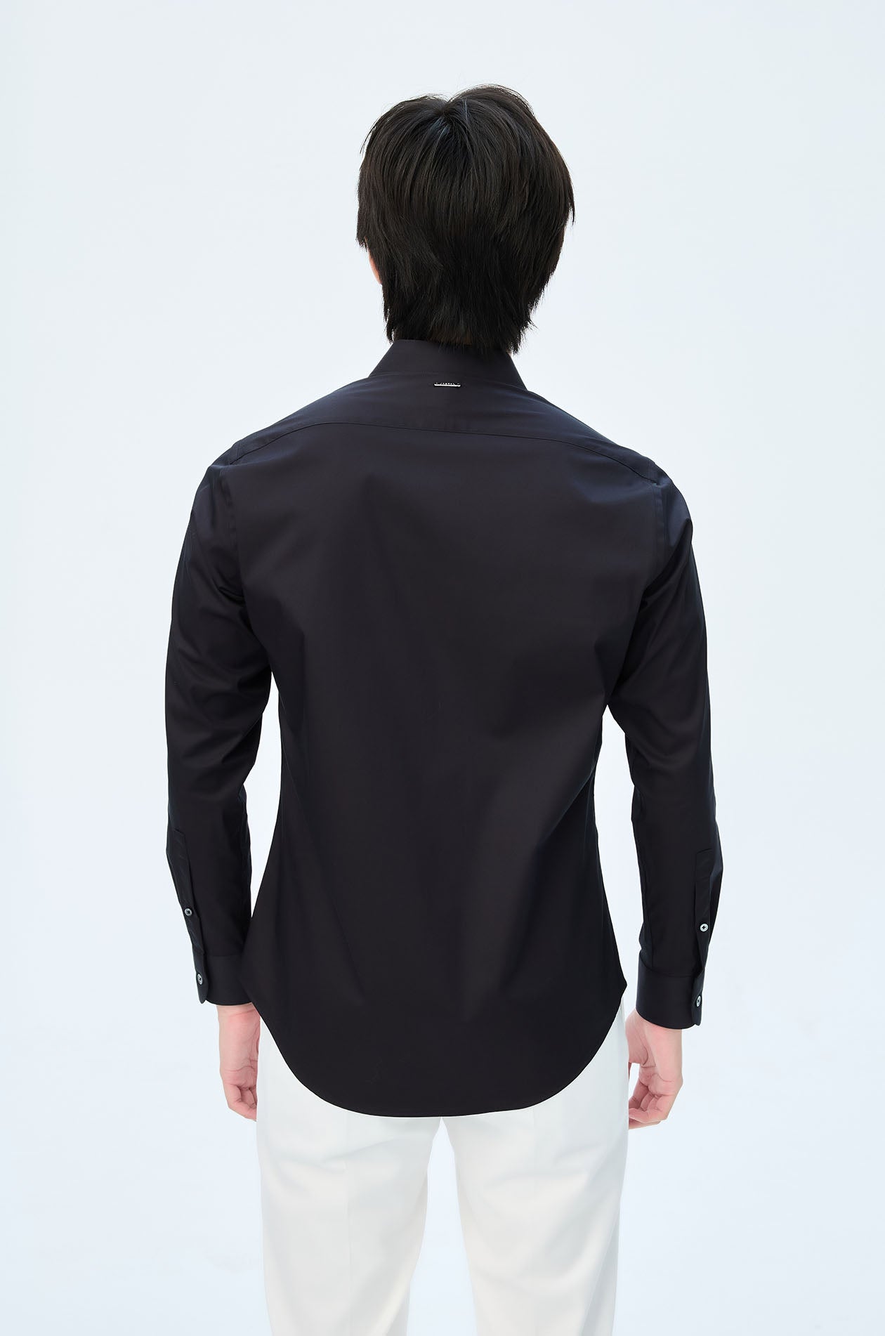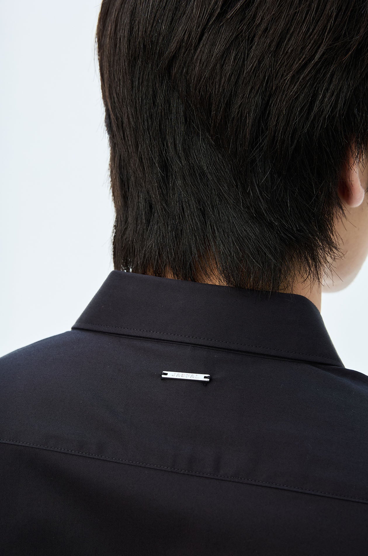 Long-sleeved shirt in poplin. Regular fit with classic collar and buttoned cuffs. Front button closure. Available in black, white, and blue.
