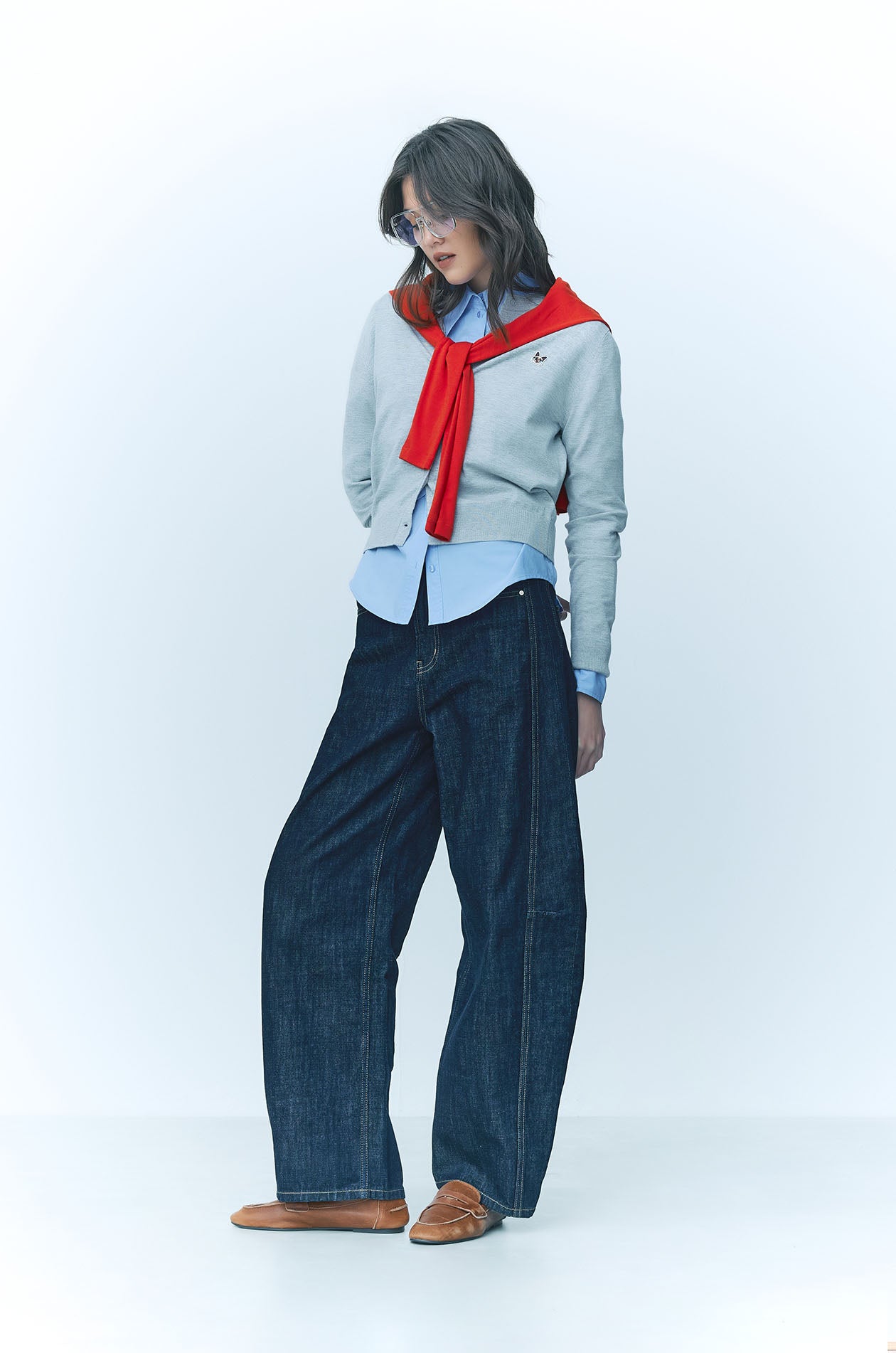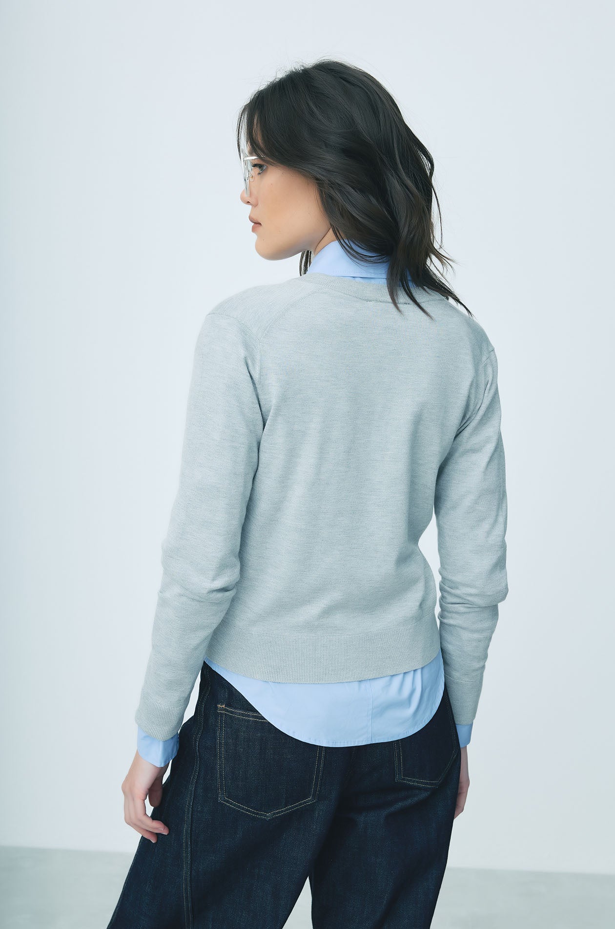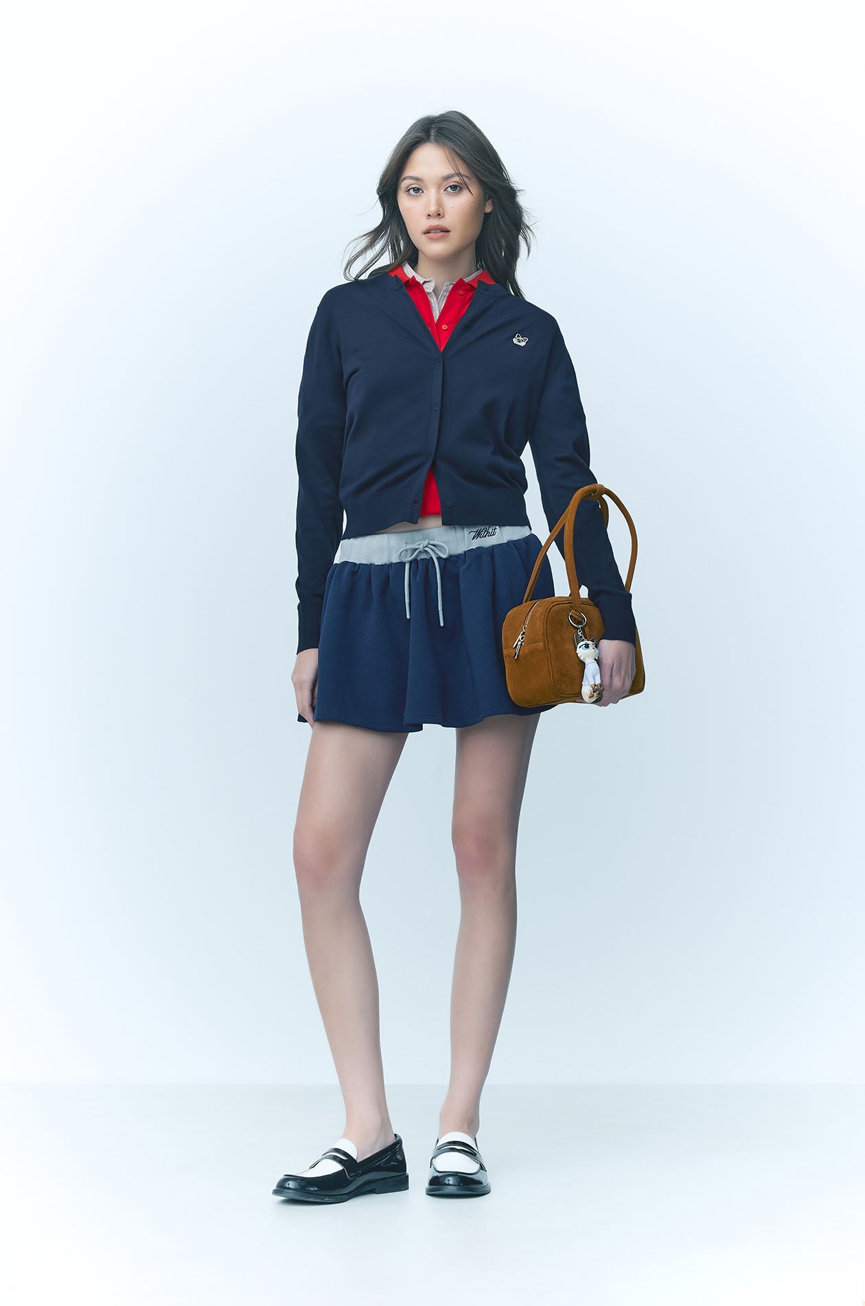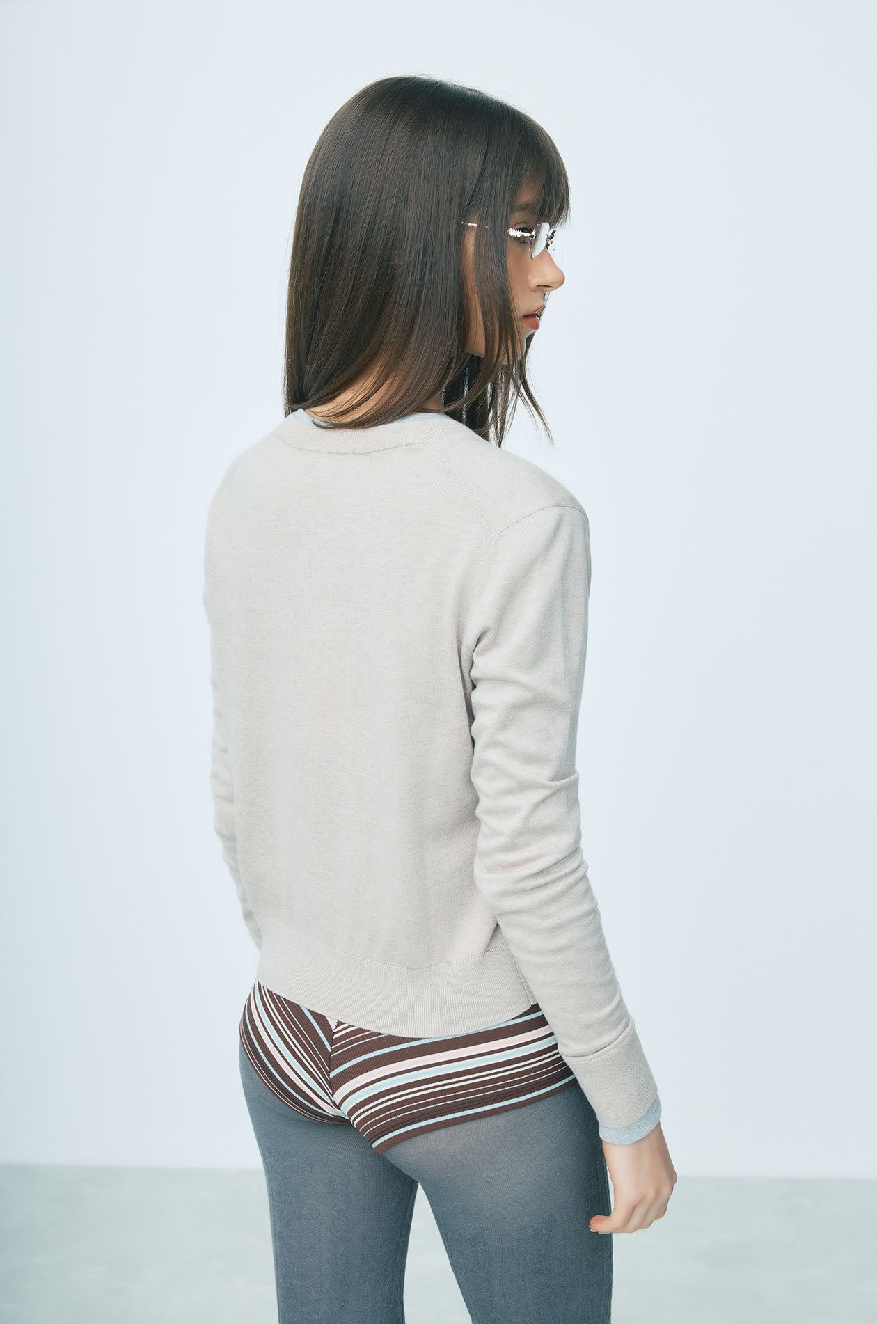 JASPURR | Long‑sleeved cardigan crafted from flat‑knit jersey in a comfortable regular fit. Detailed with cat applique at the chest and finished with ribbed edges and a round neckline for a soft, classic look. Available in beige, grey, and navy.