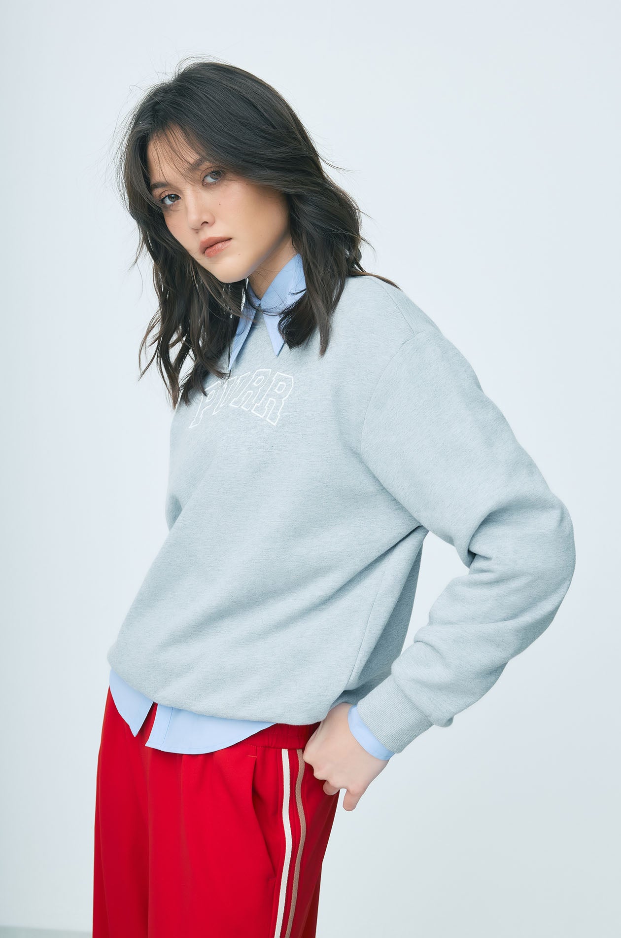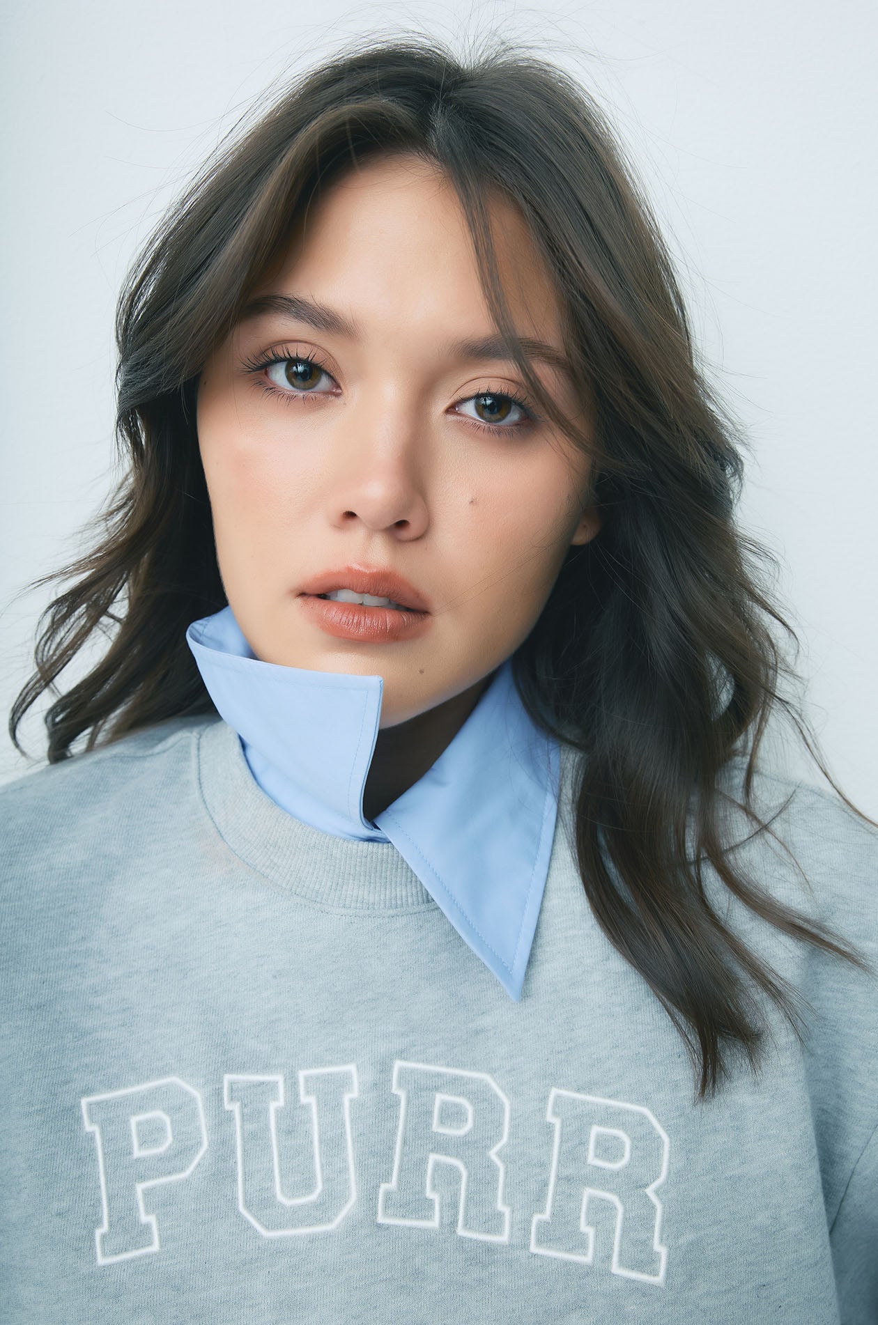 JASPURR | Long‑sleeved sweater crafted from soft French terry in a relaxed fit. Designed with a round neckline and embroidered 'PURR' at the front for a playful touch. Finished with ribbed edges for a neat, casual look. Available in grey.
