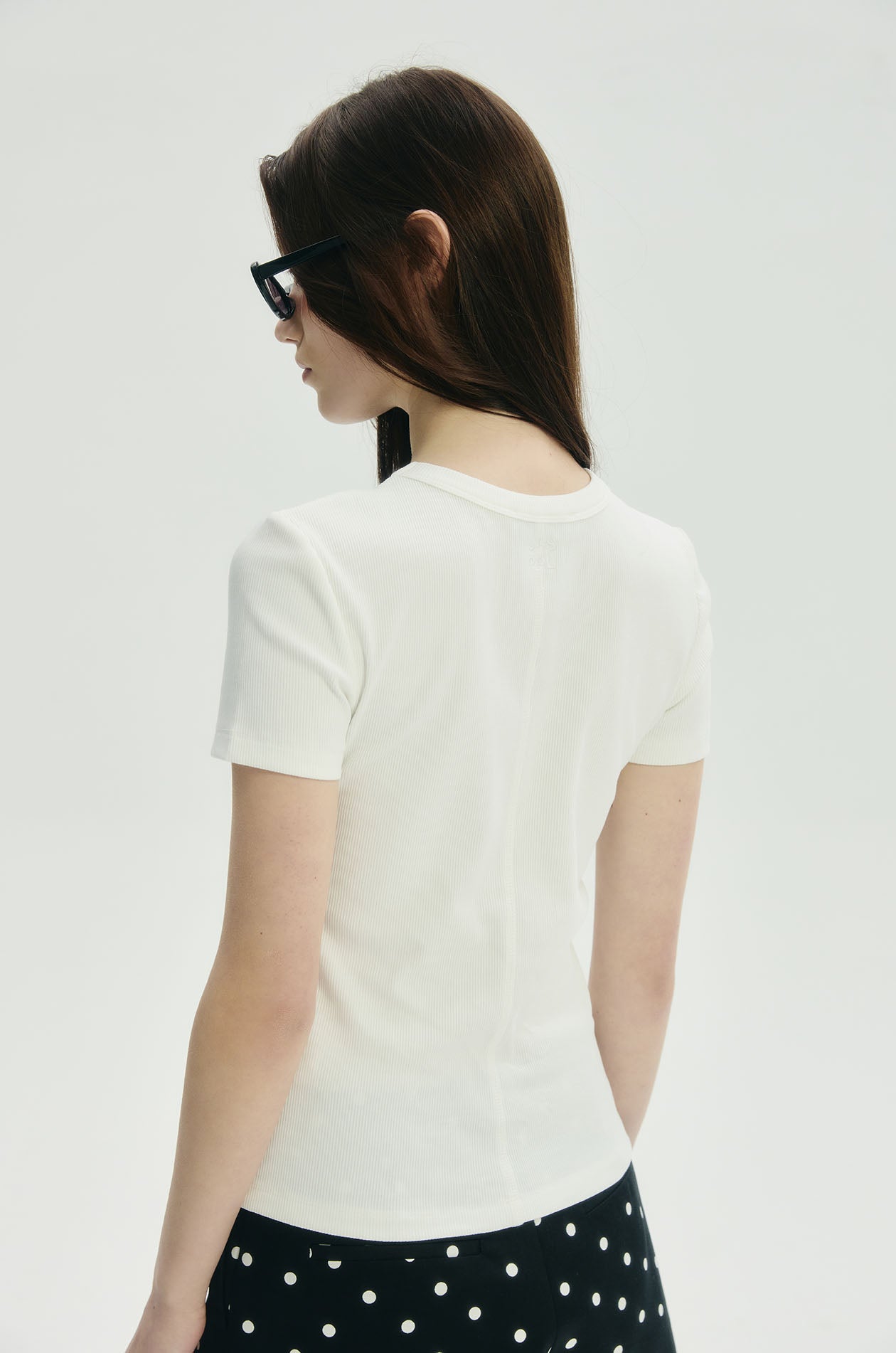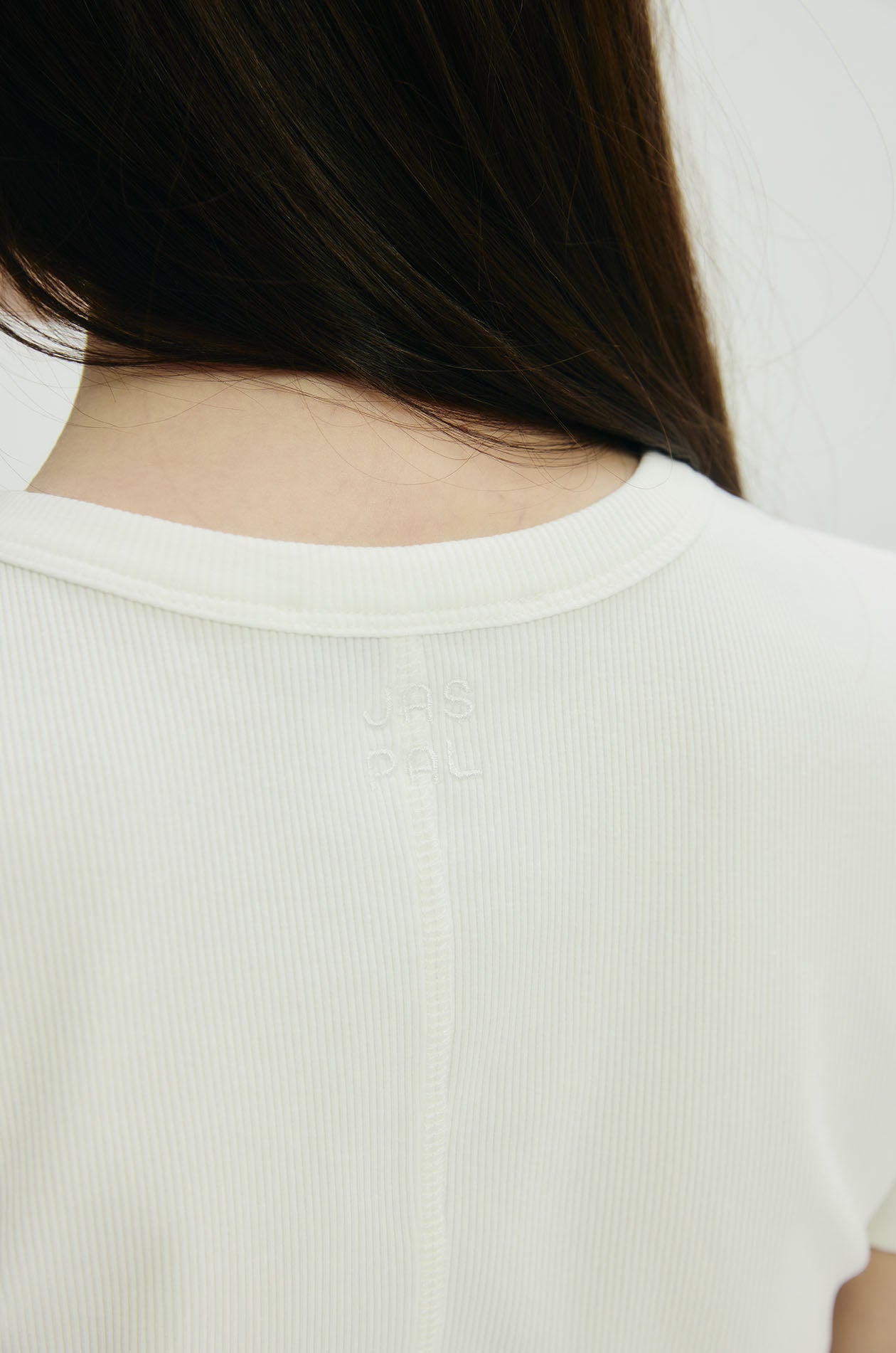 Short-sleeved T-shirt in ribbed knit fabric. Fitted silhouette with round neckline and Jaspal logo embroidery at back neck. Available in off-white.