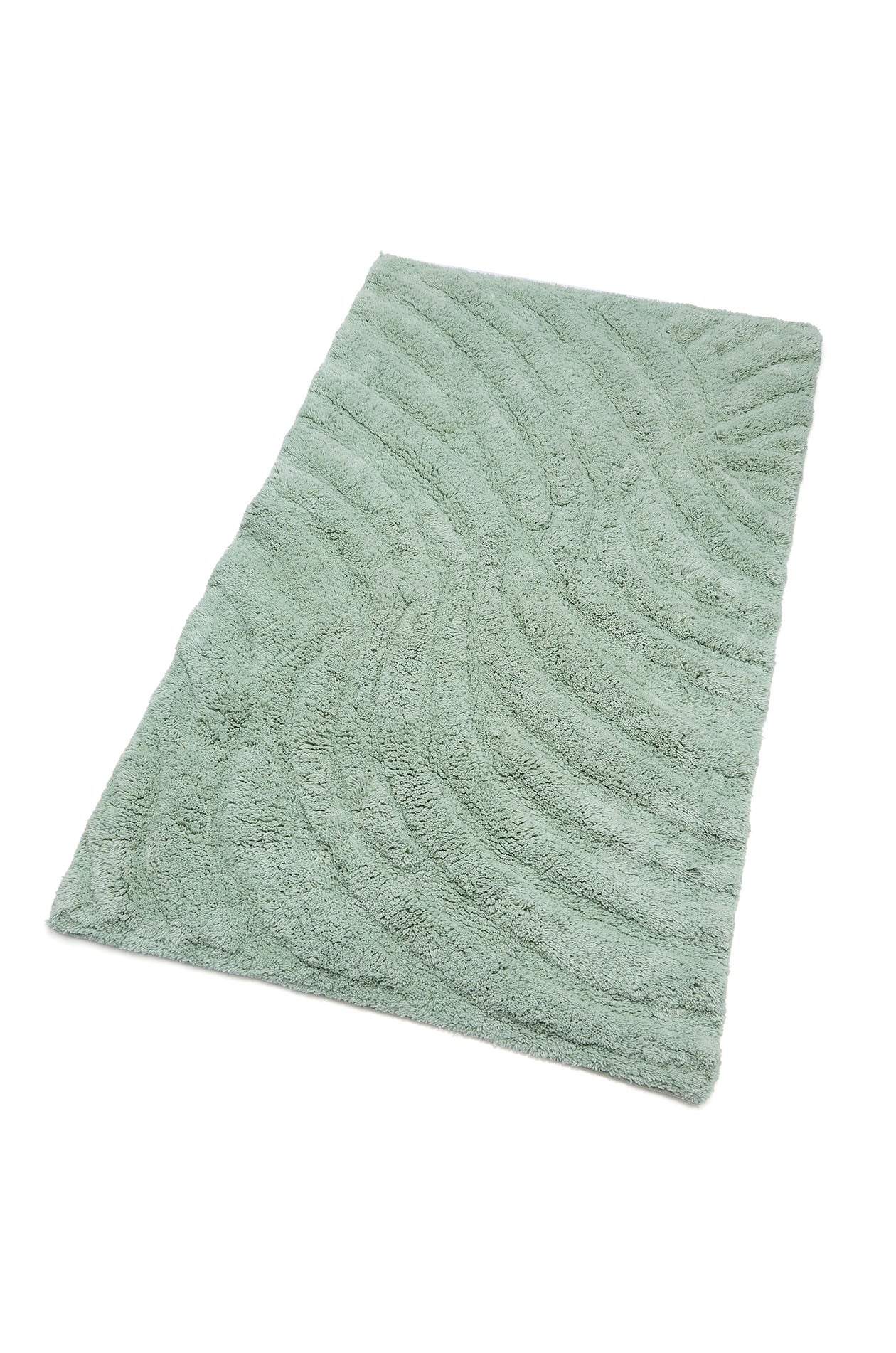 Soft and fluffy bath rug crafted from 100% cotton. Designed to add comfort underfoot while complementing bathrooms with a calm, neutral aesthetic. Available in green and off-white.