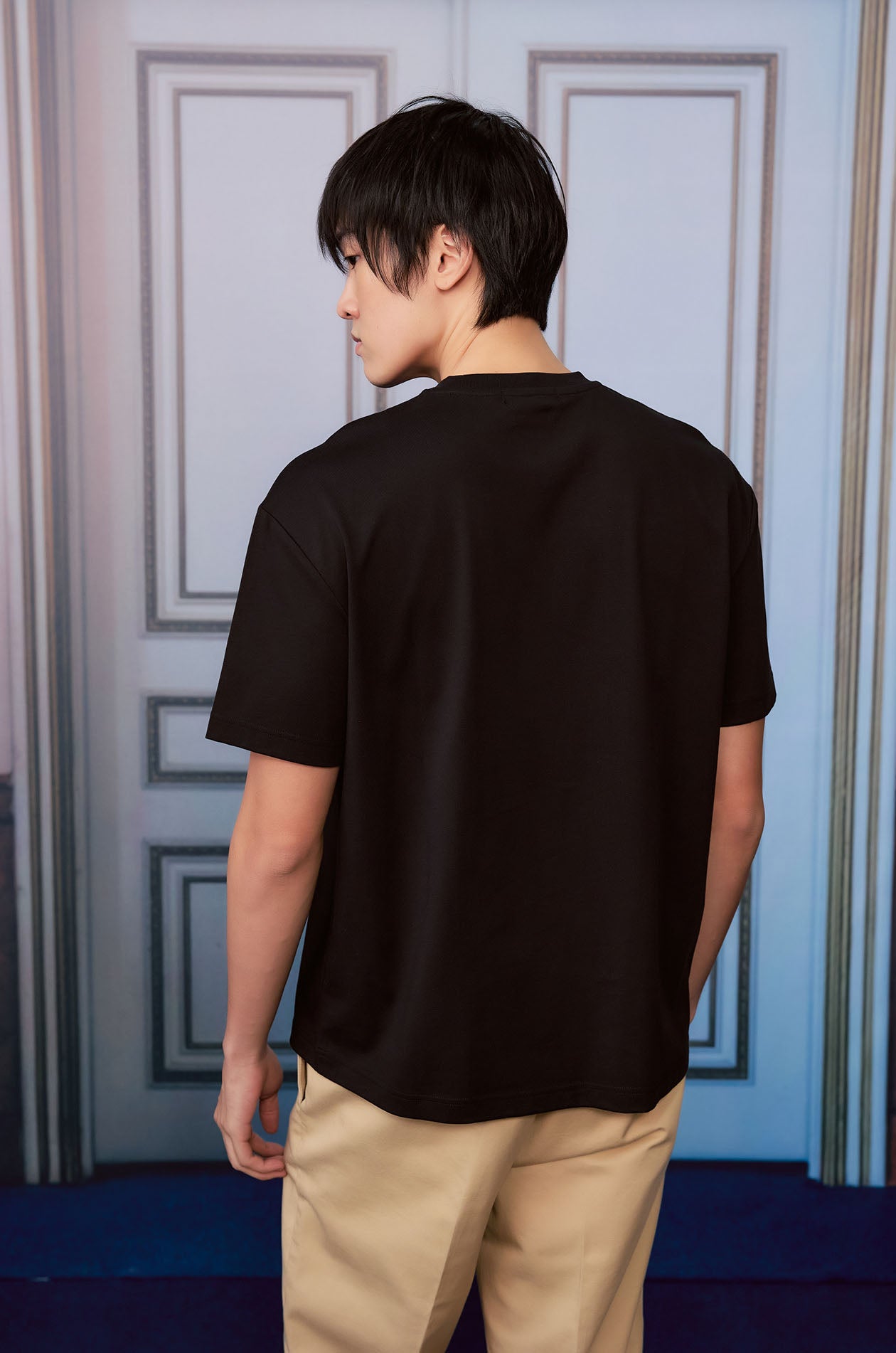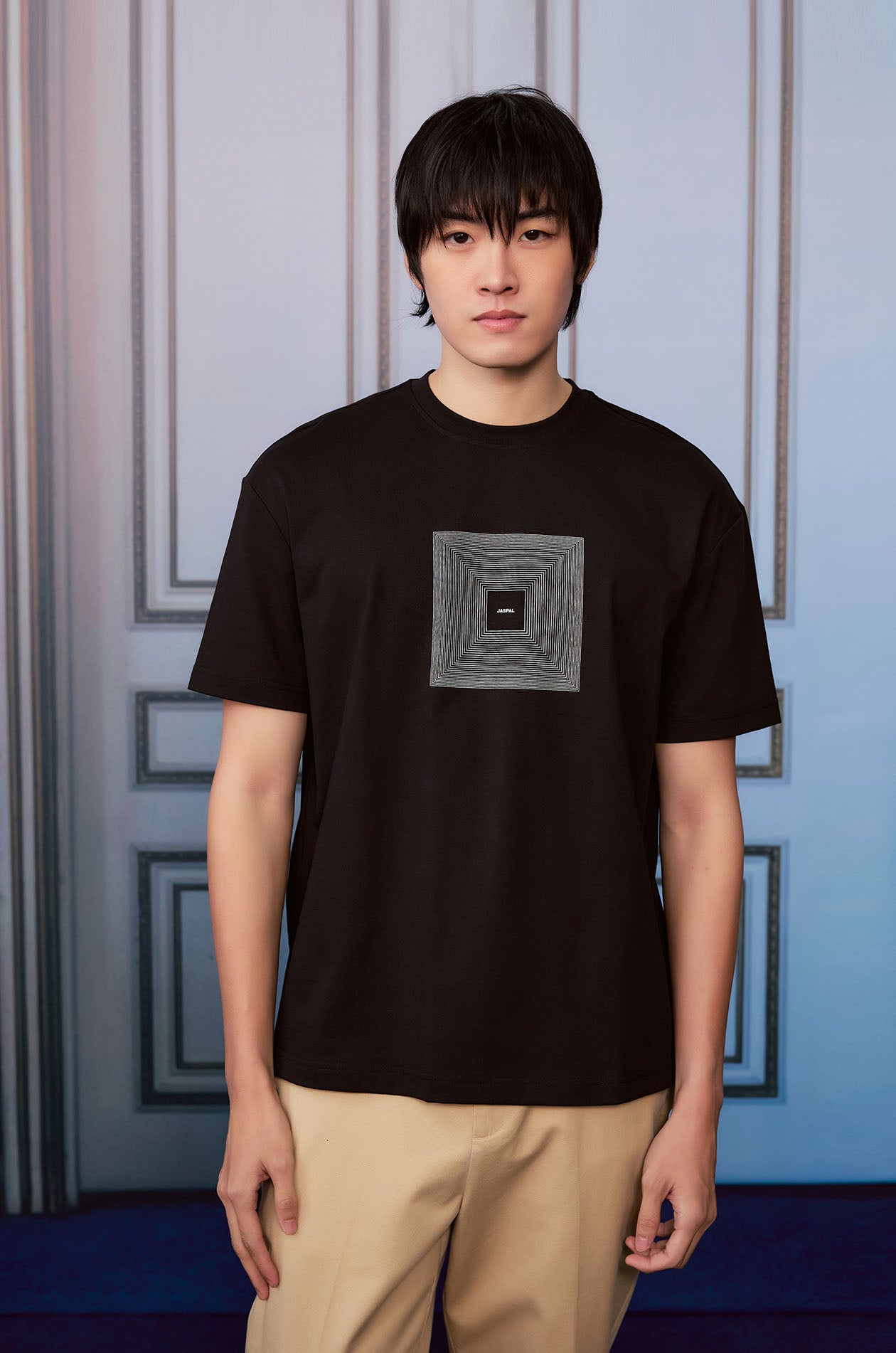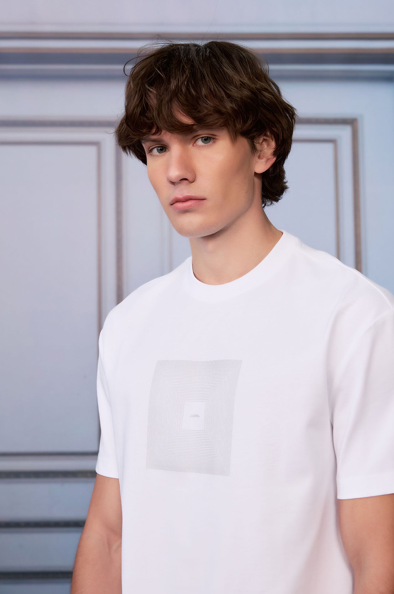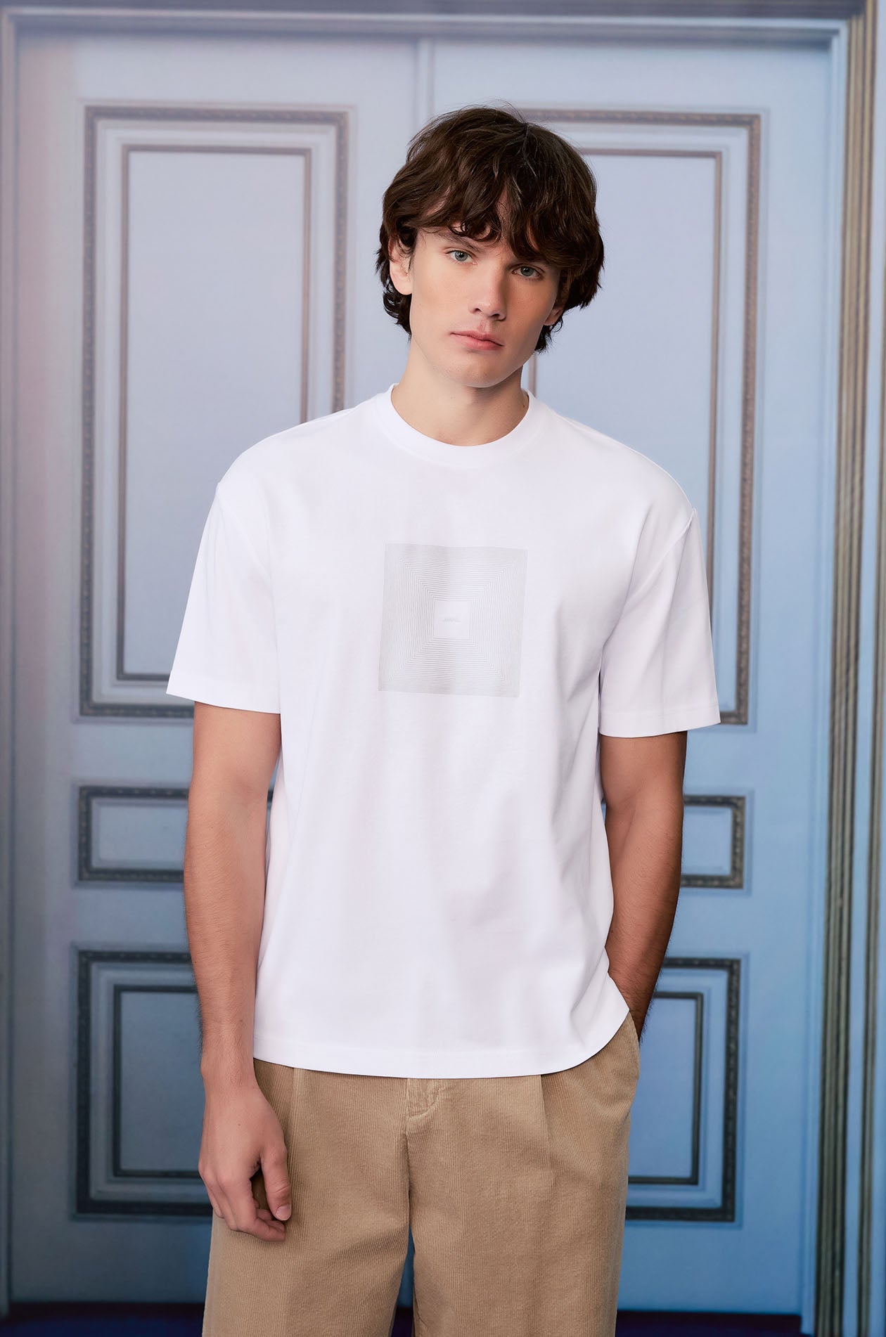 Short-sleeved T-shirt in cotton jersey. Relaxed fit with crew neck and graphic print. Available in white and black.