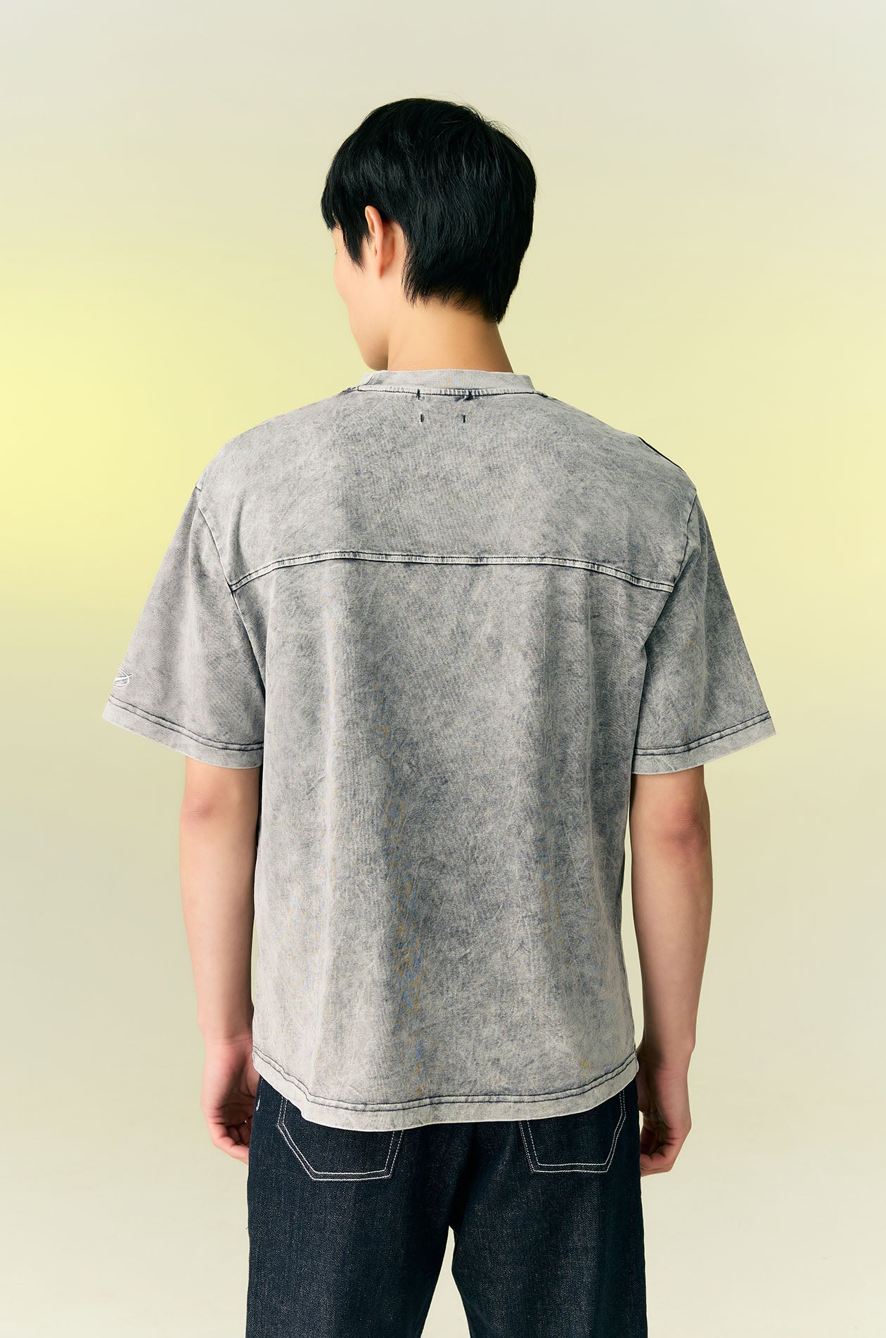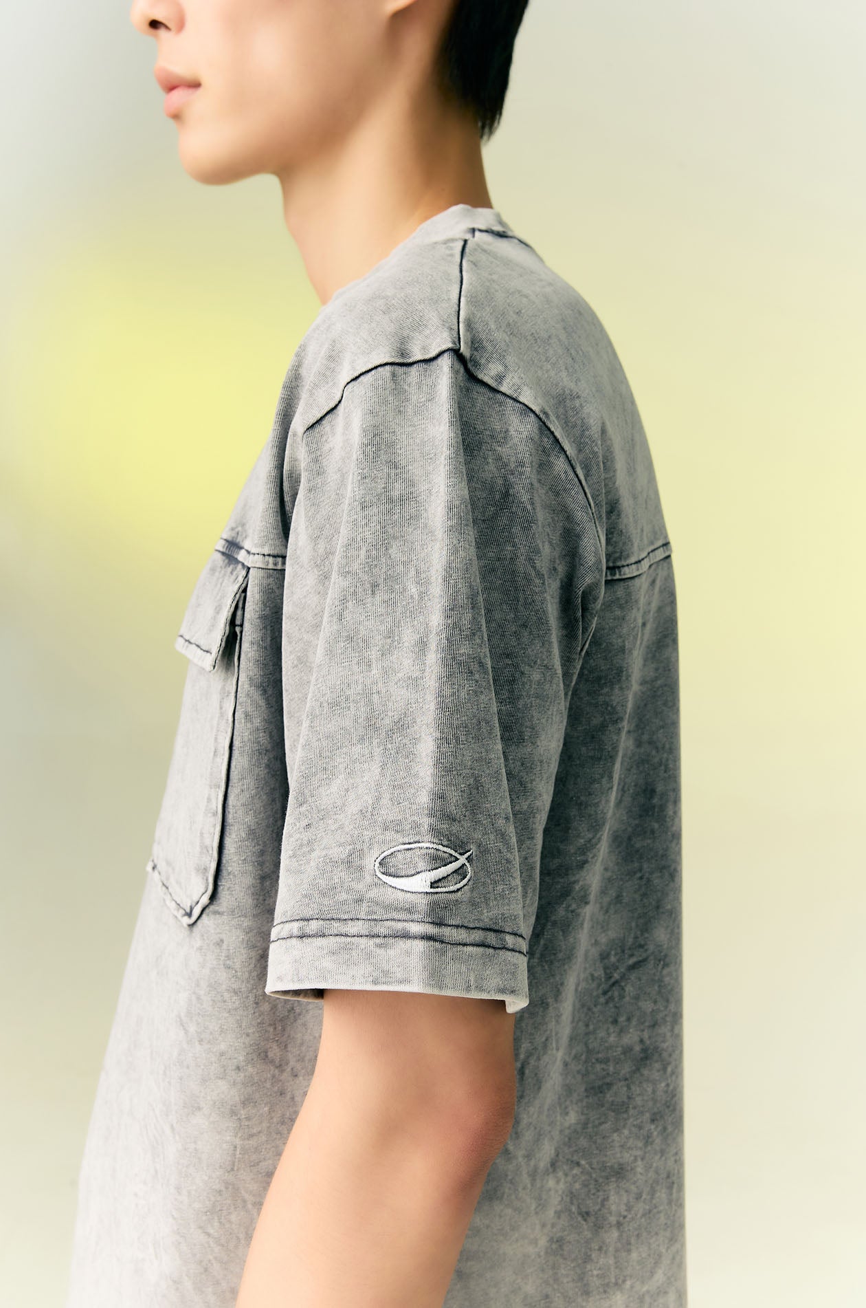 Short-sleeved T-shirt in cotton jersey. Faded effect. Oversize fit with round neckline and chest pocket. Seamed detail and sporty logo embroidery on the sleeve. Available in grey and brown.