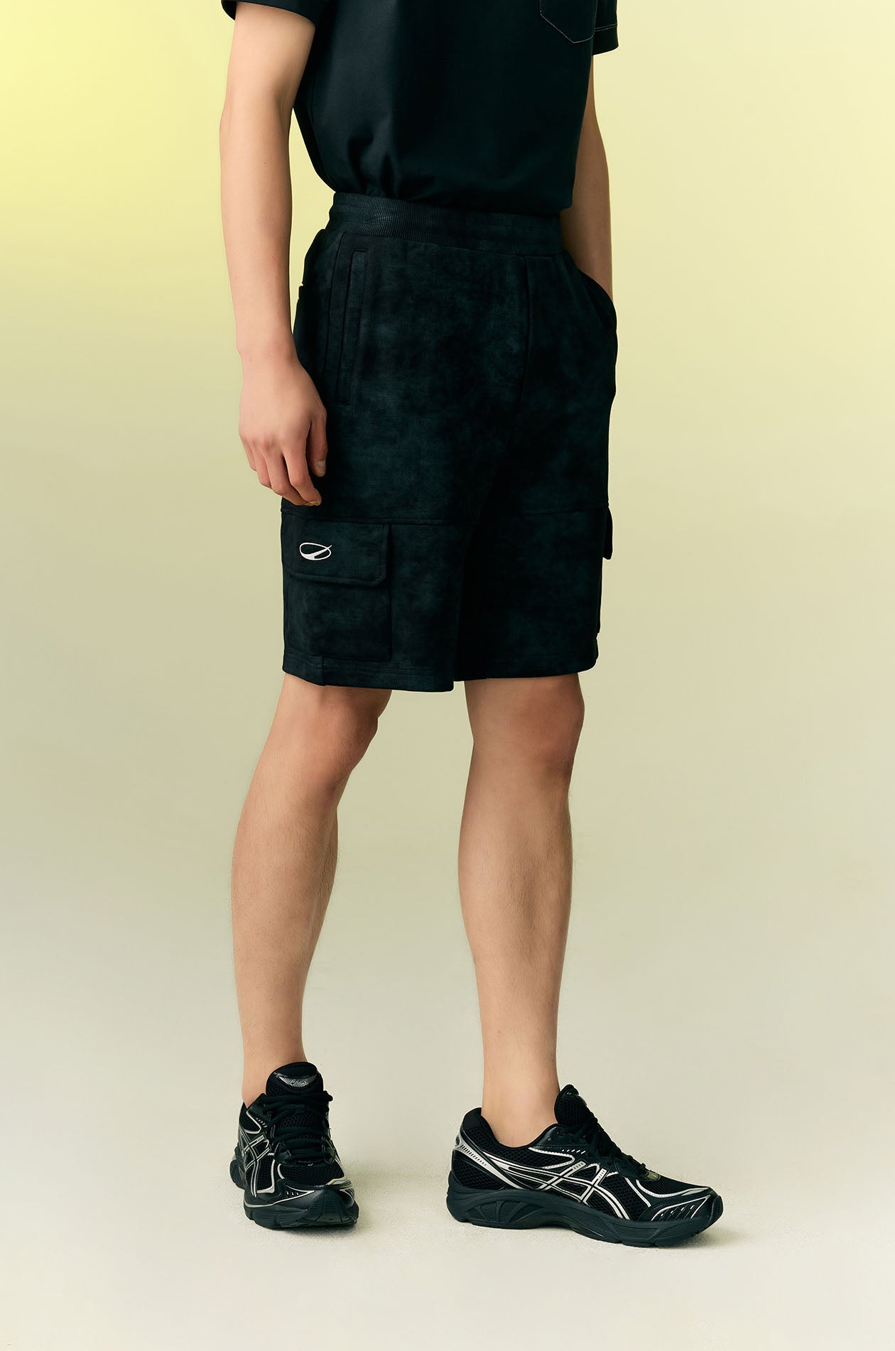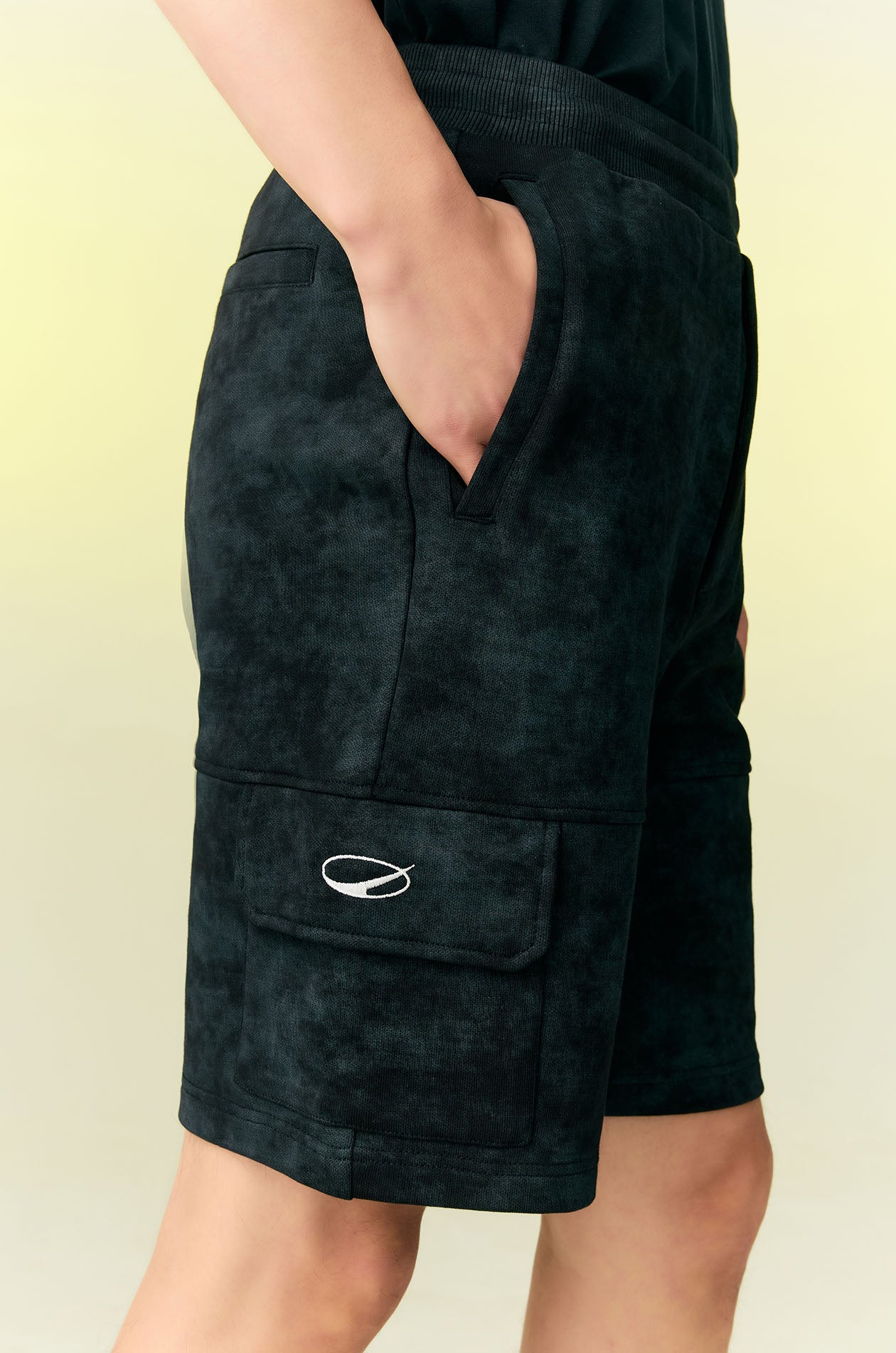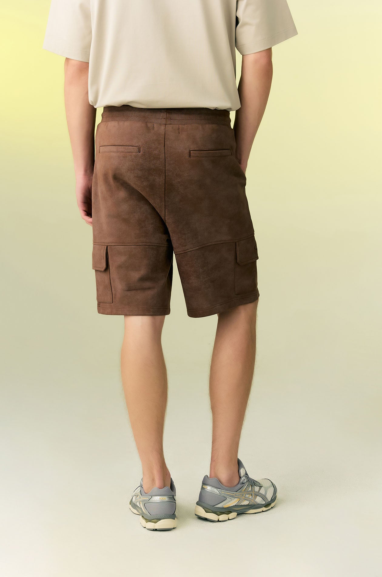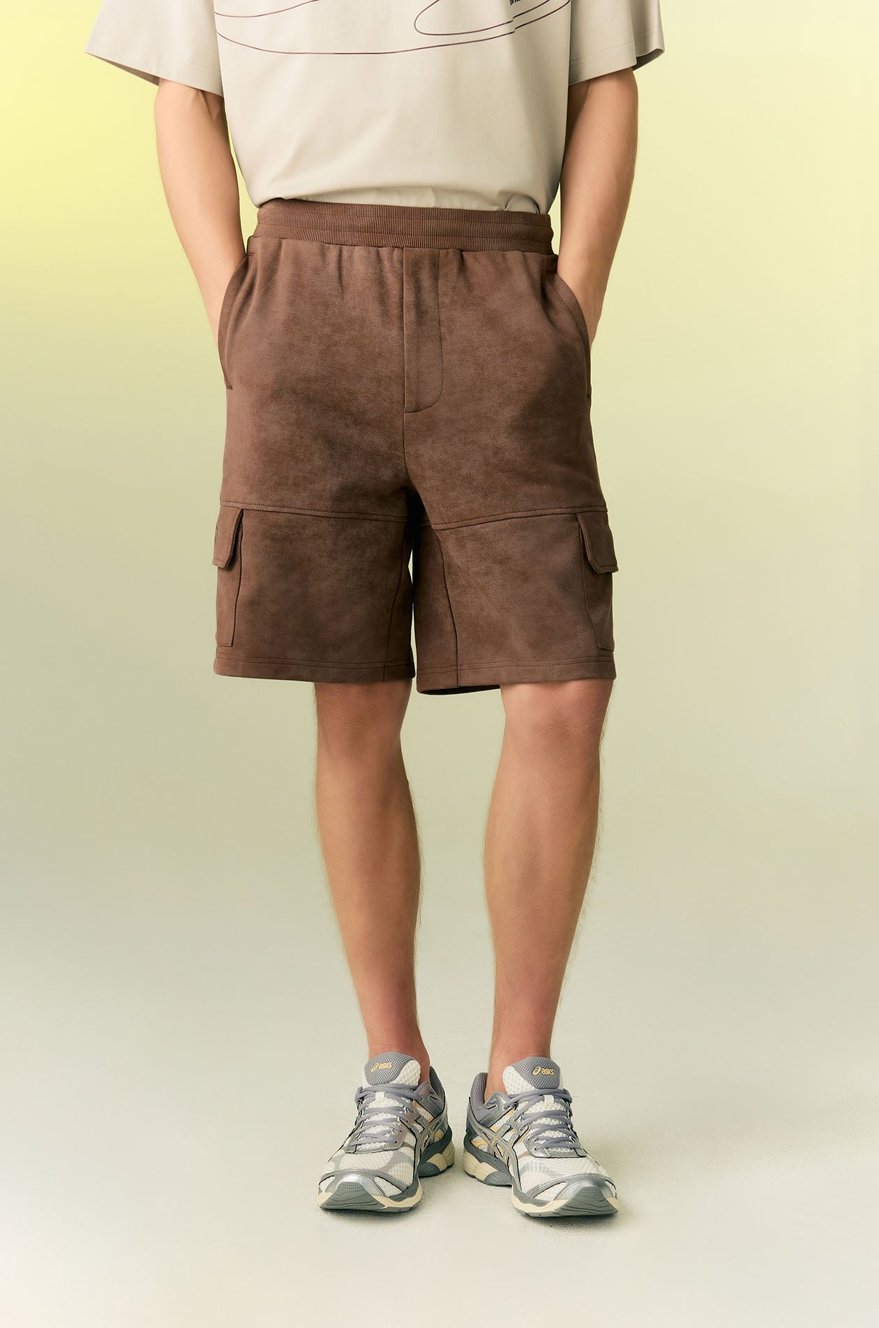 Mid-rise sweatshorts in cotton French terry. Faded effect. Knee length with side and back pockets. Small cargo pockets with sporty logo. Elastic drawstring waistband. Front zip closure. Available in brown and dark grey.