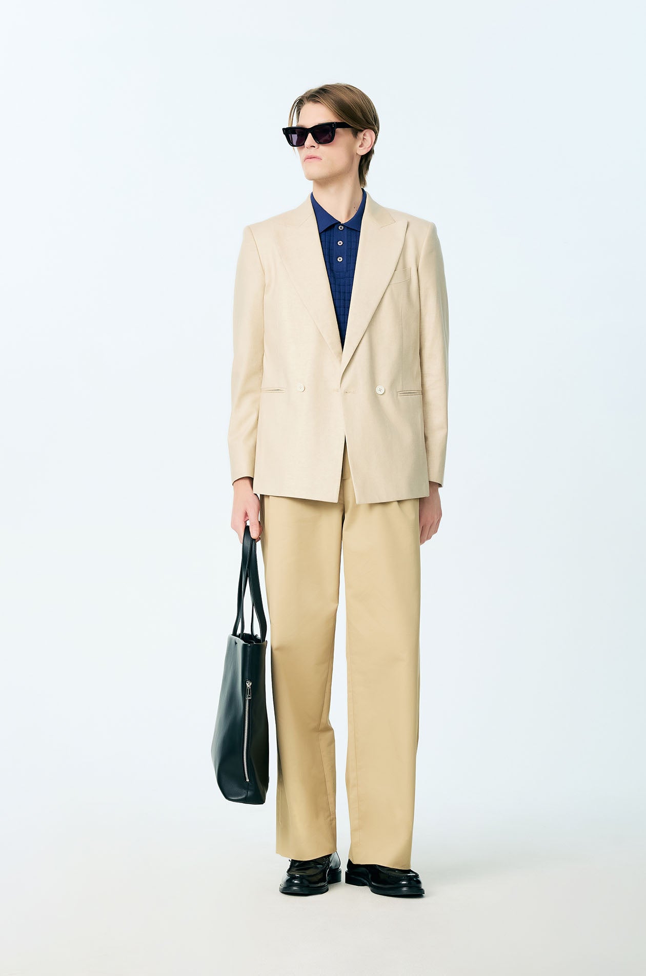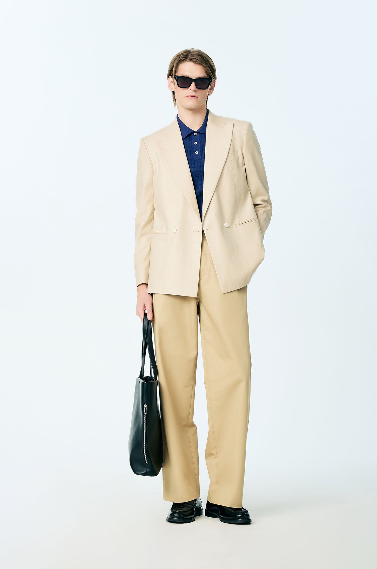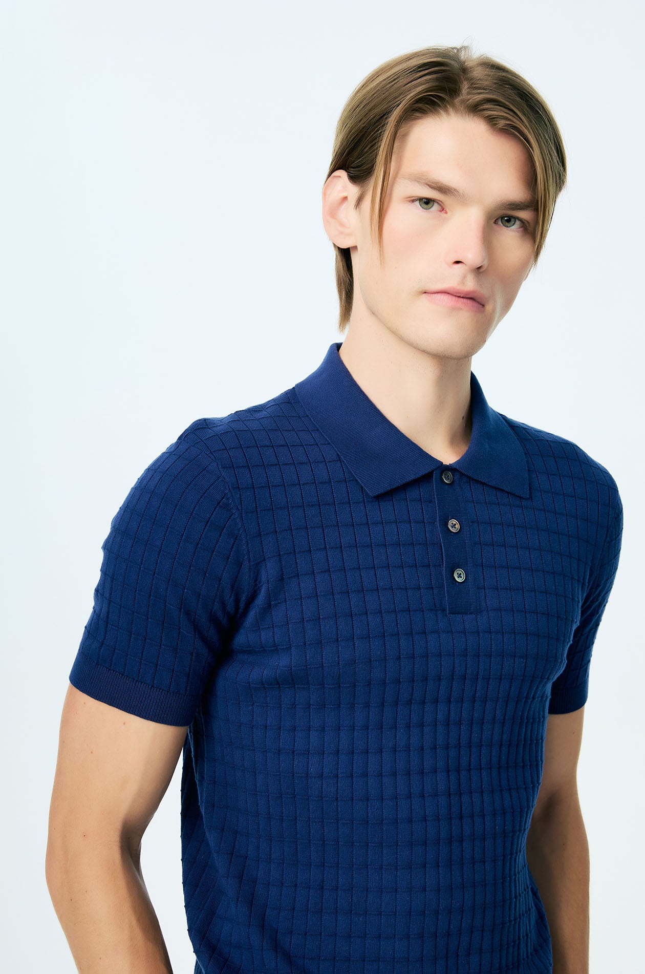 Short-sleeved polo shirt crafted from textured knit with a clean grid pattern. Designed in a regular fit with a classic collar for a refined, everyday look. Available in dark blue.
