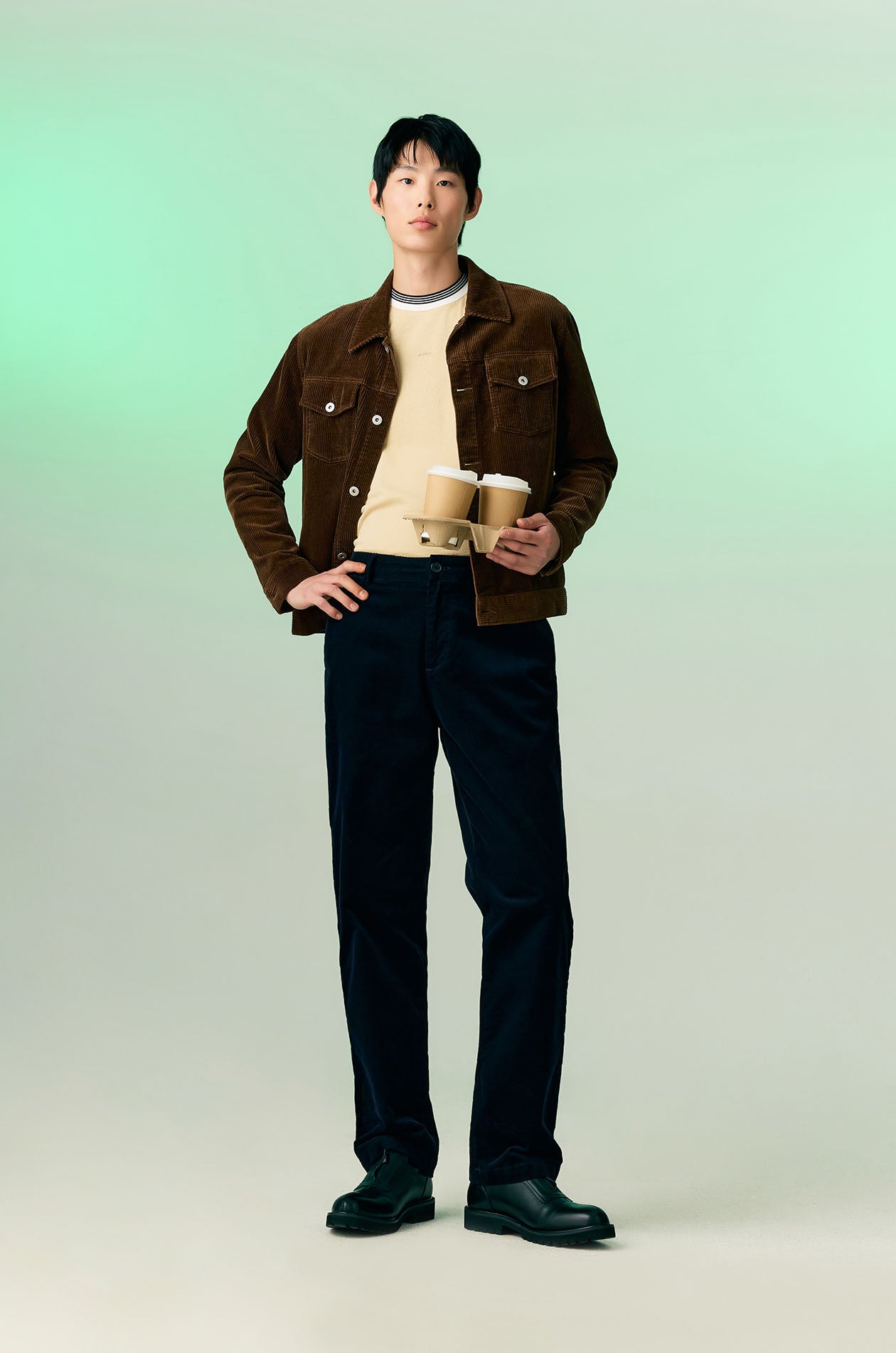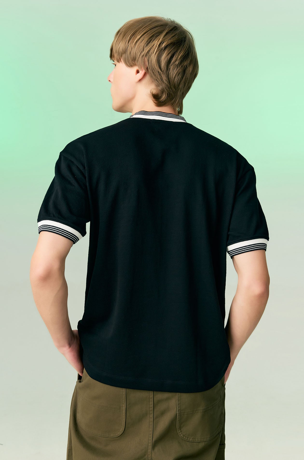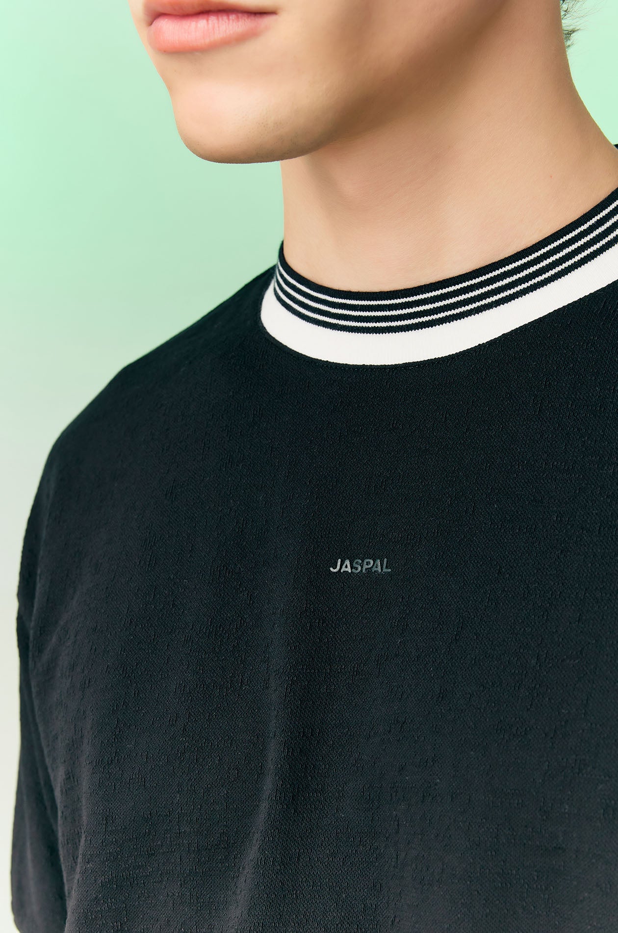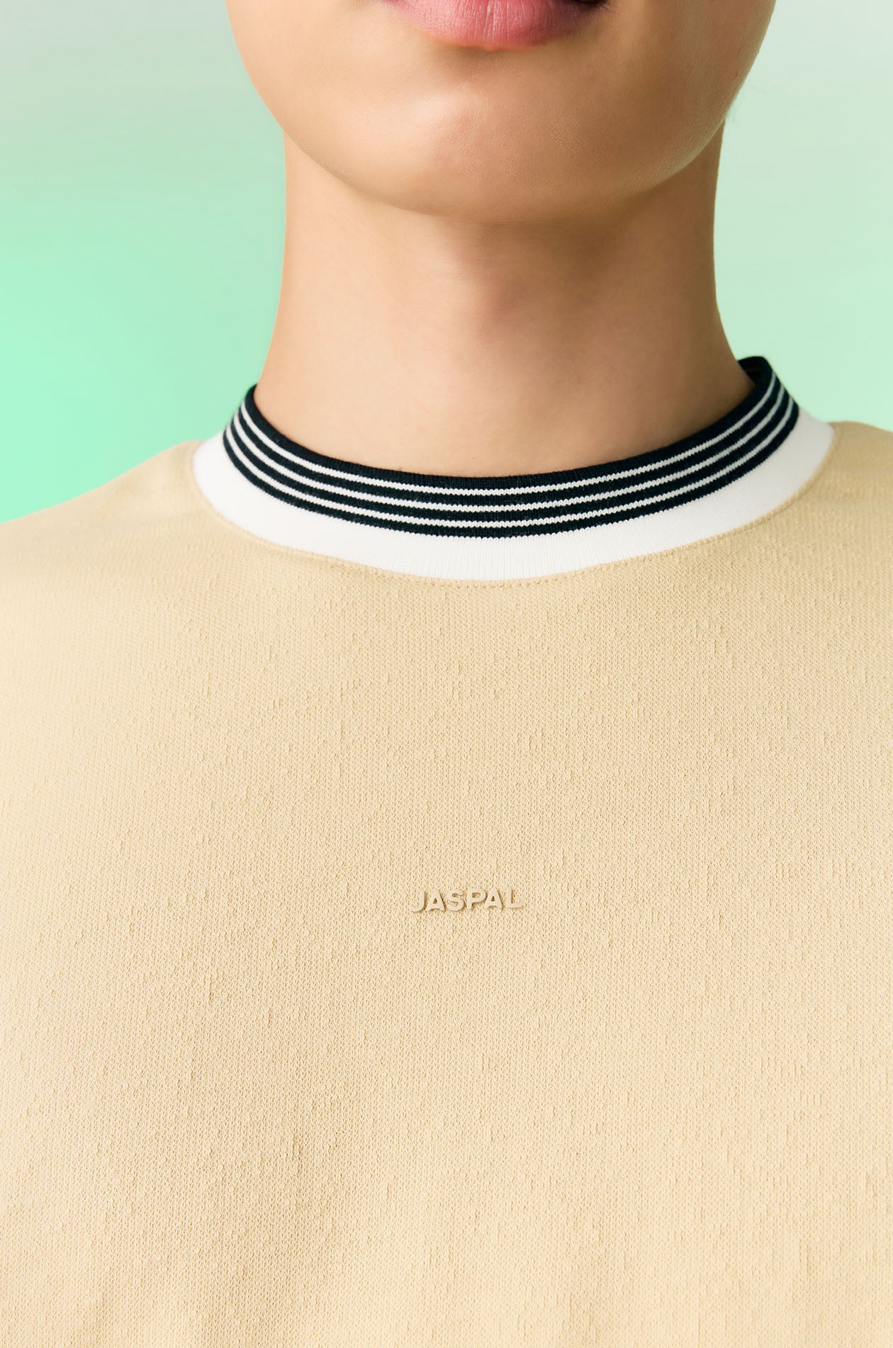 Short-sleeved T-shirt in 100% cotton. Relaxed fit with round neck and minimal lettering logo at the front. Two tone trimmed edges. Available in black, white, and light brown.