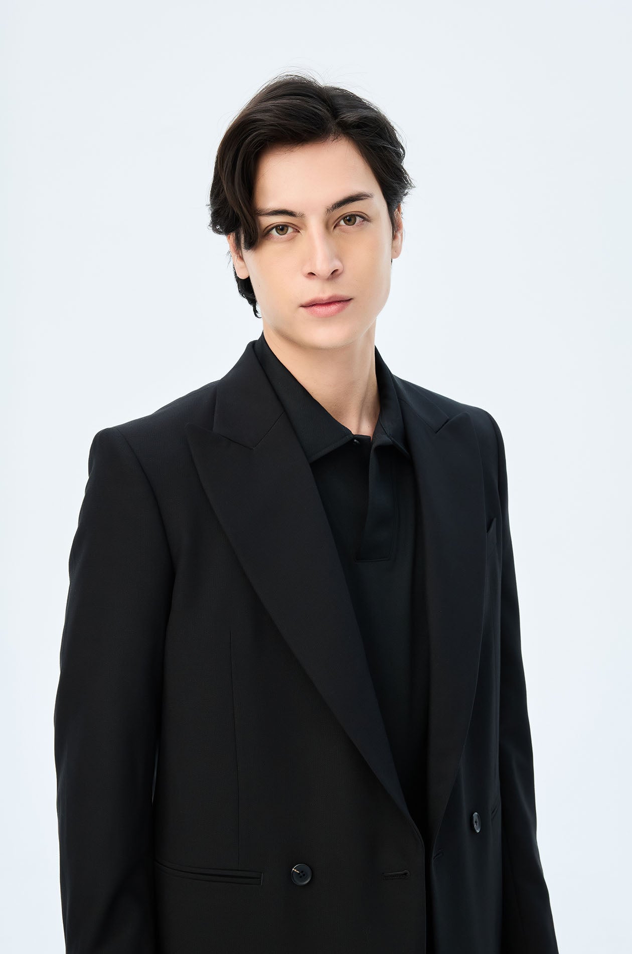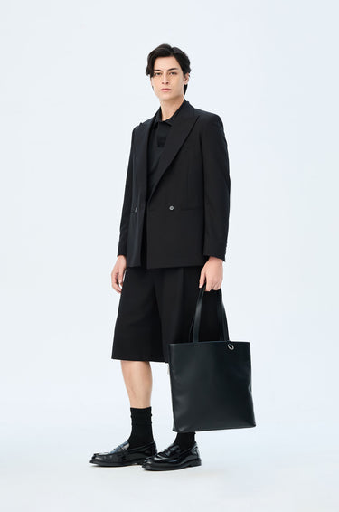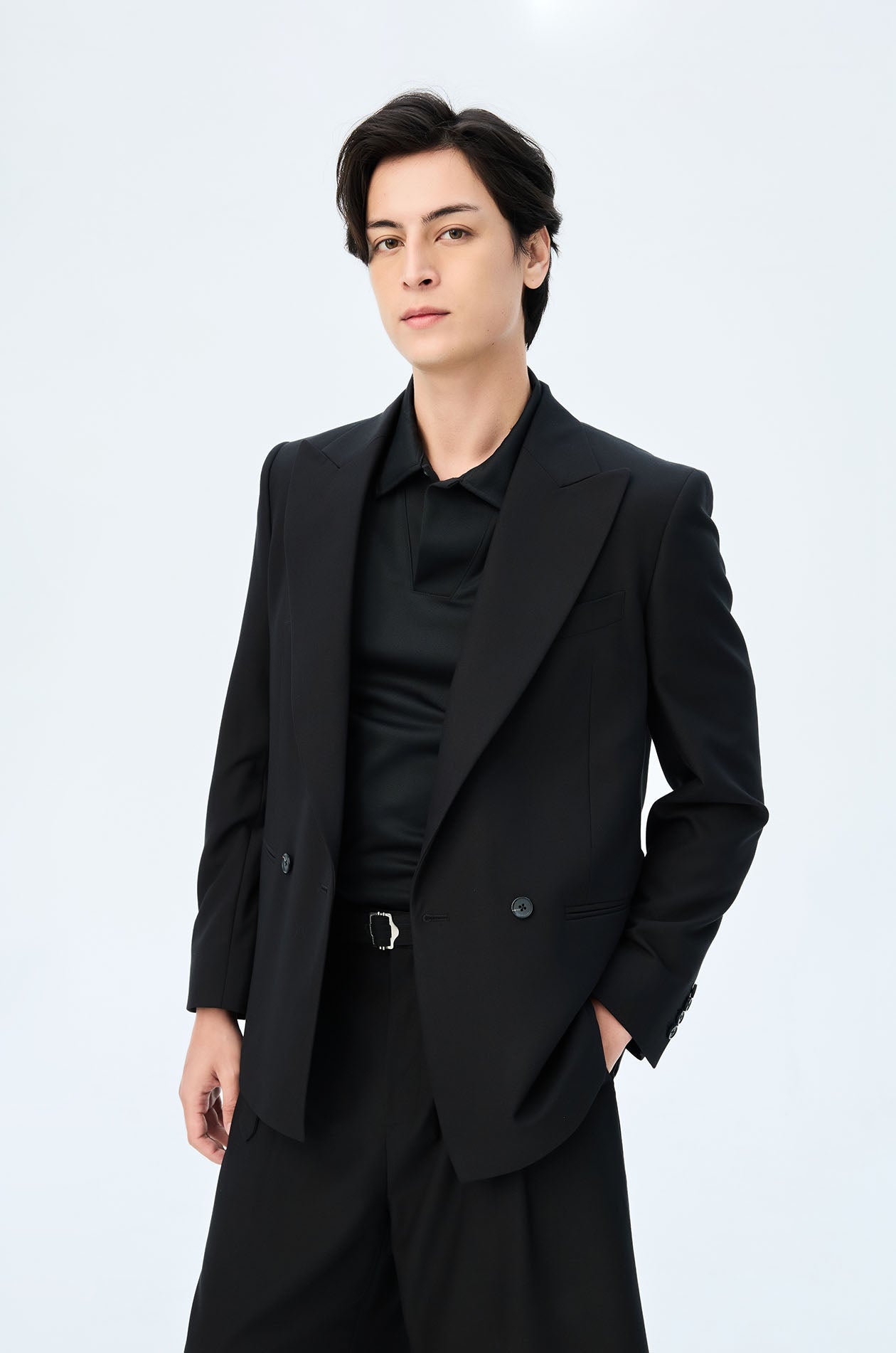 Double-breasted blazer in wool-blend suiting fabric. Regular fit with peak lapel, padded shoulders, and front pockets. Front button closure. Available in black.