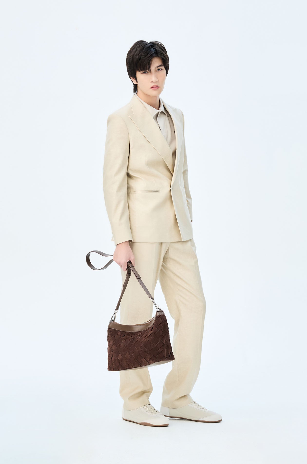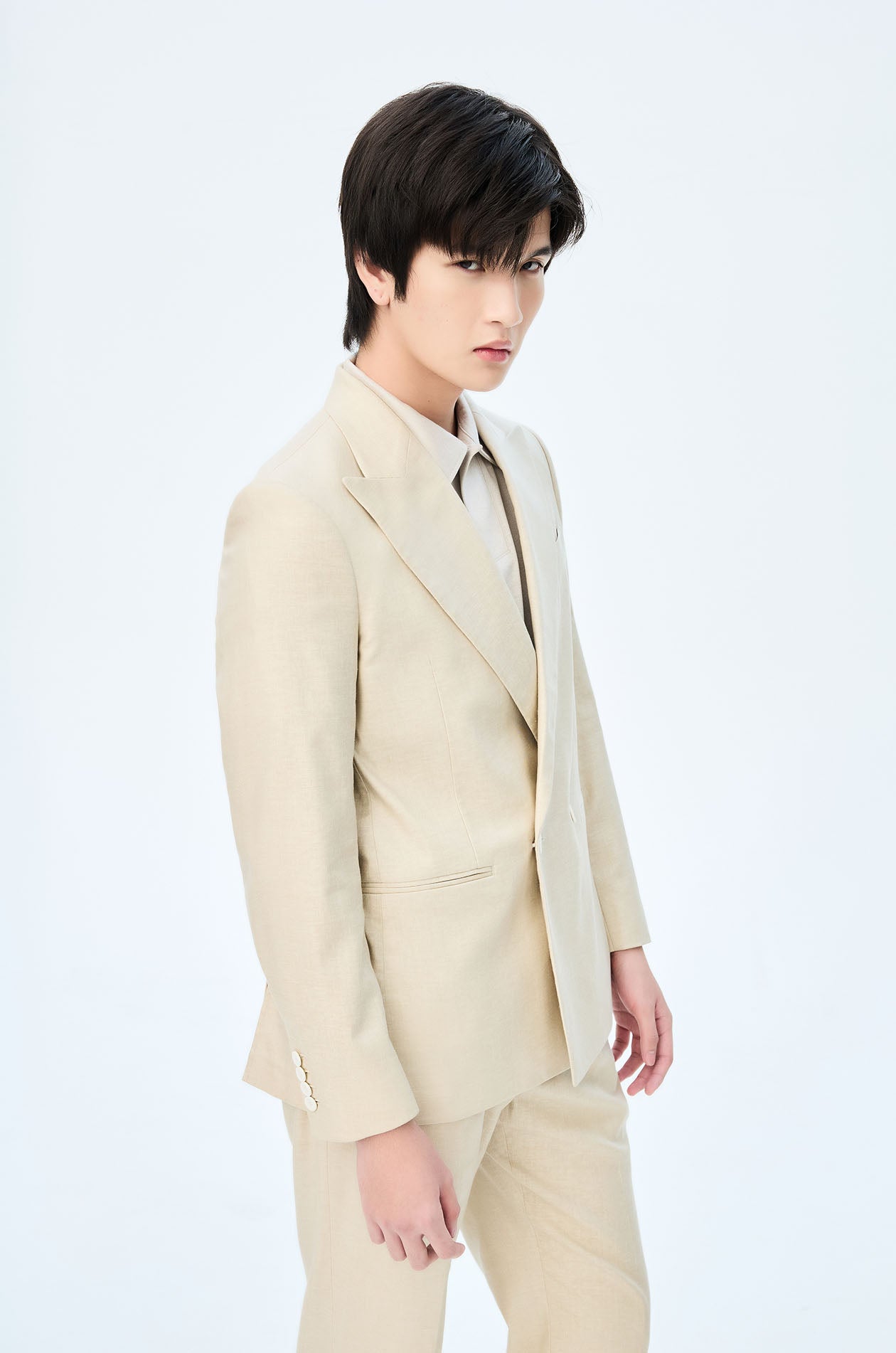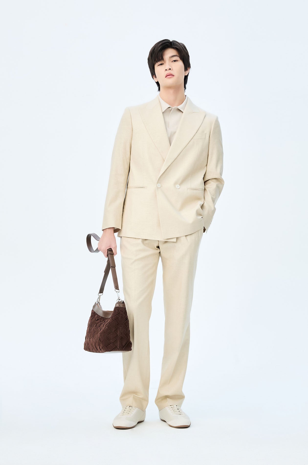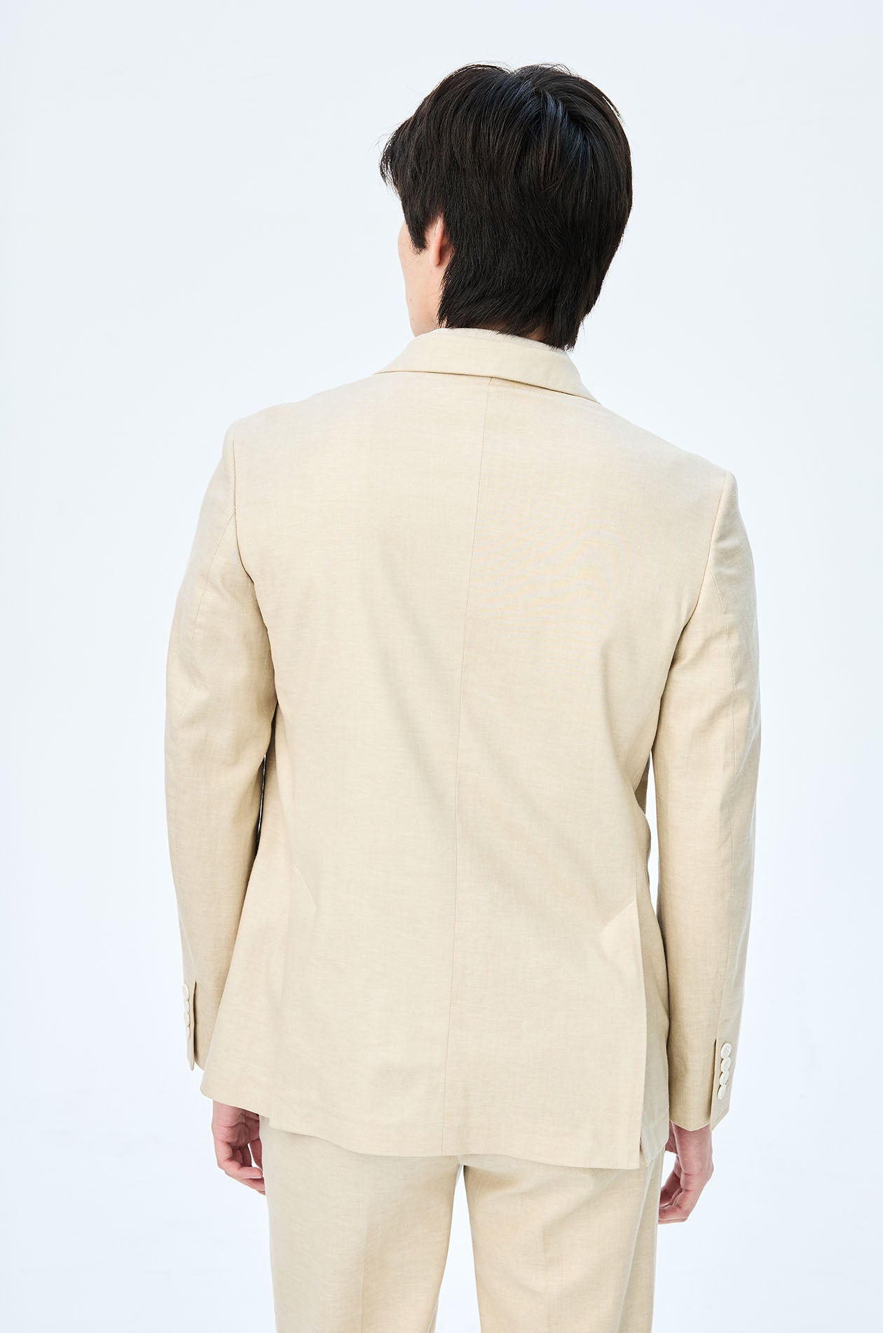 Double-breasted blazer in linen blend. Regular fit with peak lapel, padded shoulders, and front pockets. Front button closure. Available in light beige.
