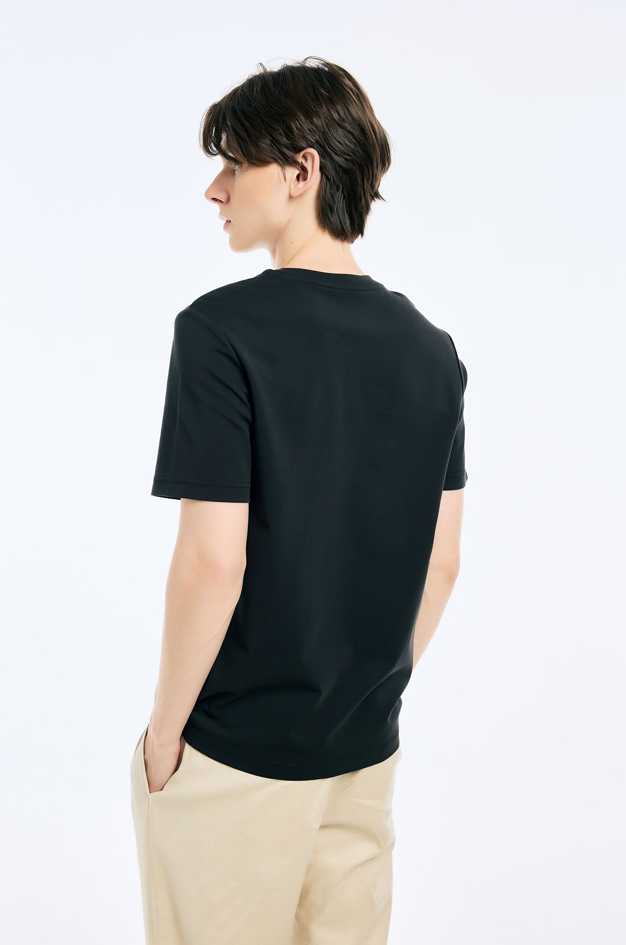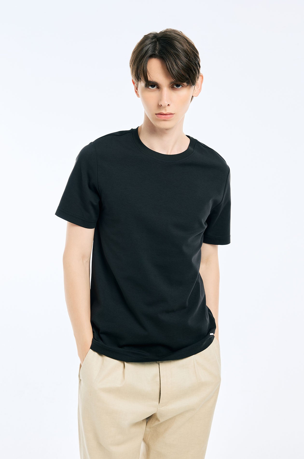 Short-sleeved T-shirt in jersey. Regular fit with round neckline. Available in black and white.
