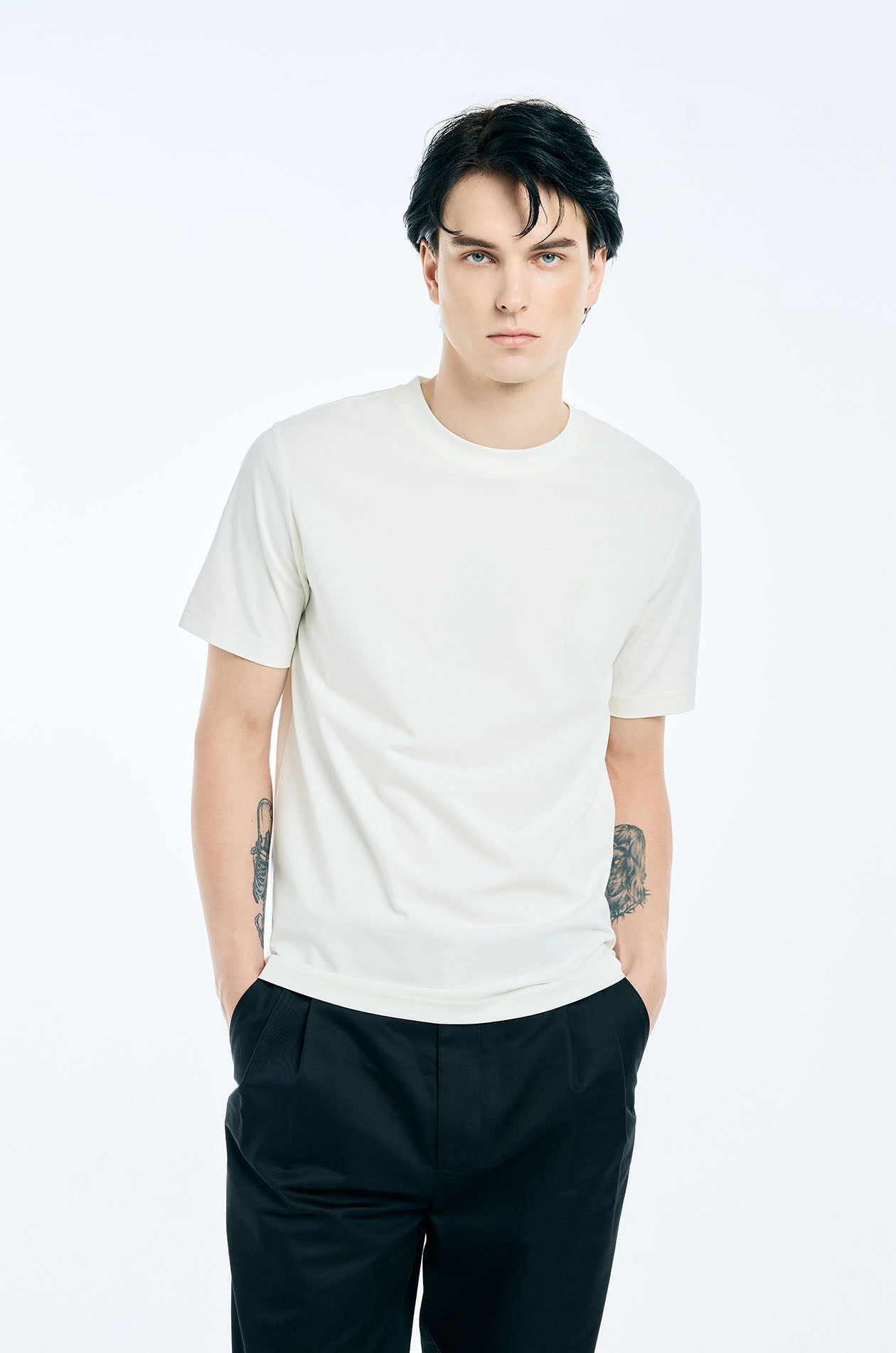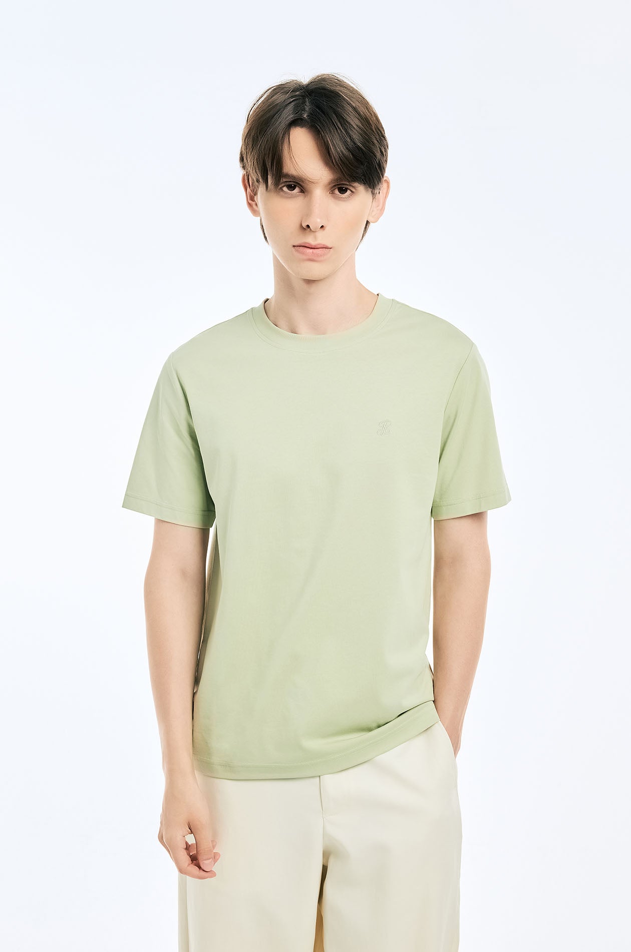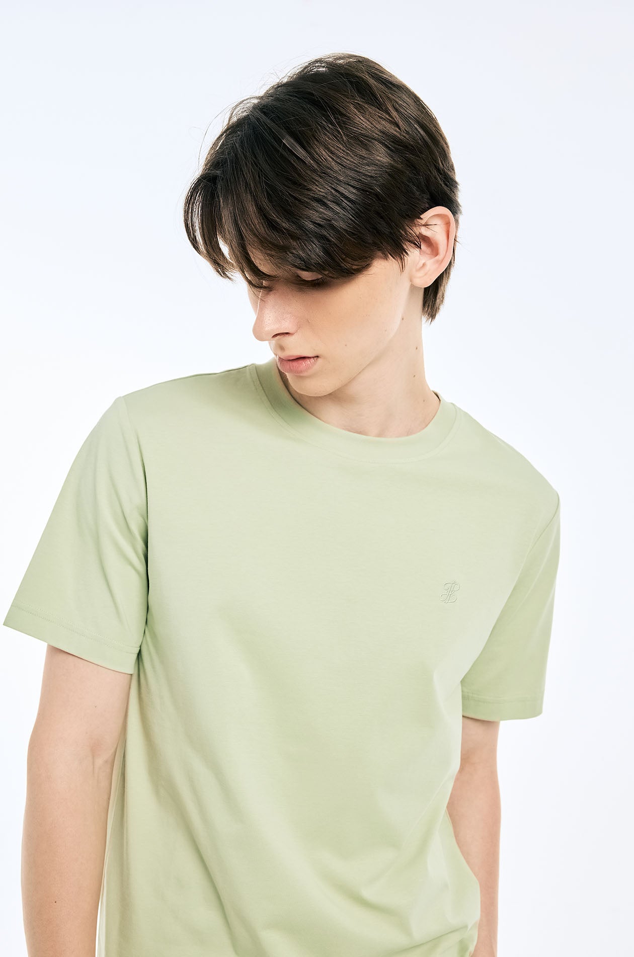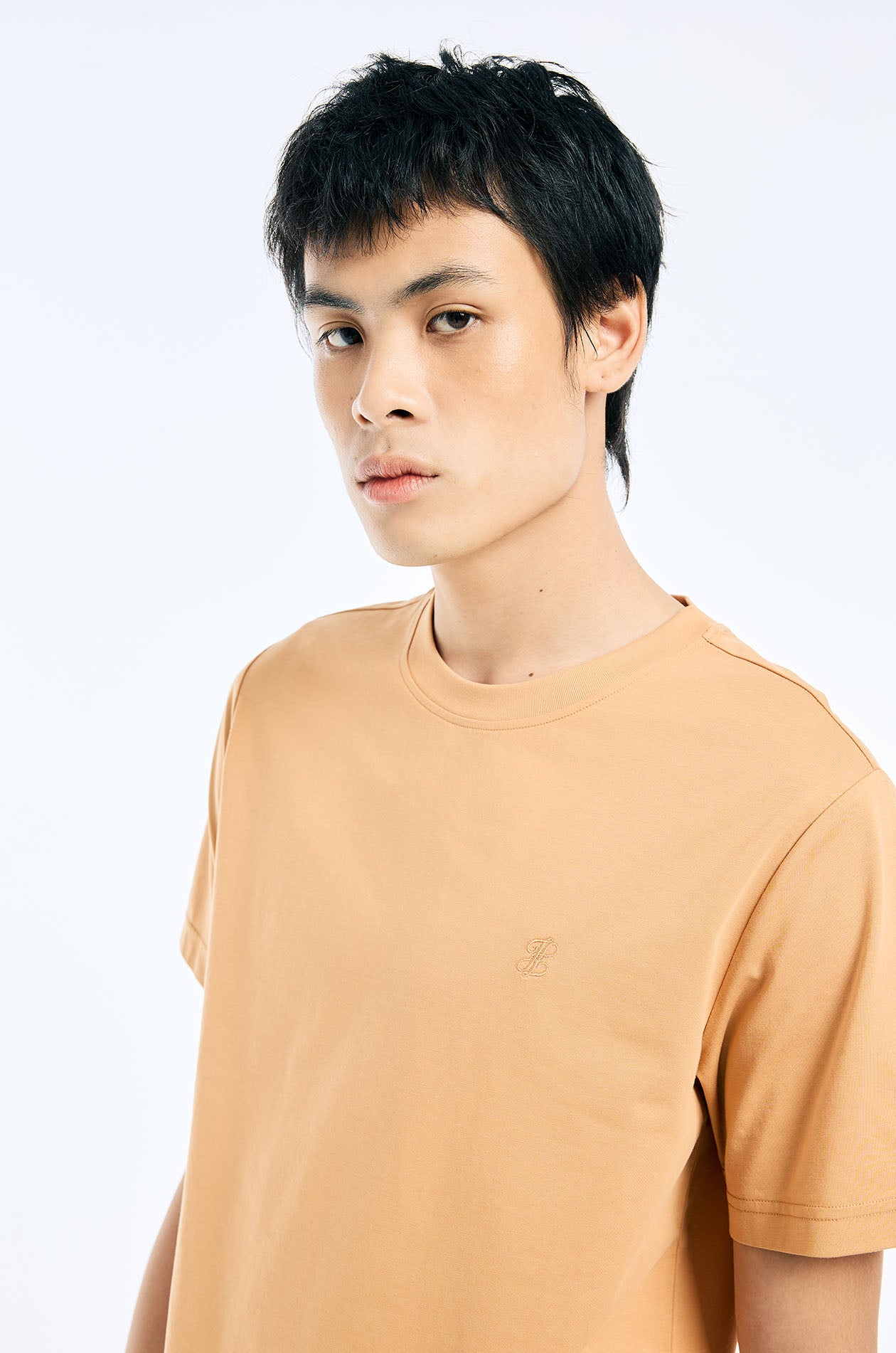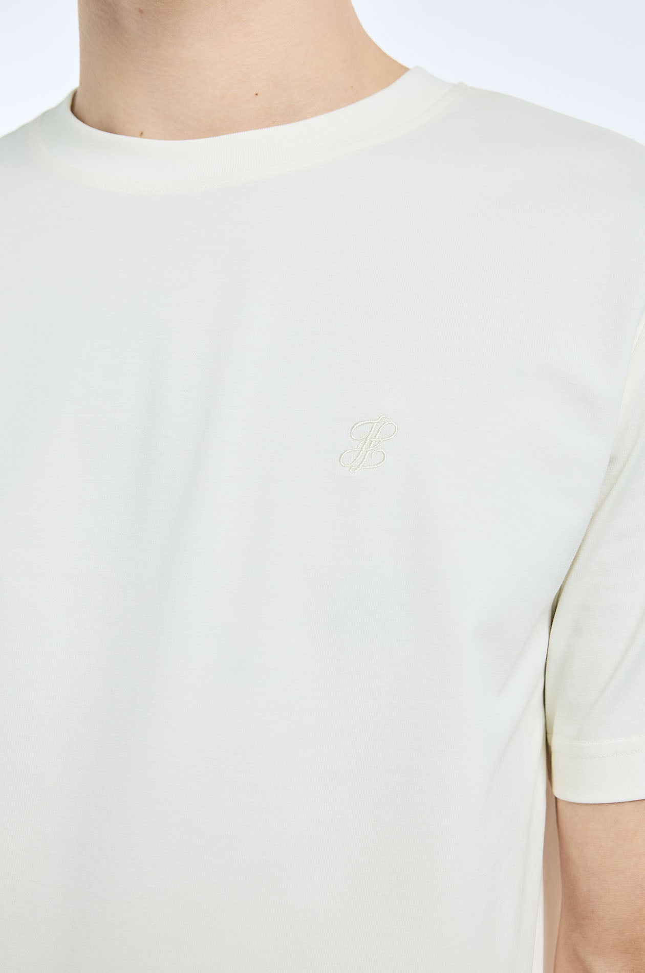 Short-sleeved T-shirt in jersey. Regular fit with round neckline and embroidered anagram logo at the chest. Available in cream, black, top-dyed grey, brown, and green.